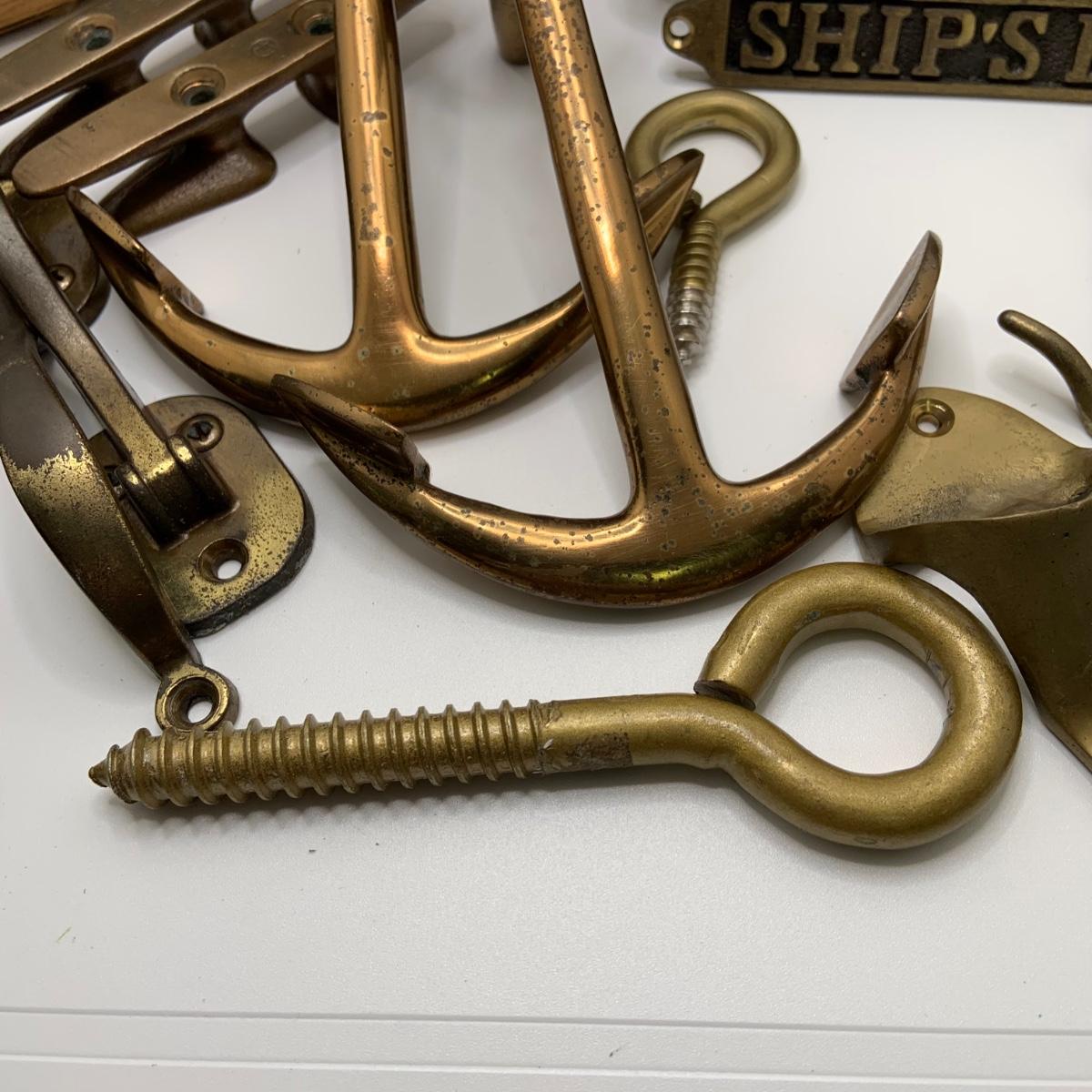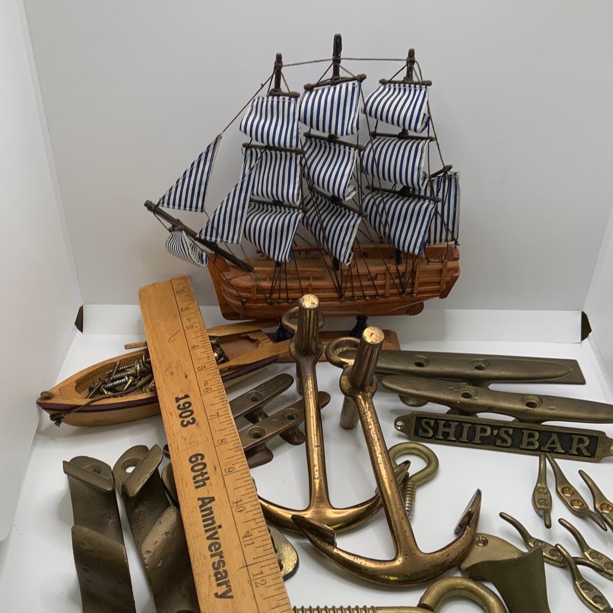 LOT 80: Assortment of Nautical Brass Hardware for Including "Ship's Bar" and "Saloon" Plaque