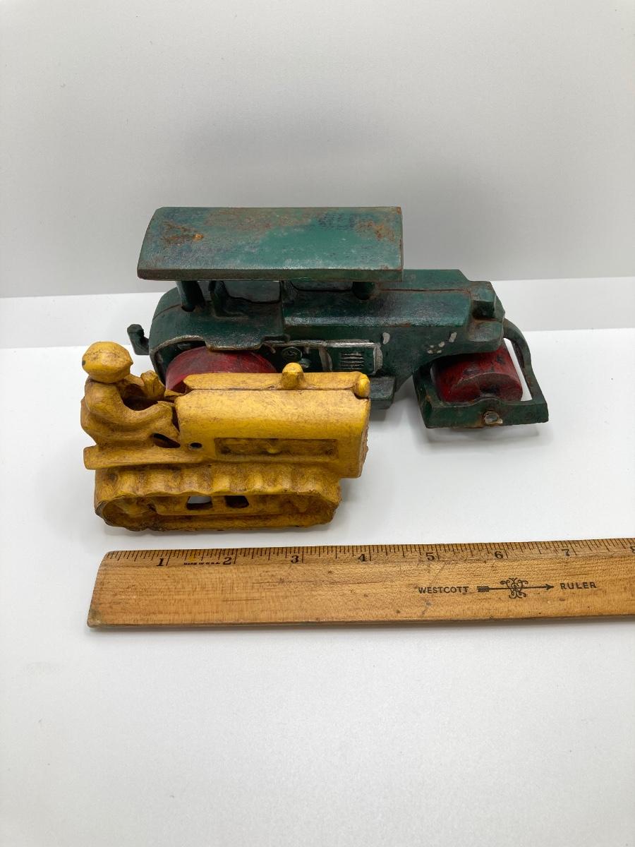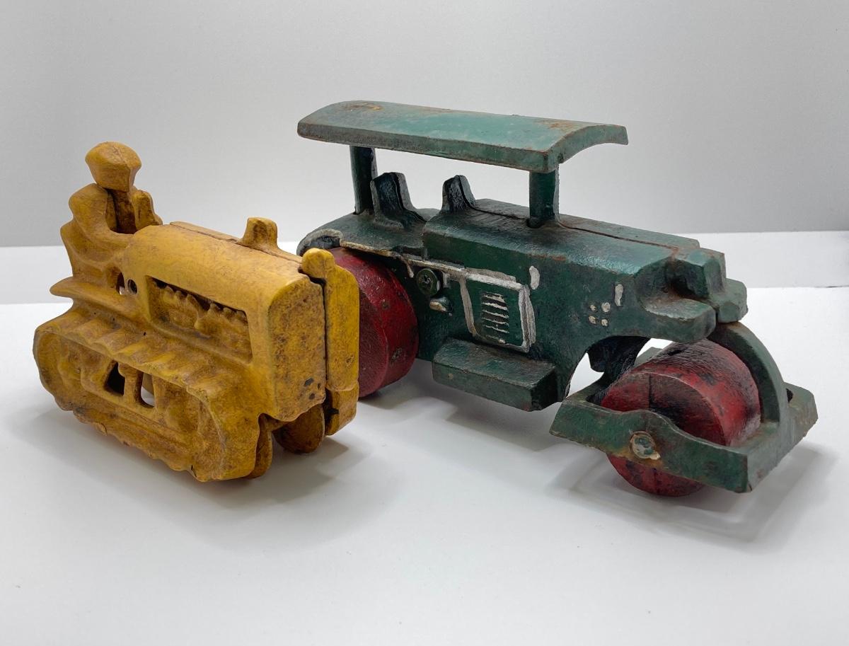 LOT 83: Vintage Cast Iron Bulldozer / Tractor and Road Paver