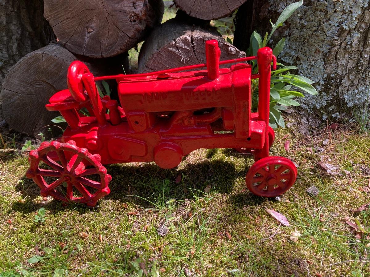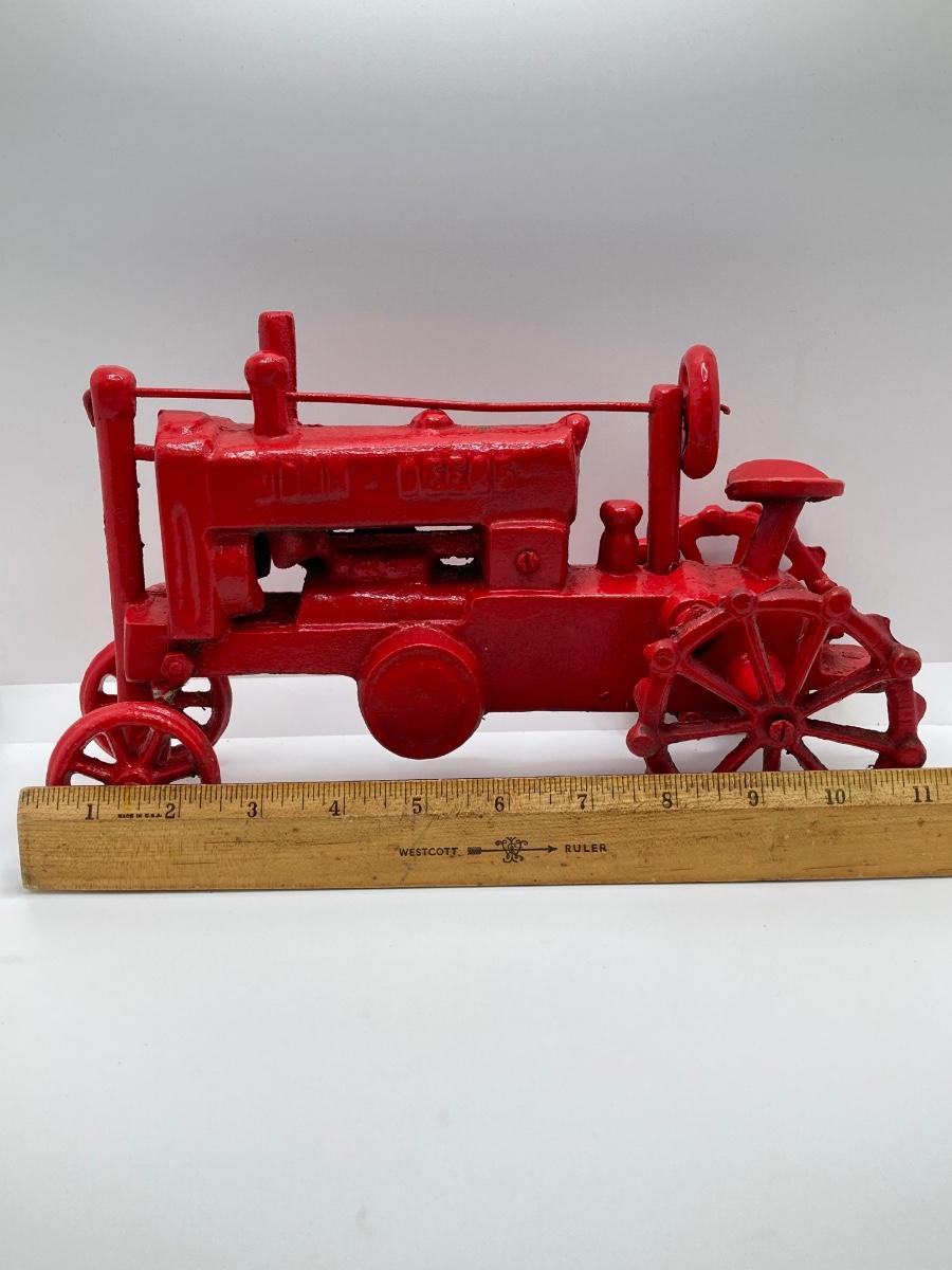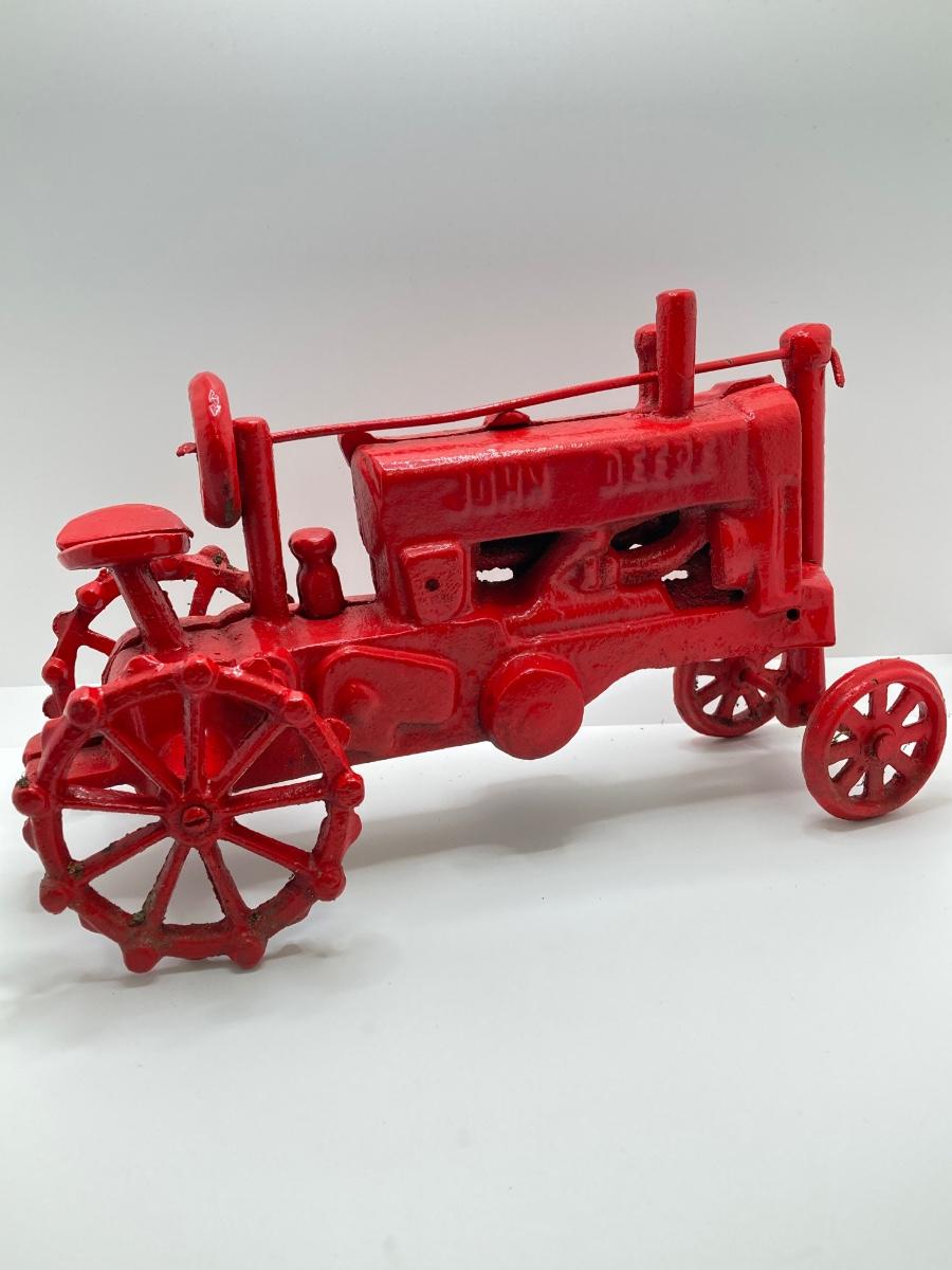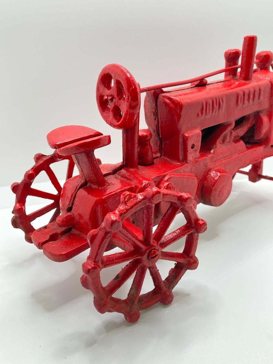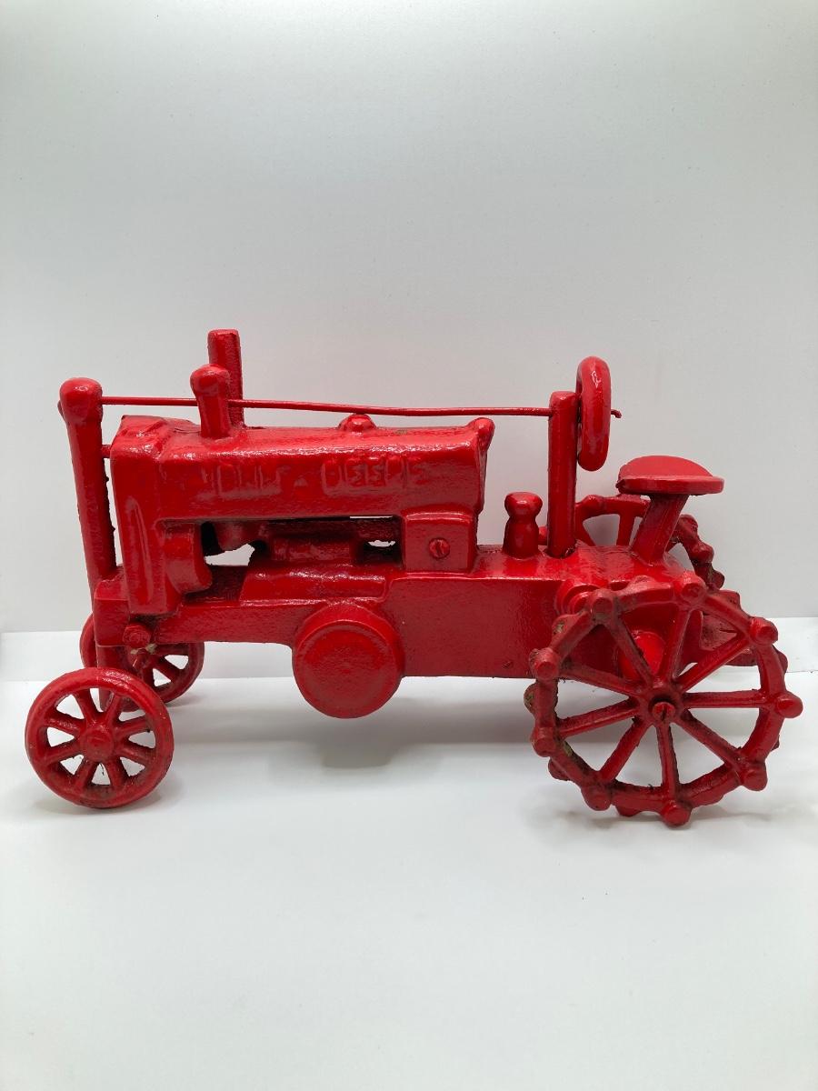 LOT 92: Vintage Red John Deere Cast Iron Tractor