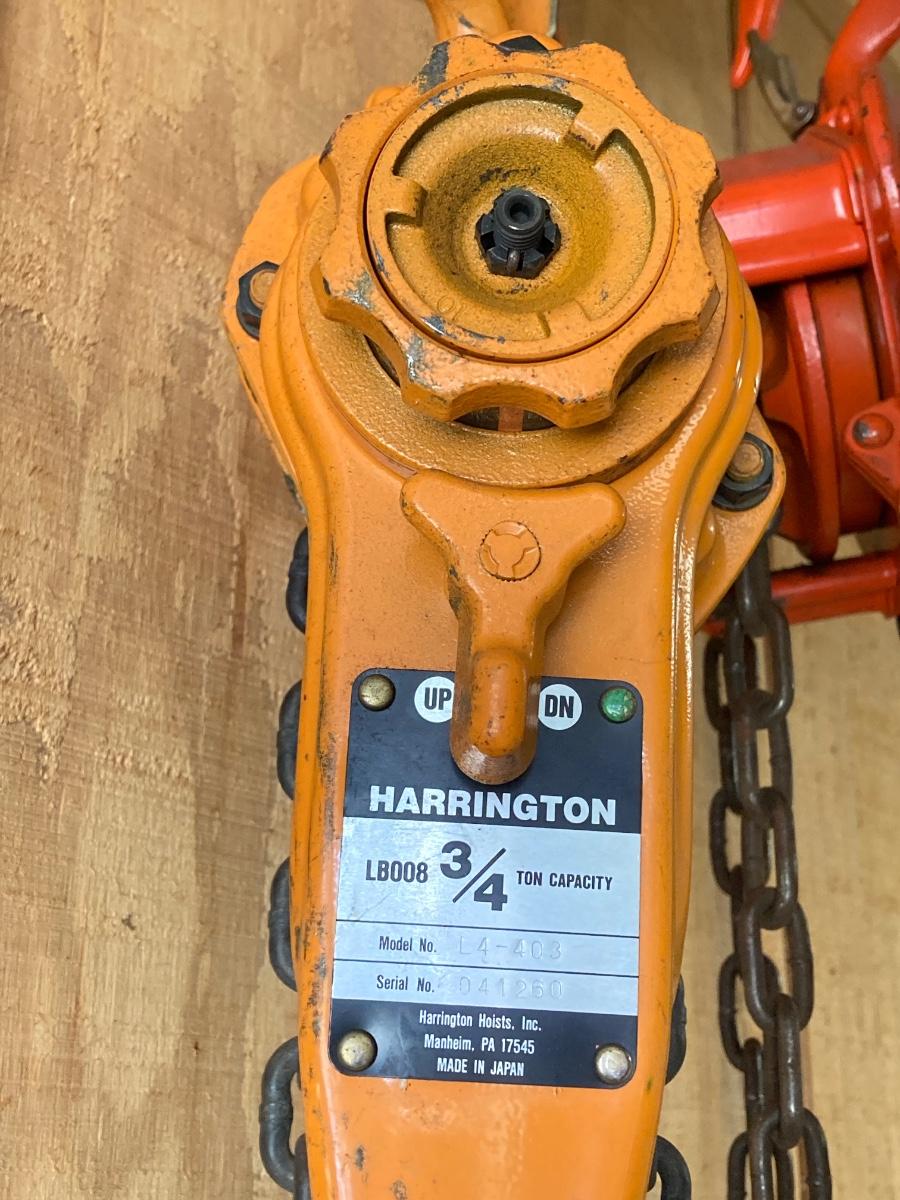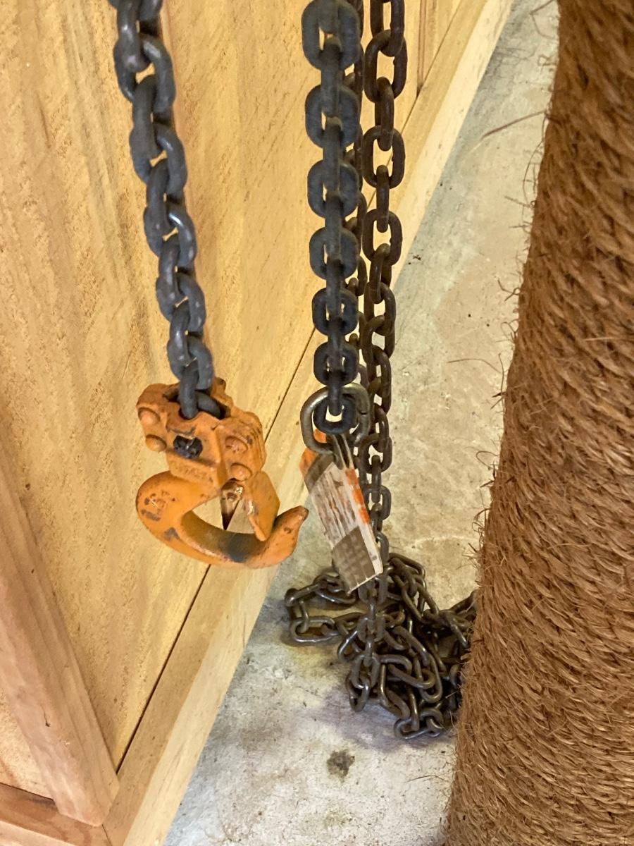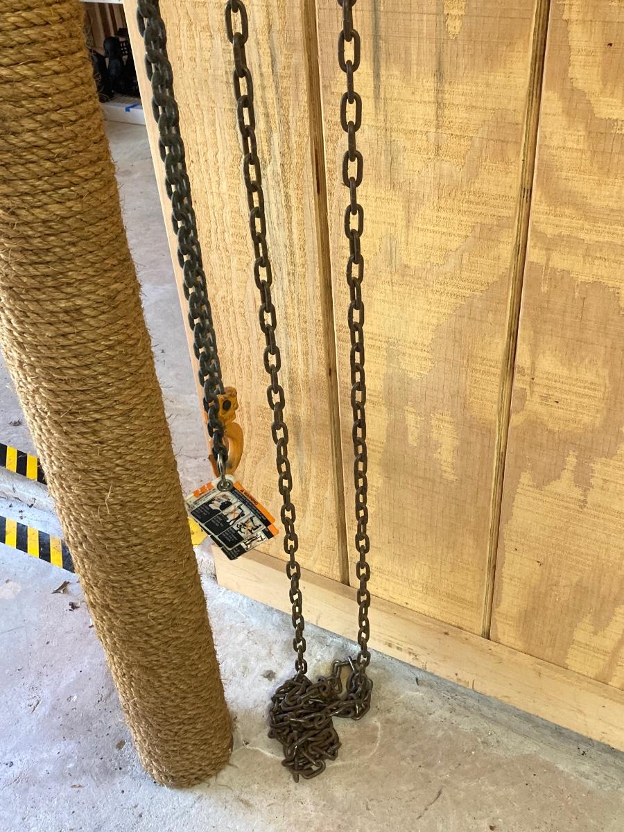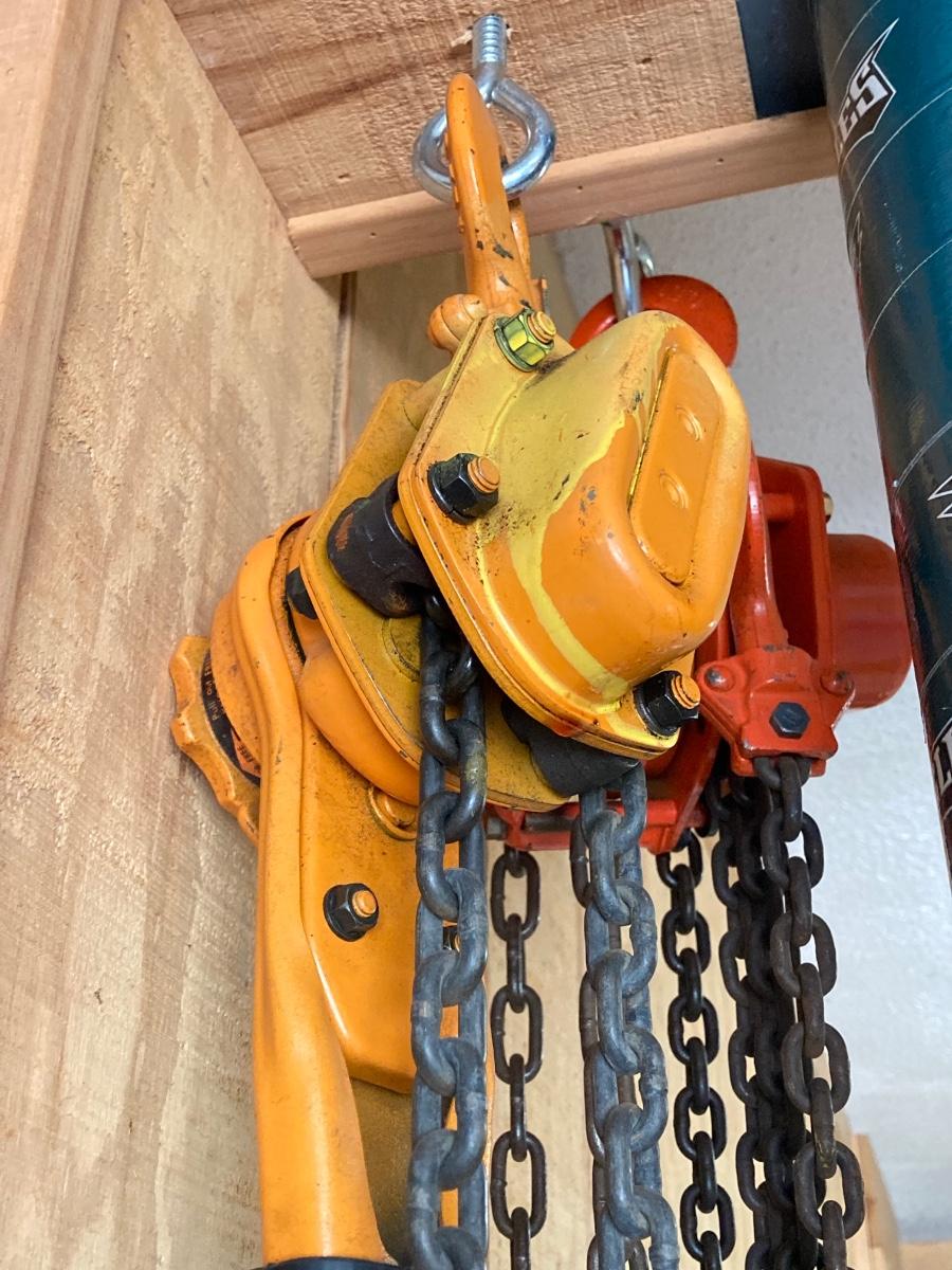 LOT 105: Chain Hoists - 0.5 Ton American Gage and Harrington 3/4 Ton with Chains