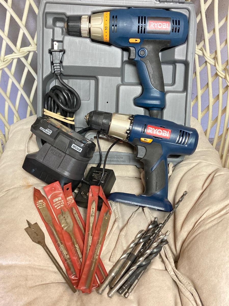 LOT 107: Ryobi Drills and Collection of Drill Bits