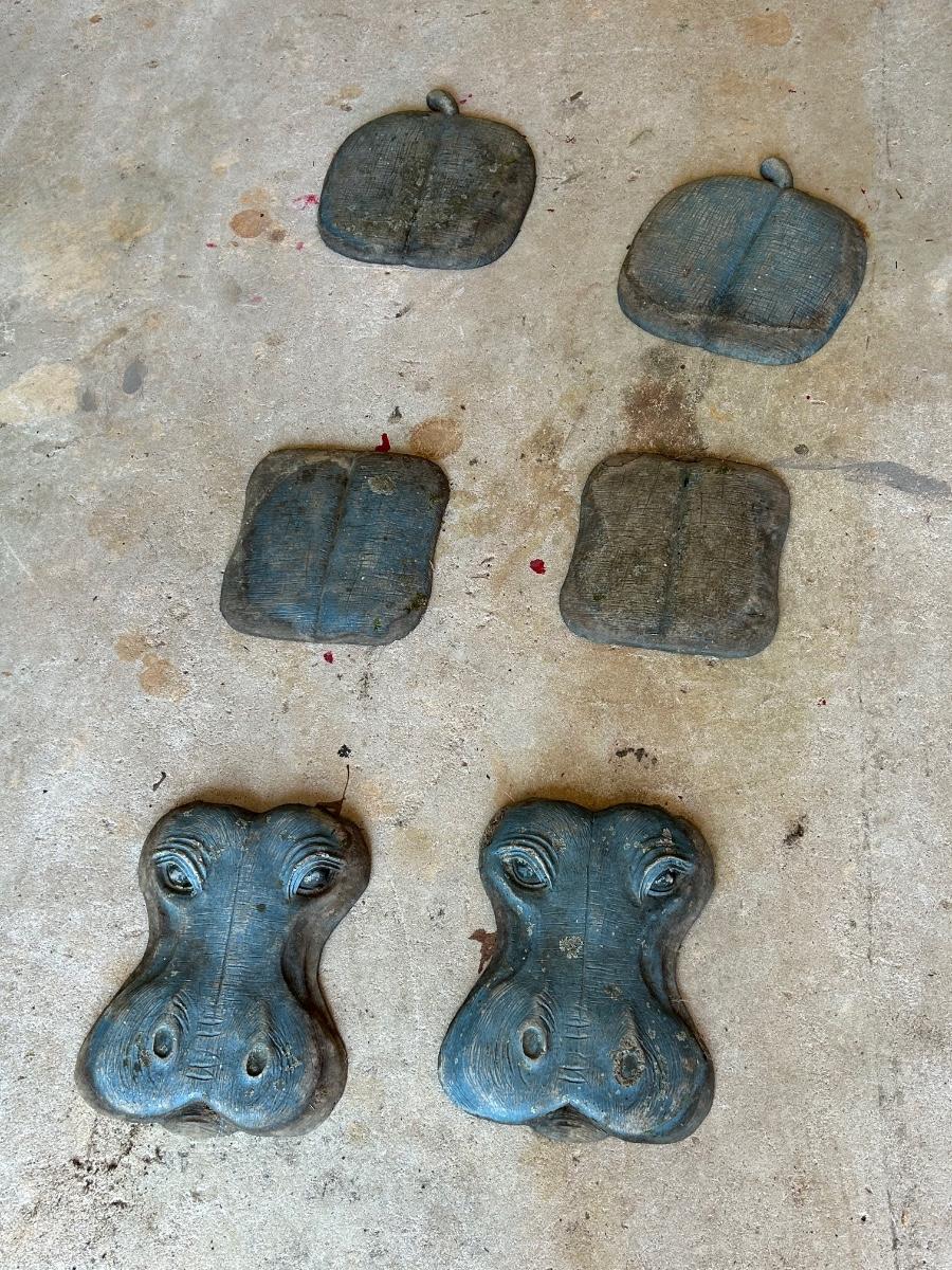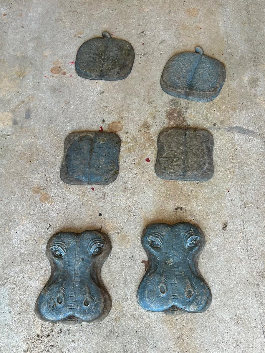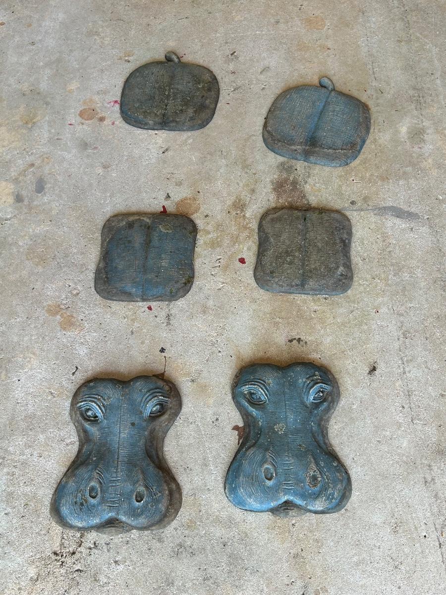 LOT 115G: Set of 2 Three piece Resin Hippos for Garden