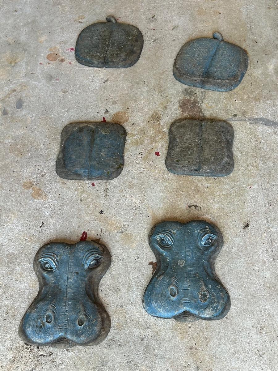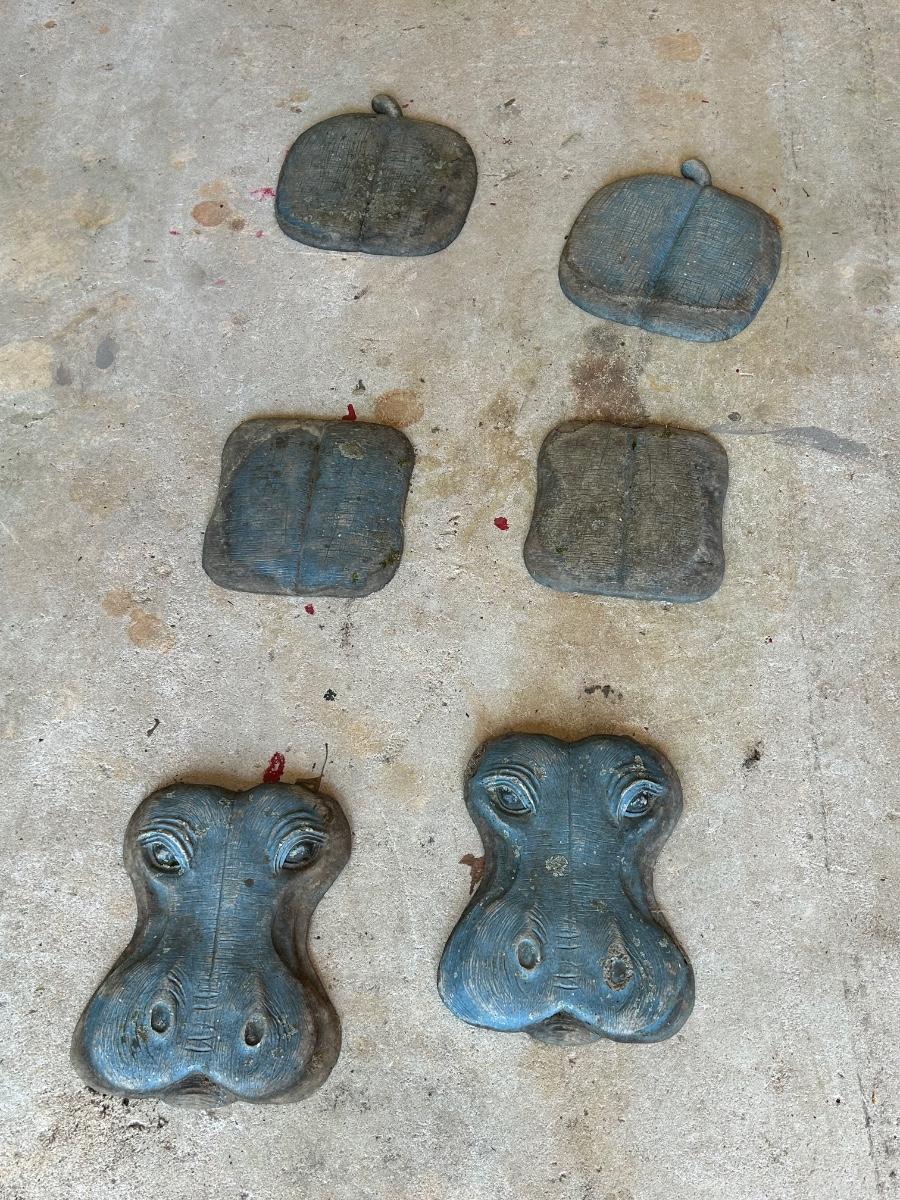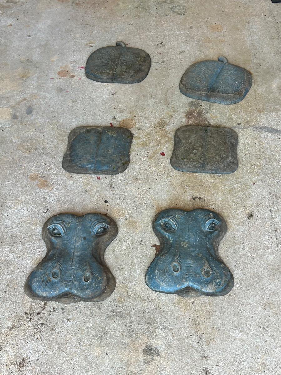 LOT 115G: Set of 2 Three piece Resin Hippos for Garden