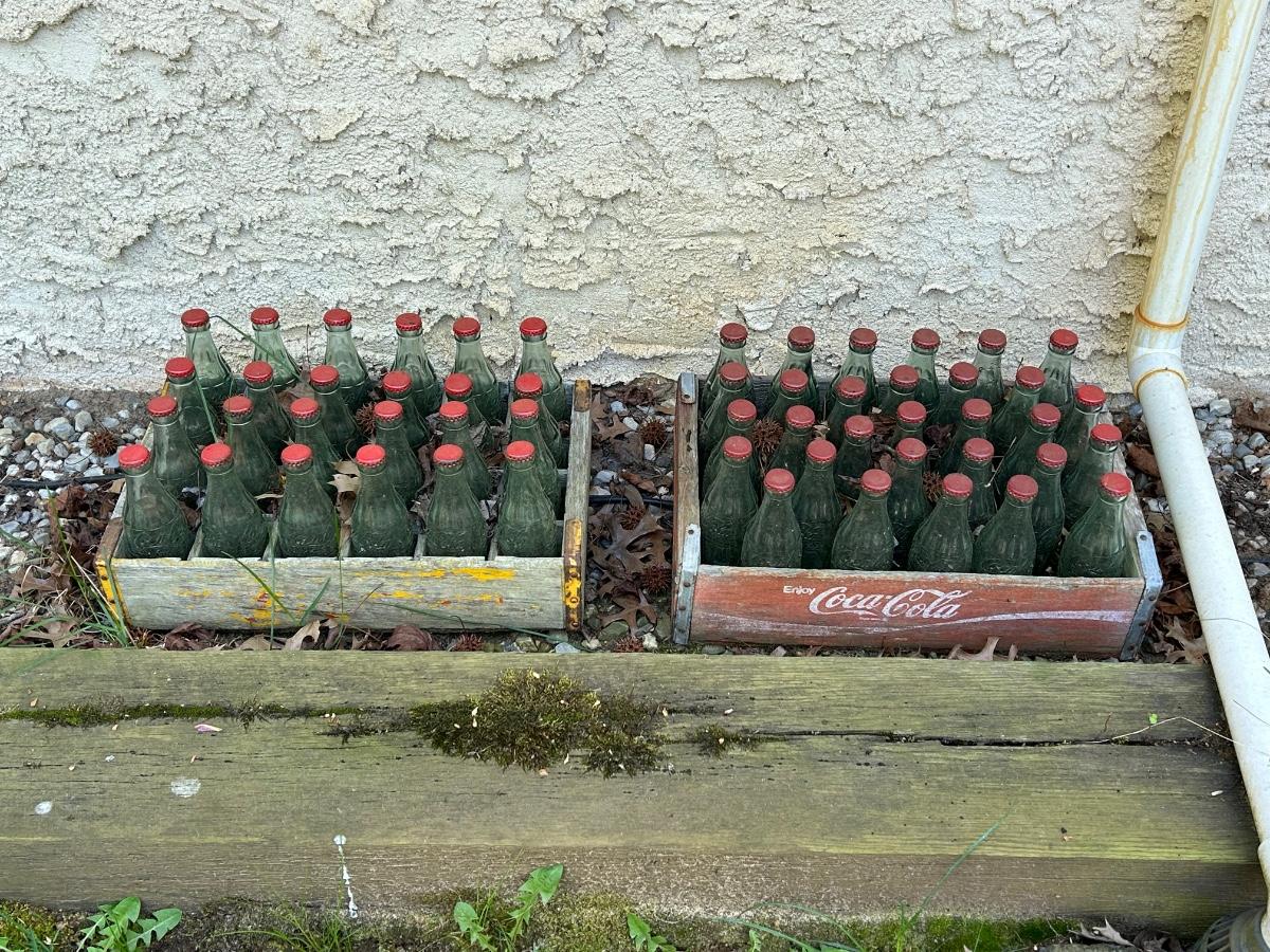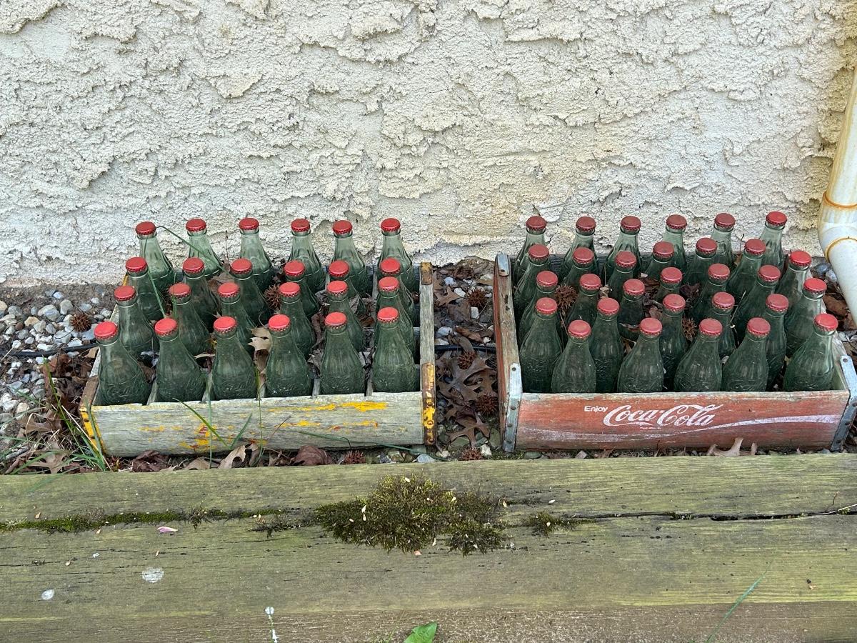 LOT 118OS: Two Wooden Vintage Coca-Cola Crates Filled With Glass Bottles With Bottle Caps