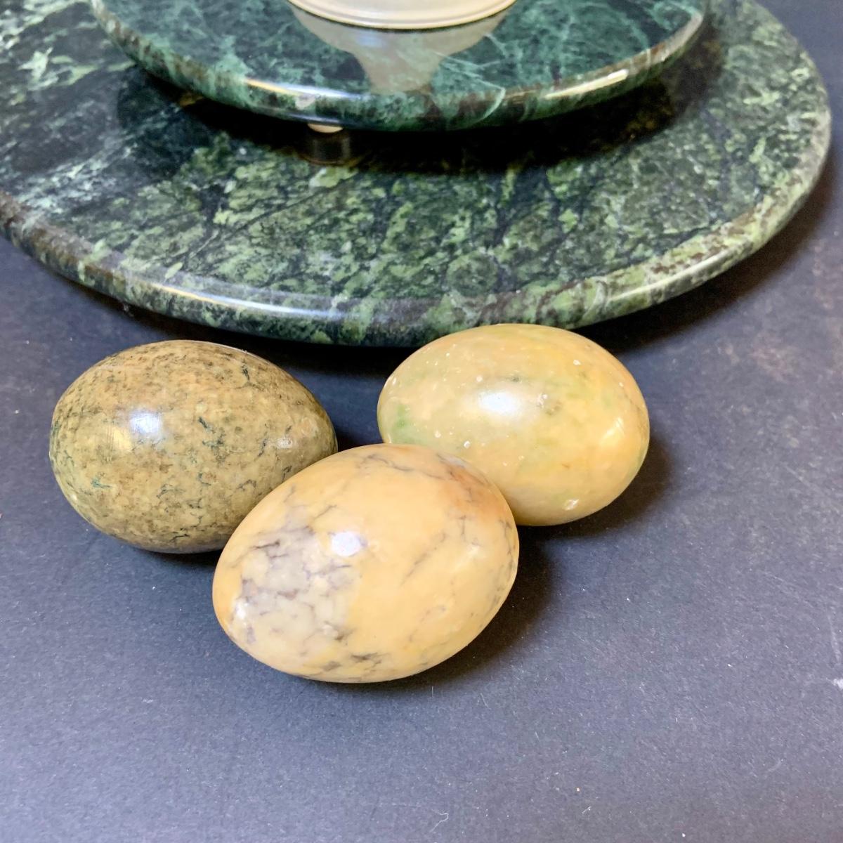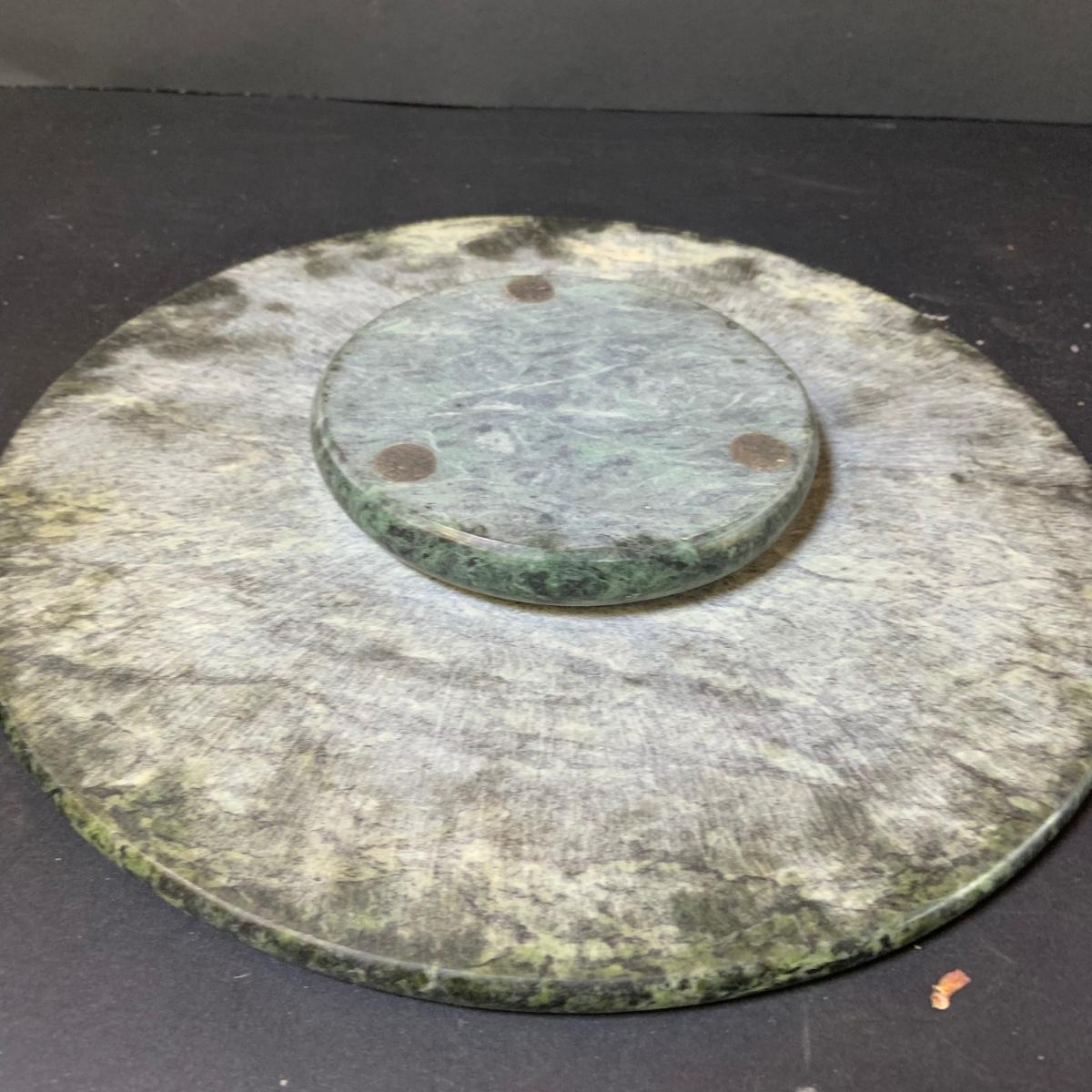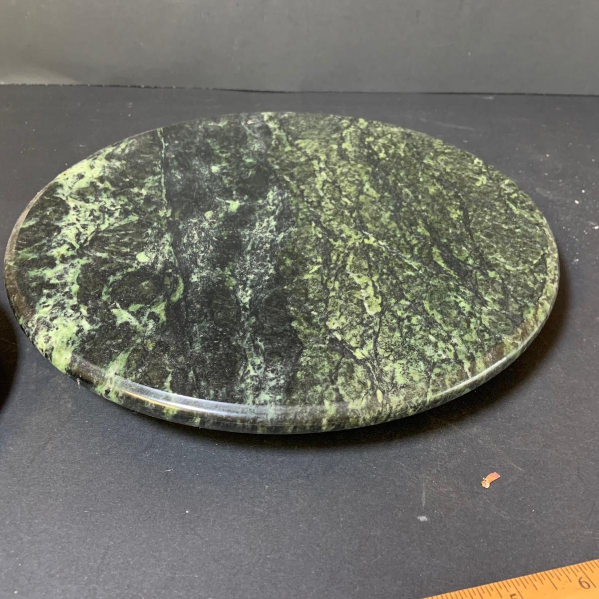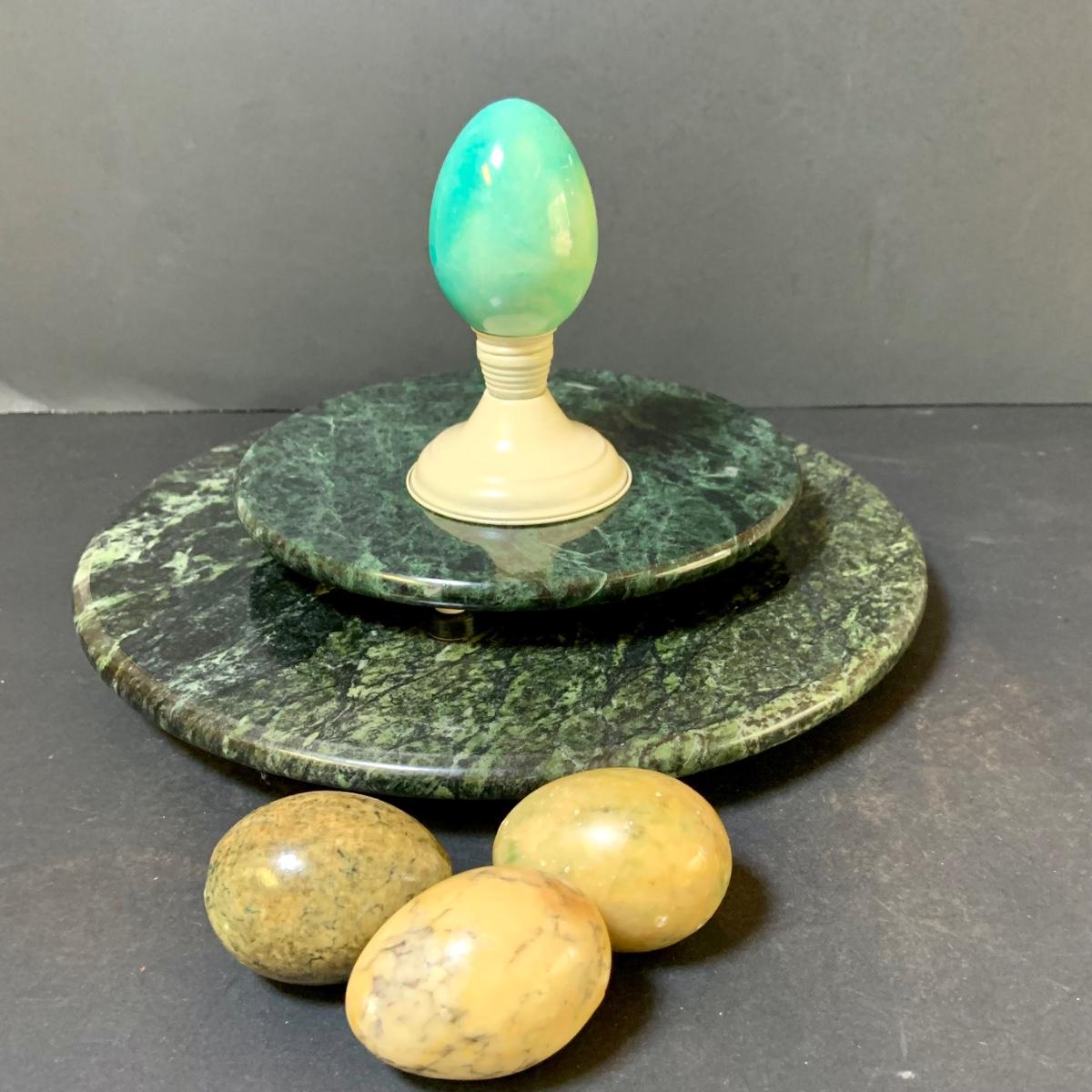 LOT 124: Green Marble Lazy Susan and Footed Cheese Tray and Marble Eggs