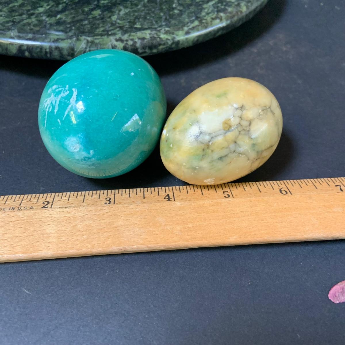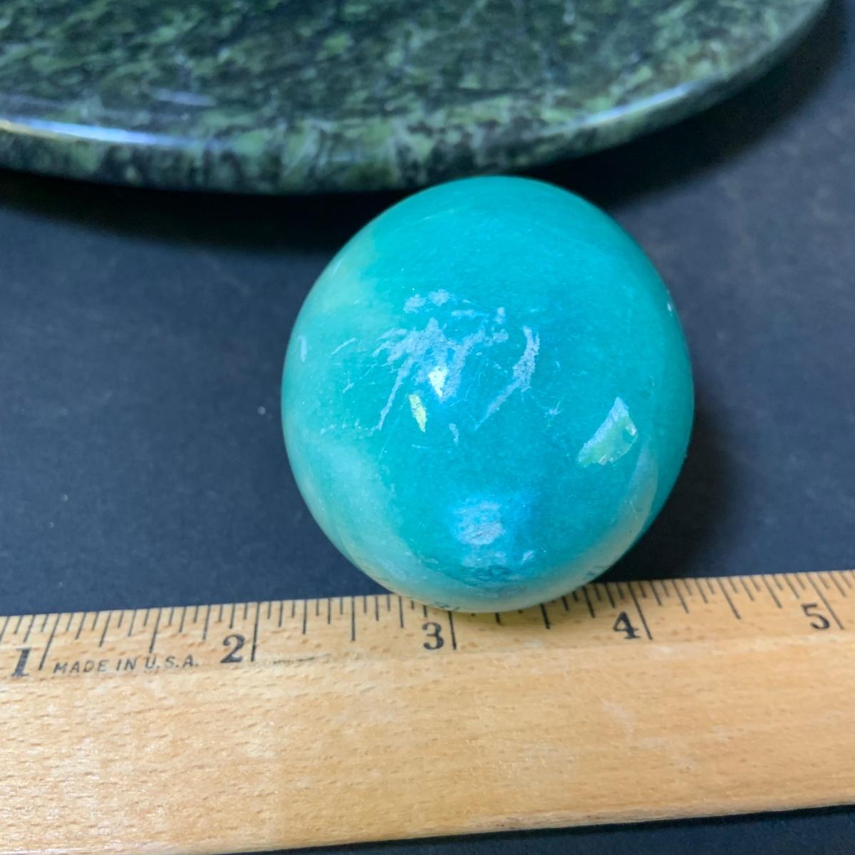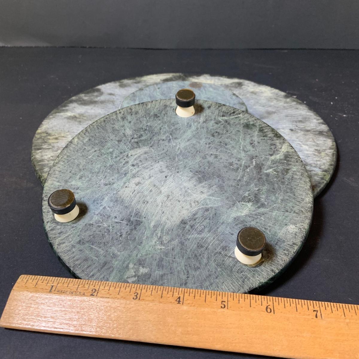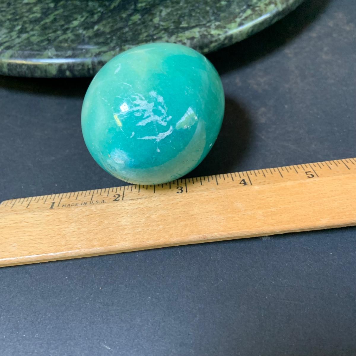 LOT 124: Green Marble Lazy Susan and Footed Cheese Tray and Marble Eggs