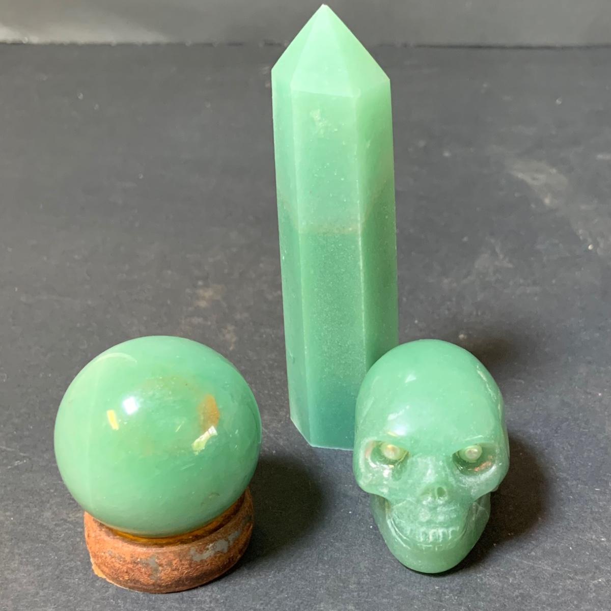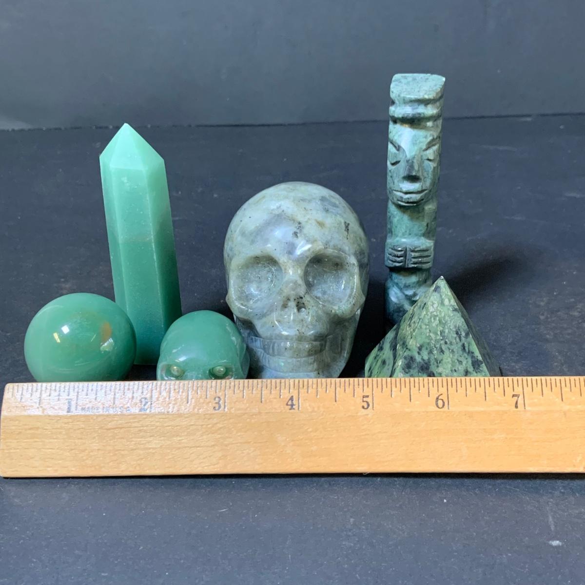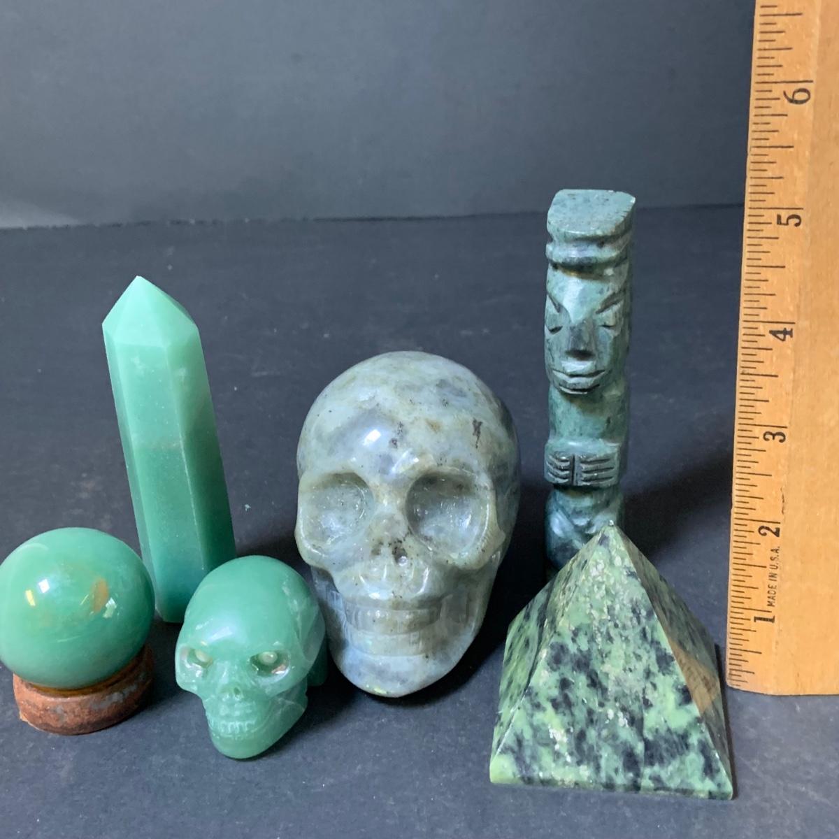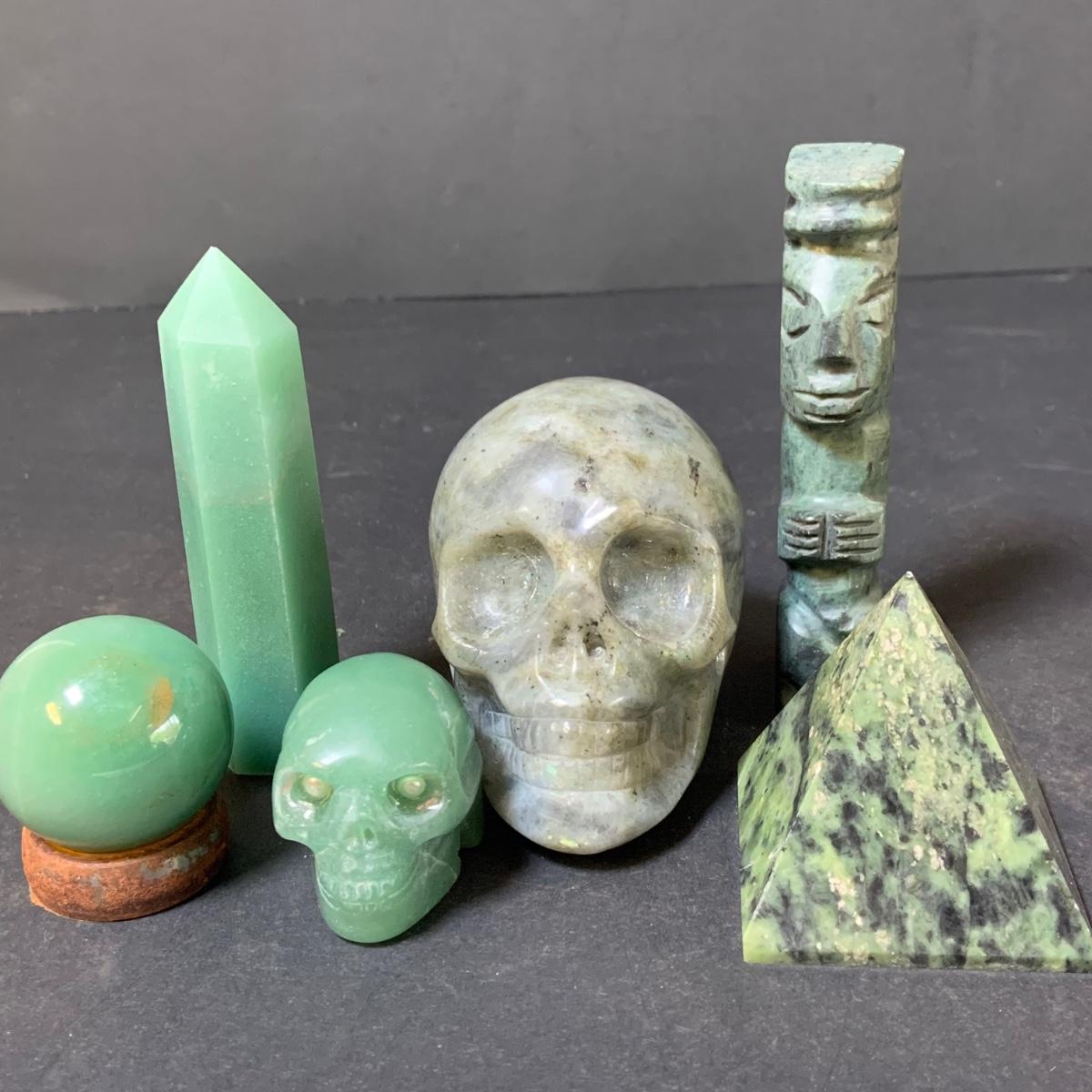 LOT 125: Polished Quartz Skulls. Pyramid and More