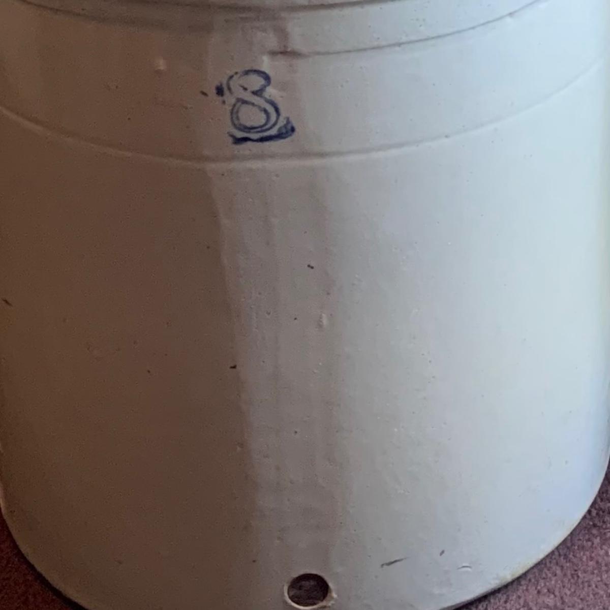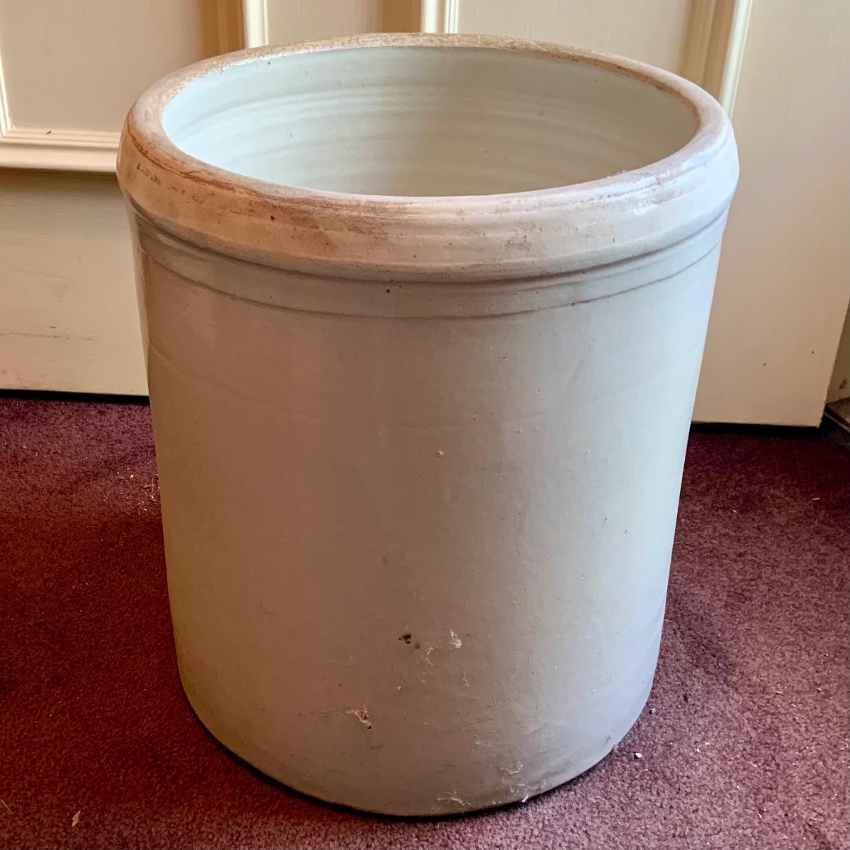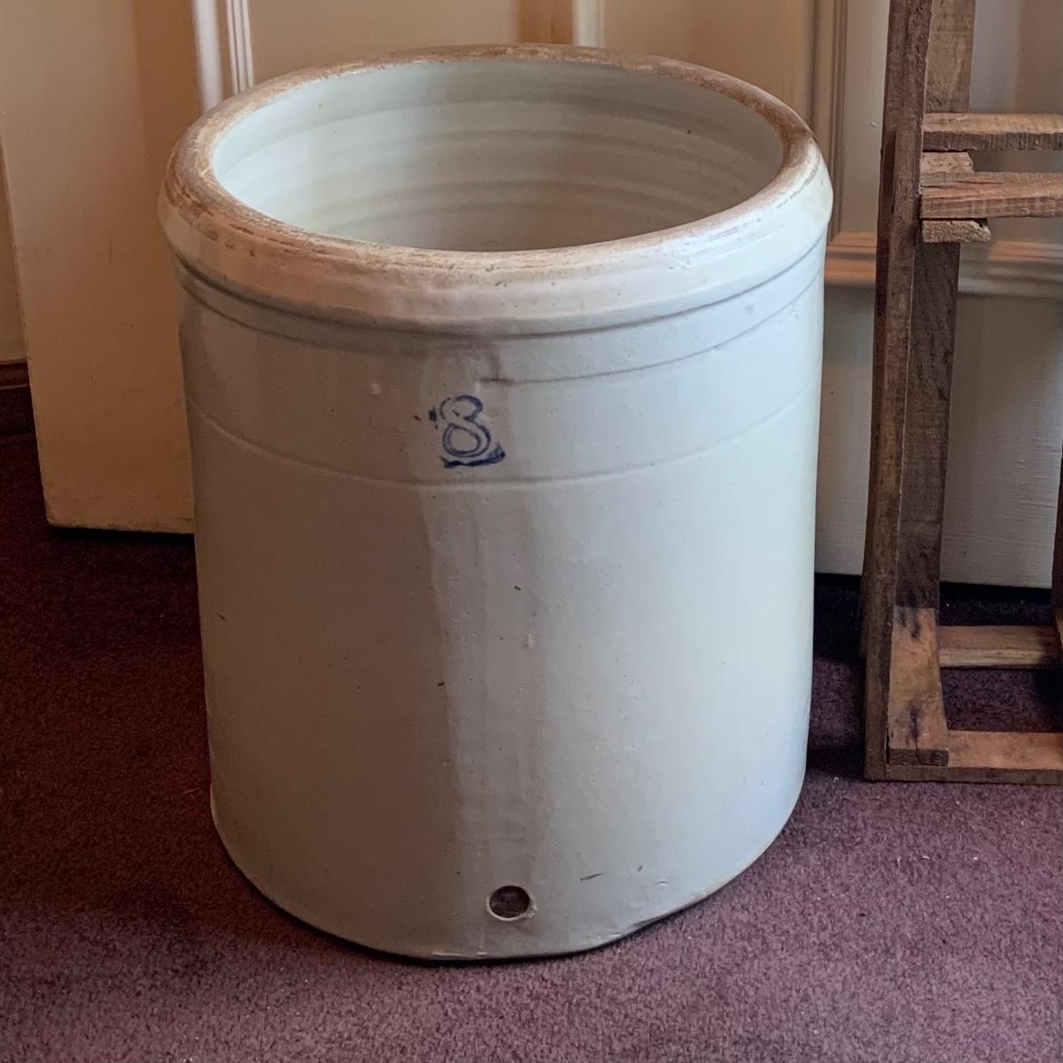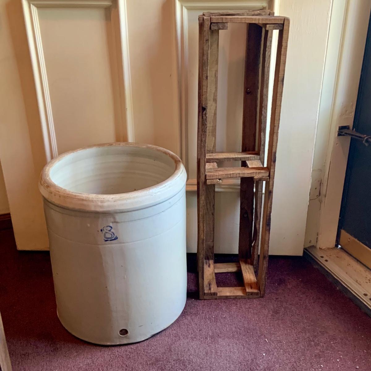 LOT 128: Large 8 Gallon Stoneware Crock and Vintage Wood Crate