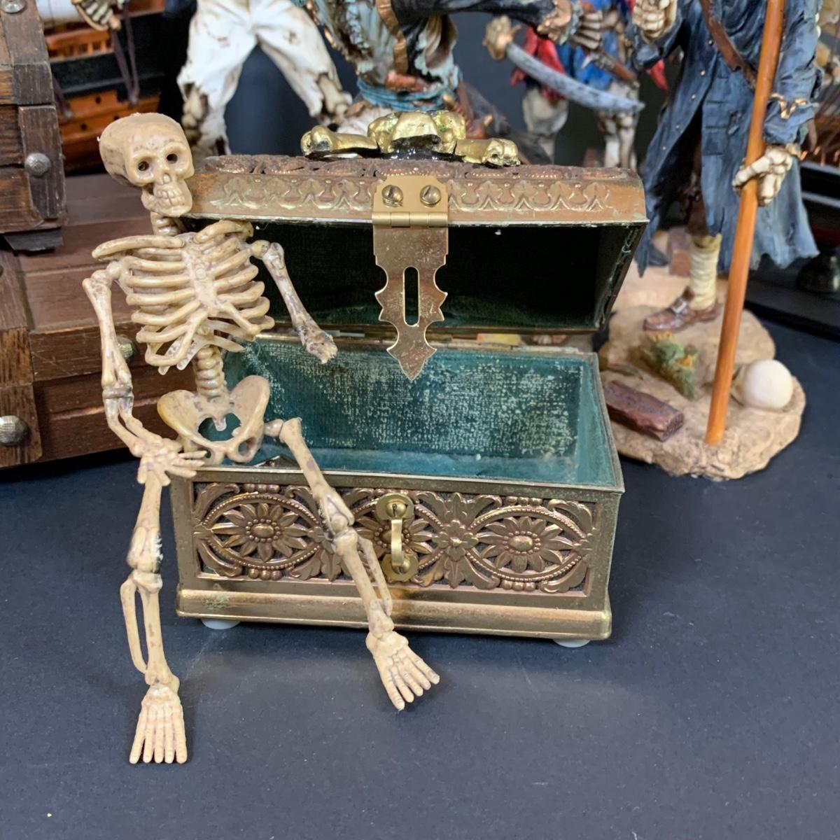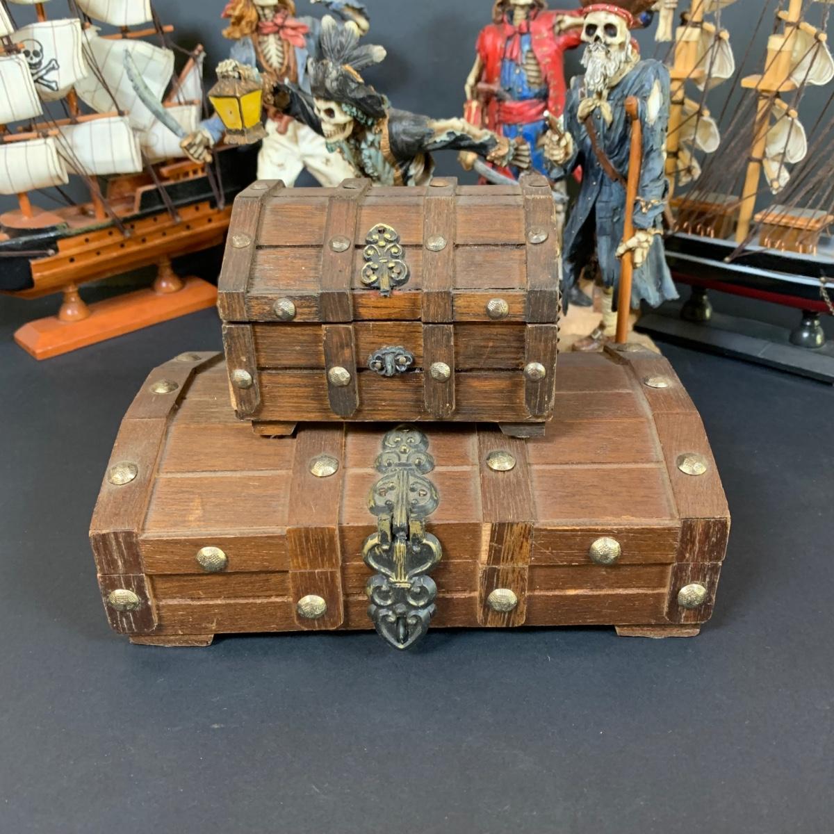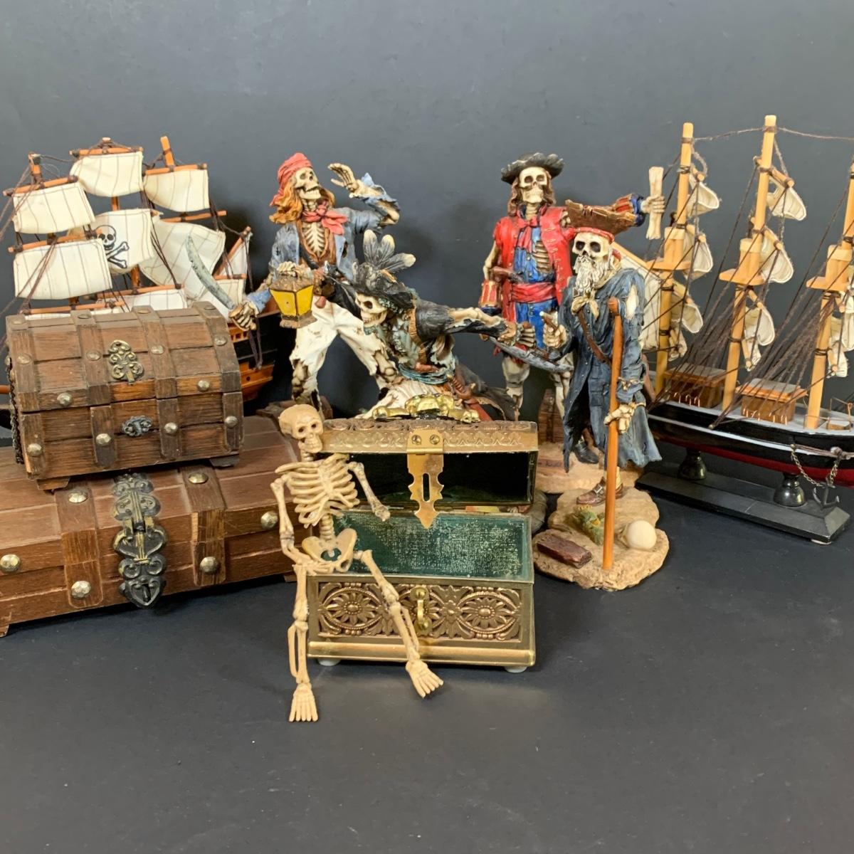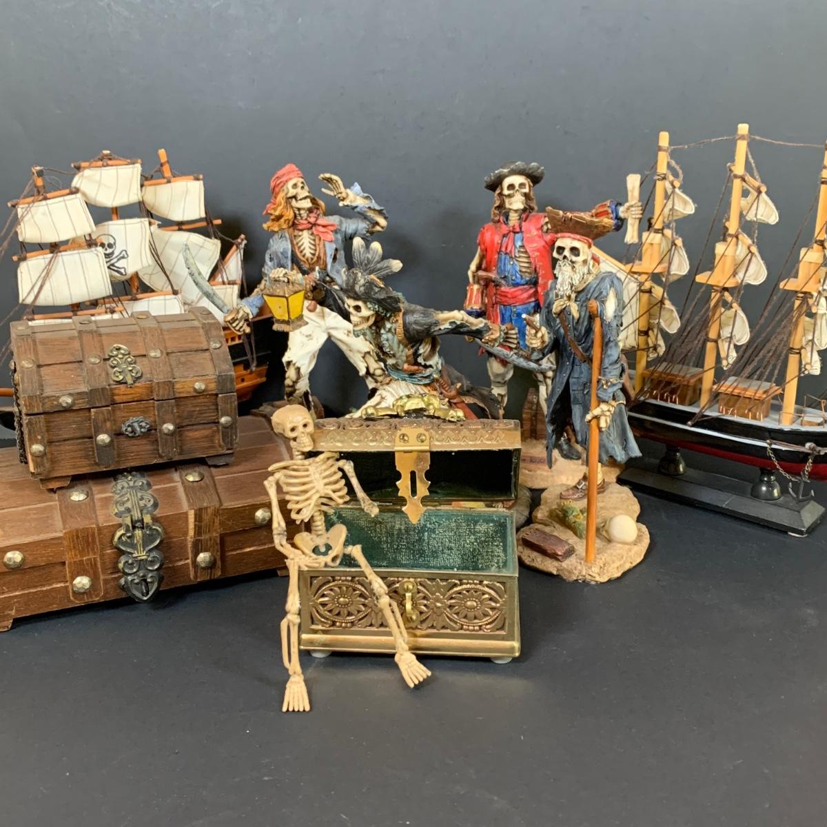 LOT 141: Pirate Collection: Treasure Chest/Jewelry Boxes, Wooden Tall Ship Models, Pirate Figures