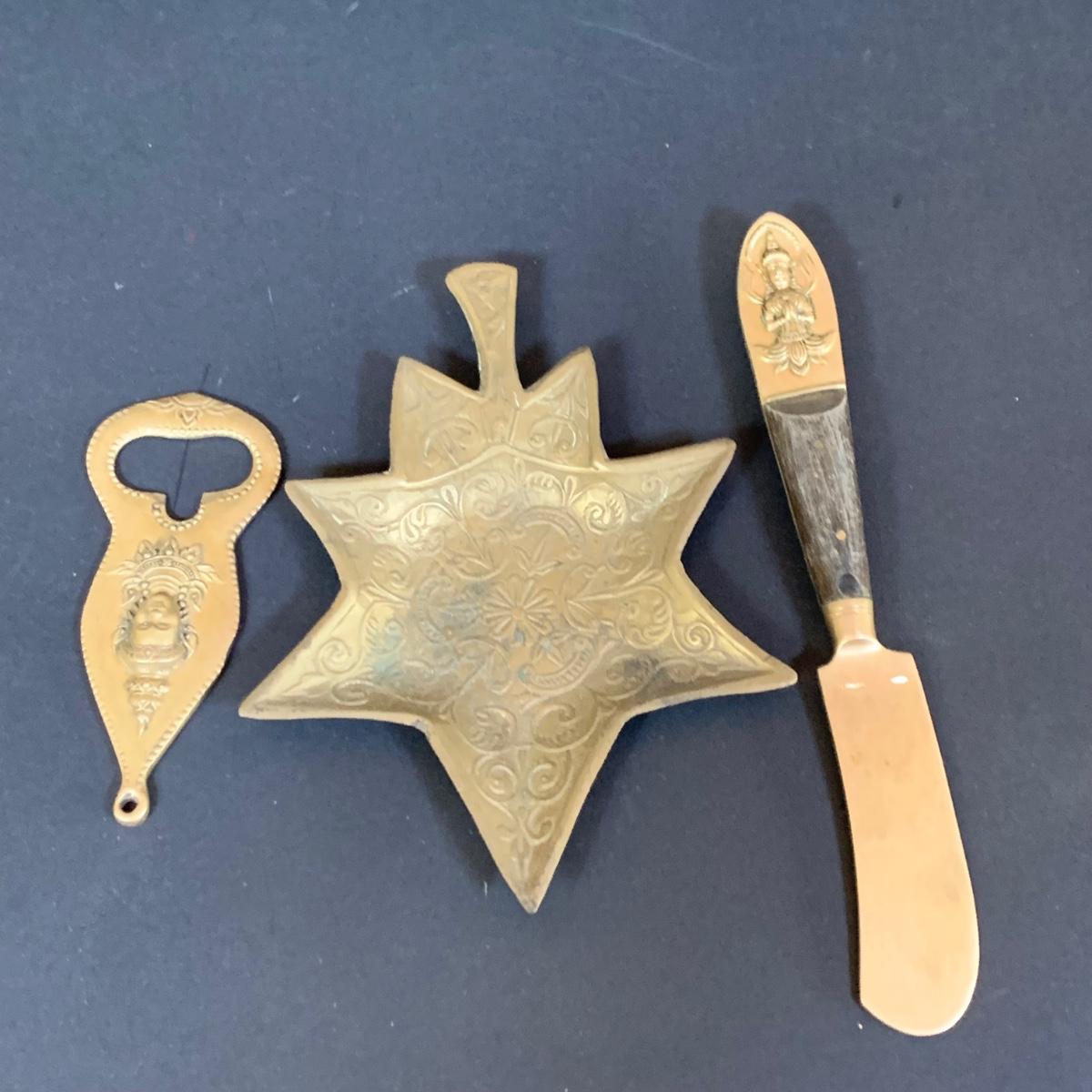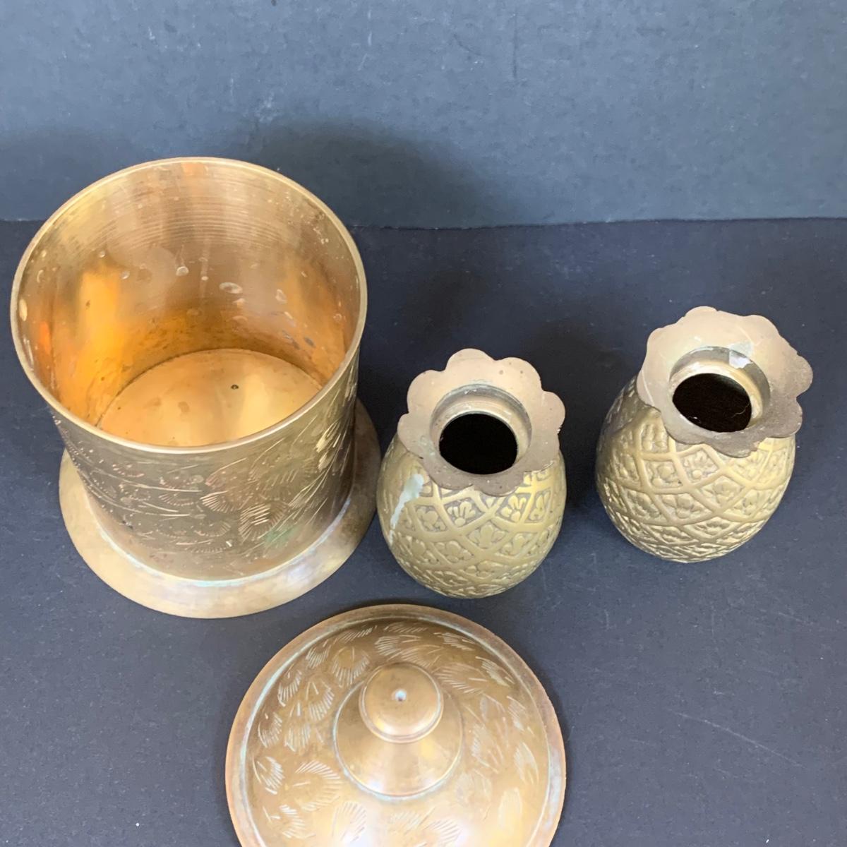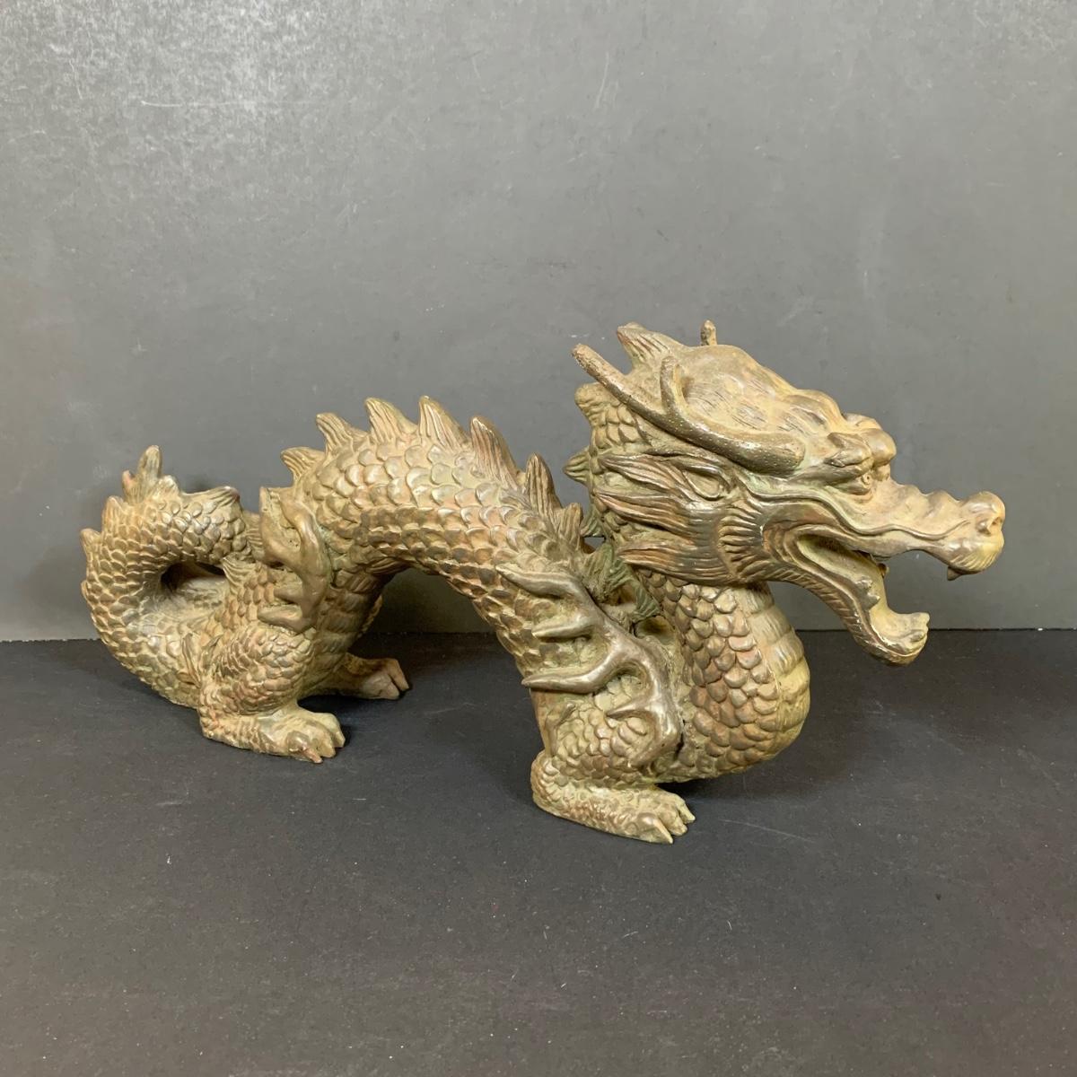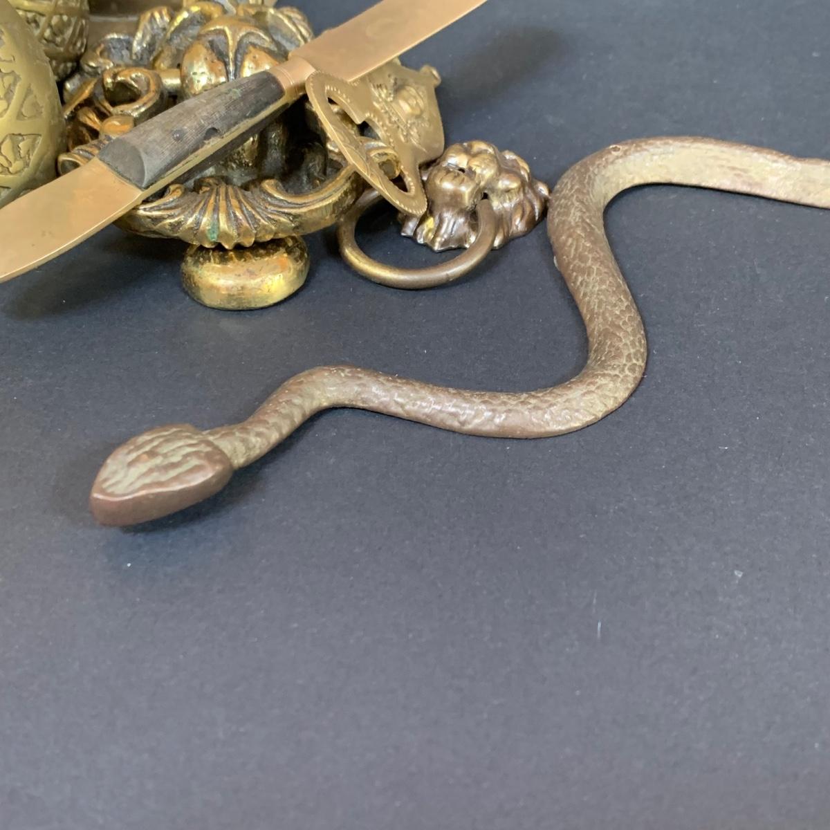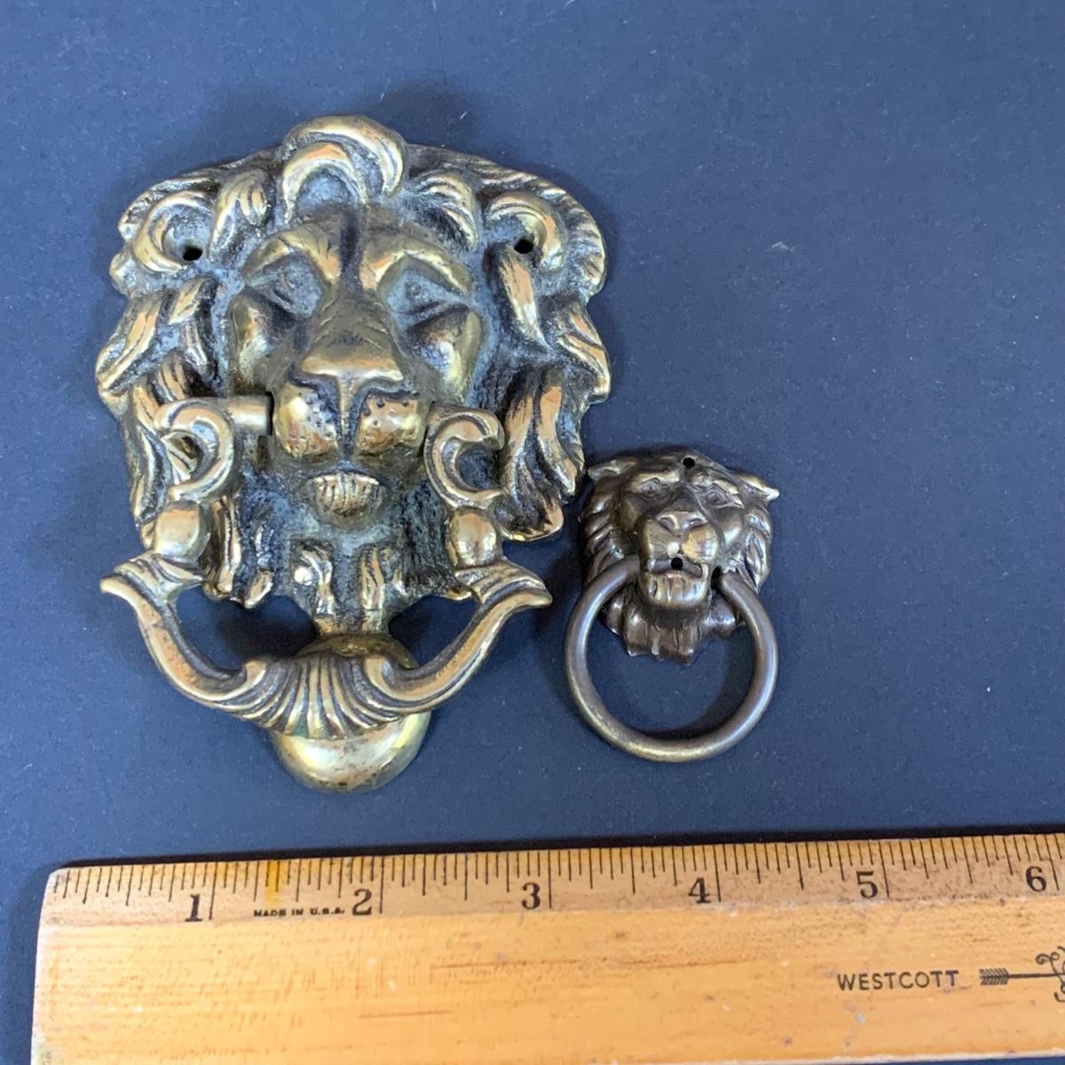 LOT 143: Etched Brass Container Jar w/Lid, Brass Pineapple Candle Holders, Resin Dragon, Lion Hardware & More