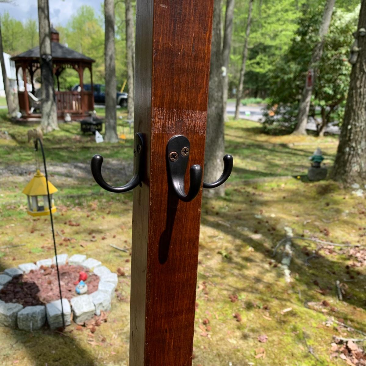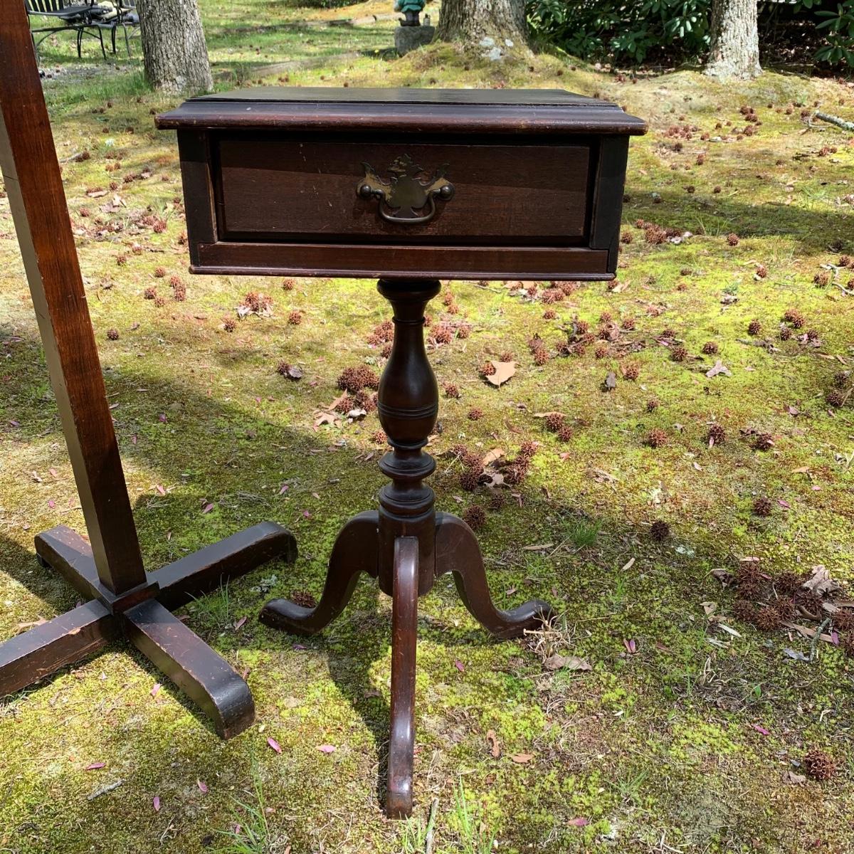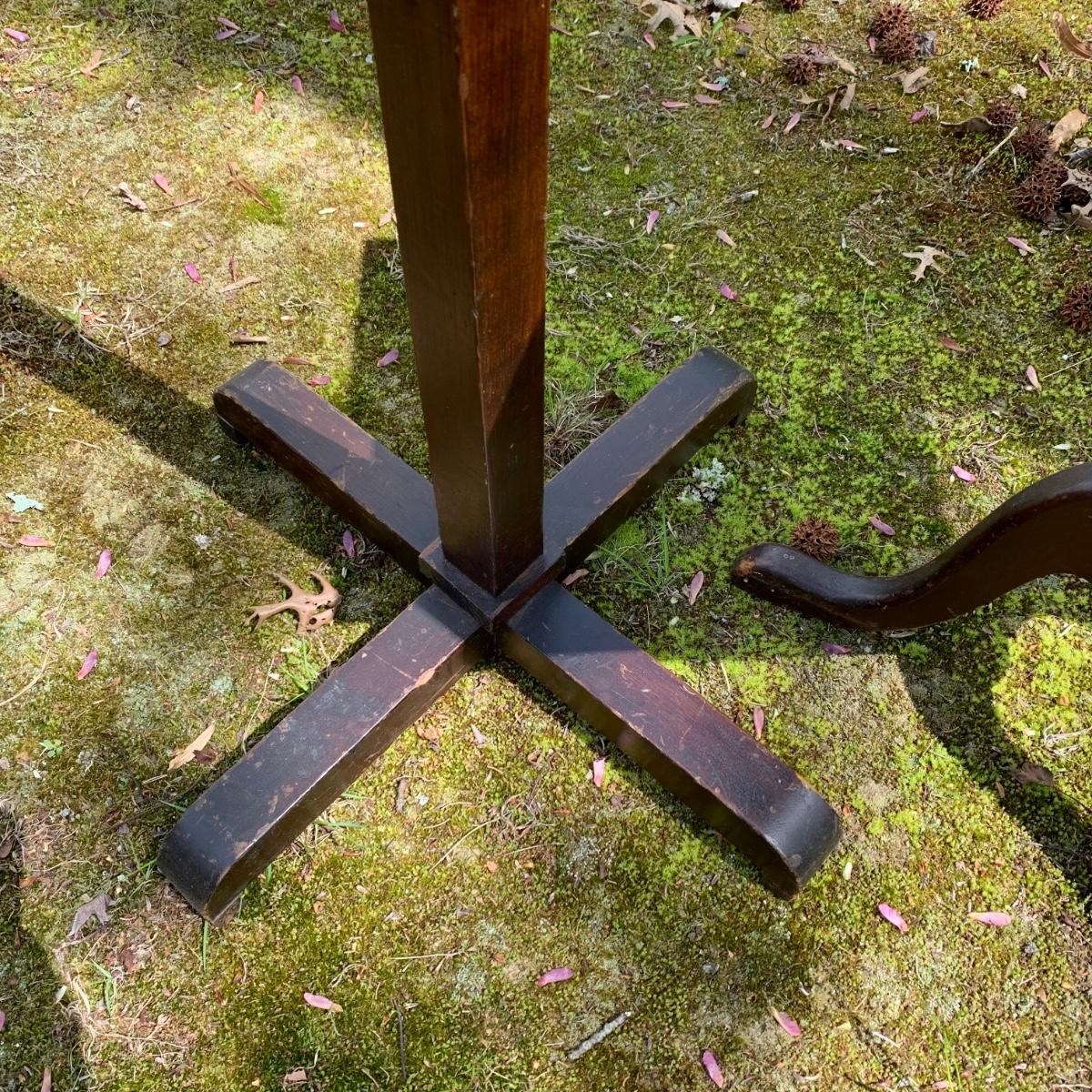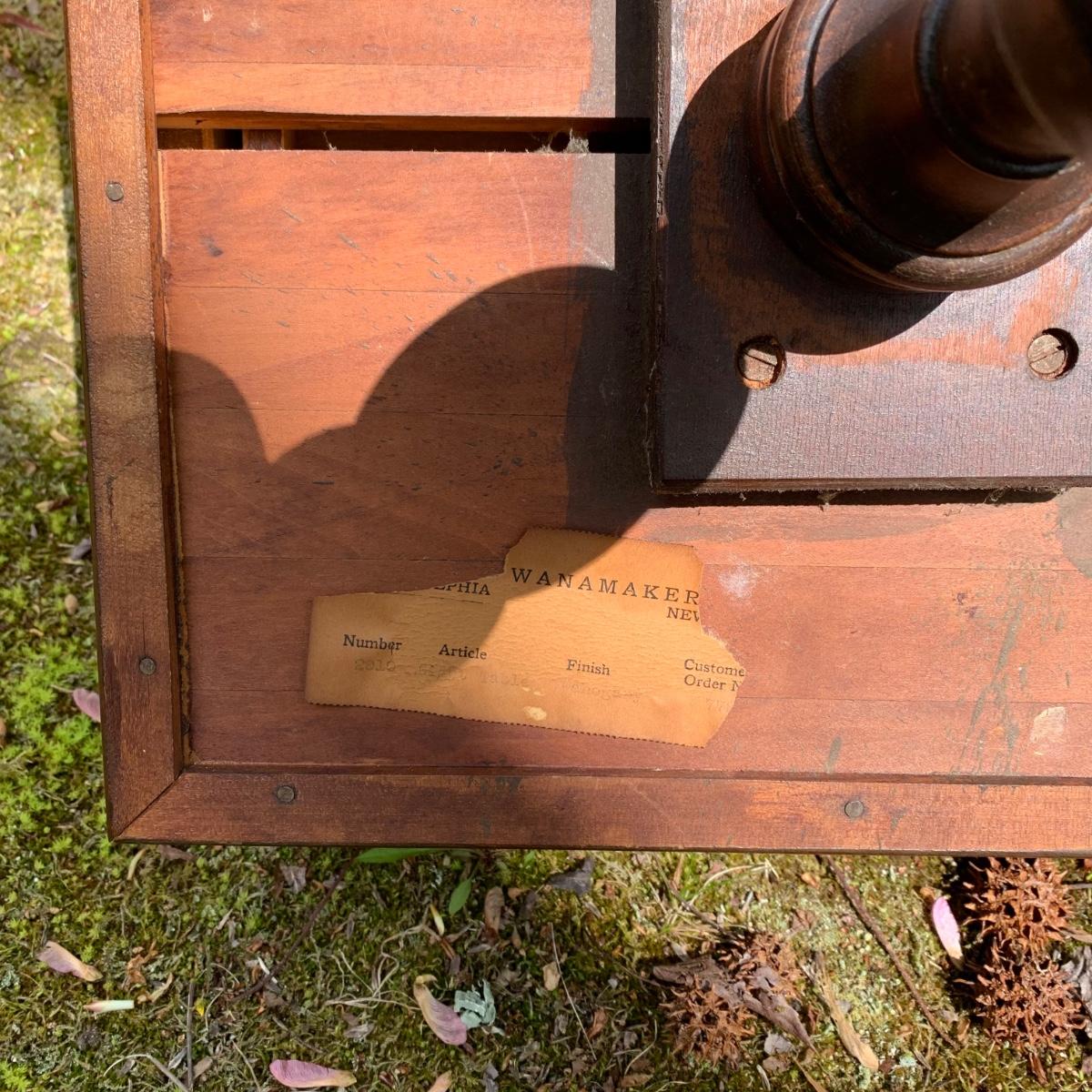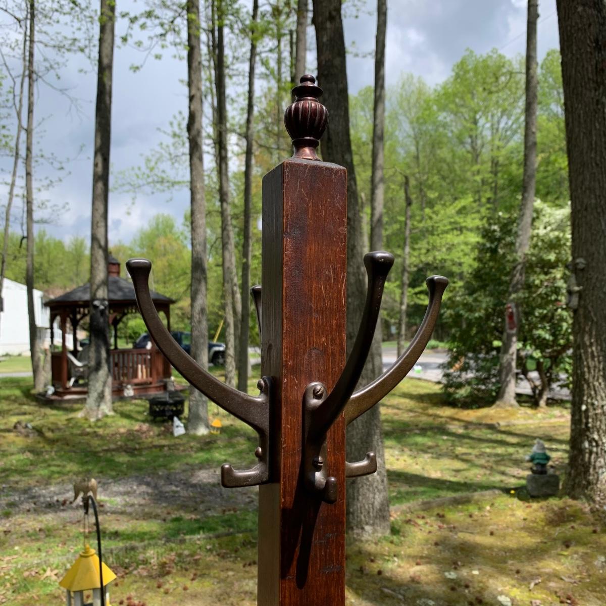 LOT 155: Vintage Wooden Standing Coatrack & Antique John Wanamaker Side Table