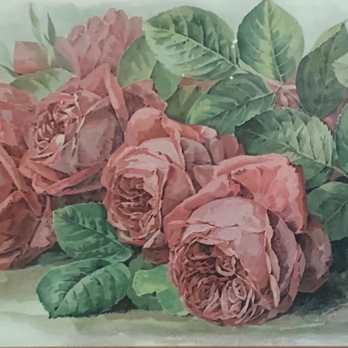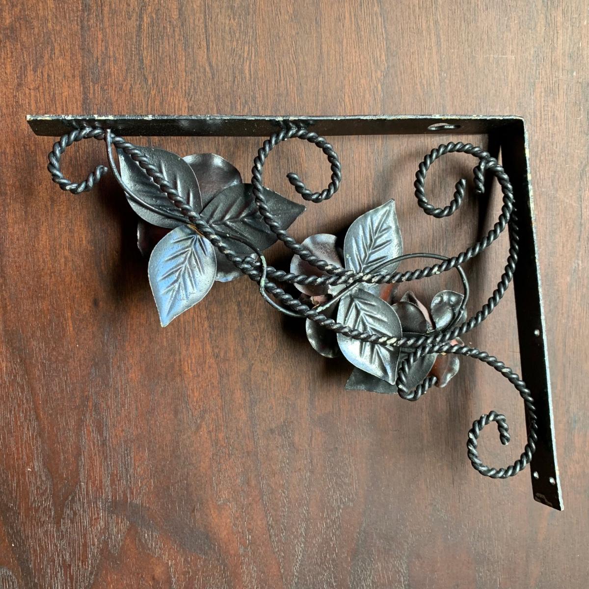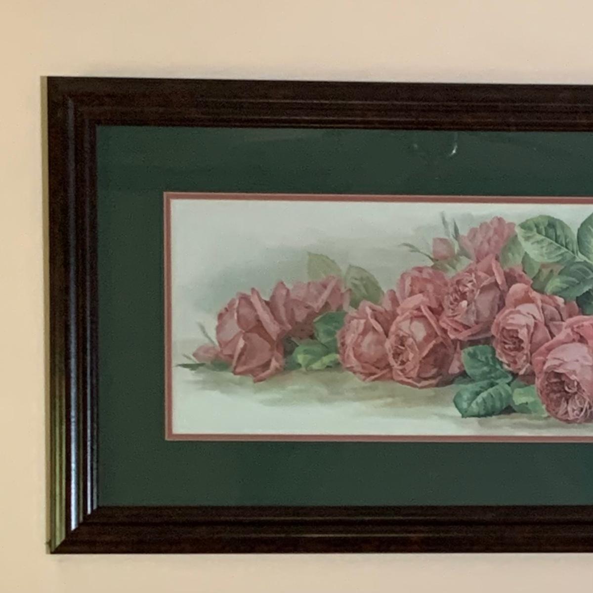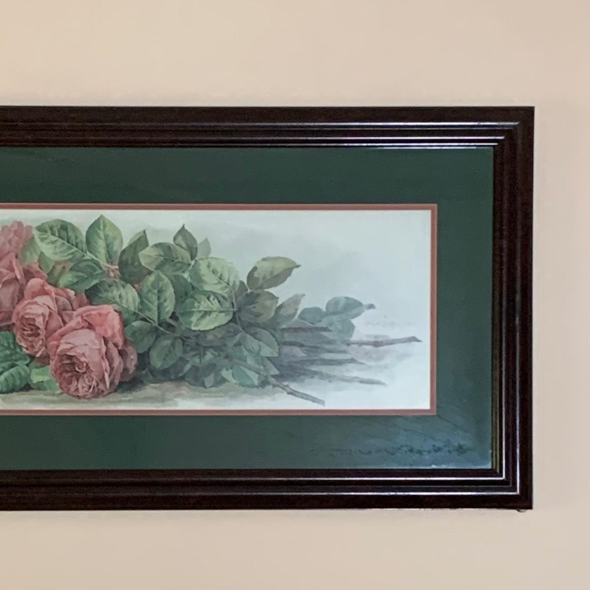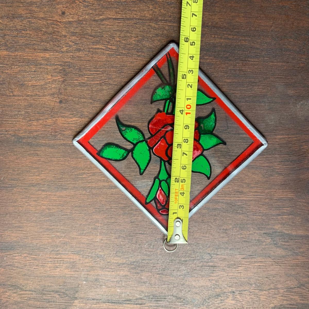LOT 157: Signed Home Decor Print: Roses & Floral Painted Shelf Brackets & Painted Stained Glass Rose