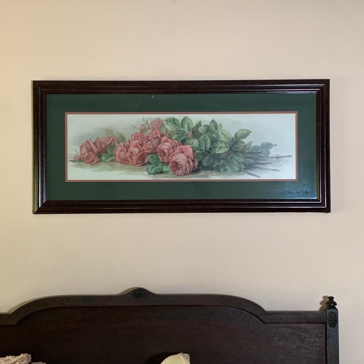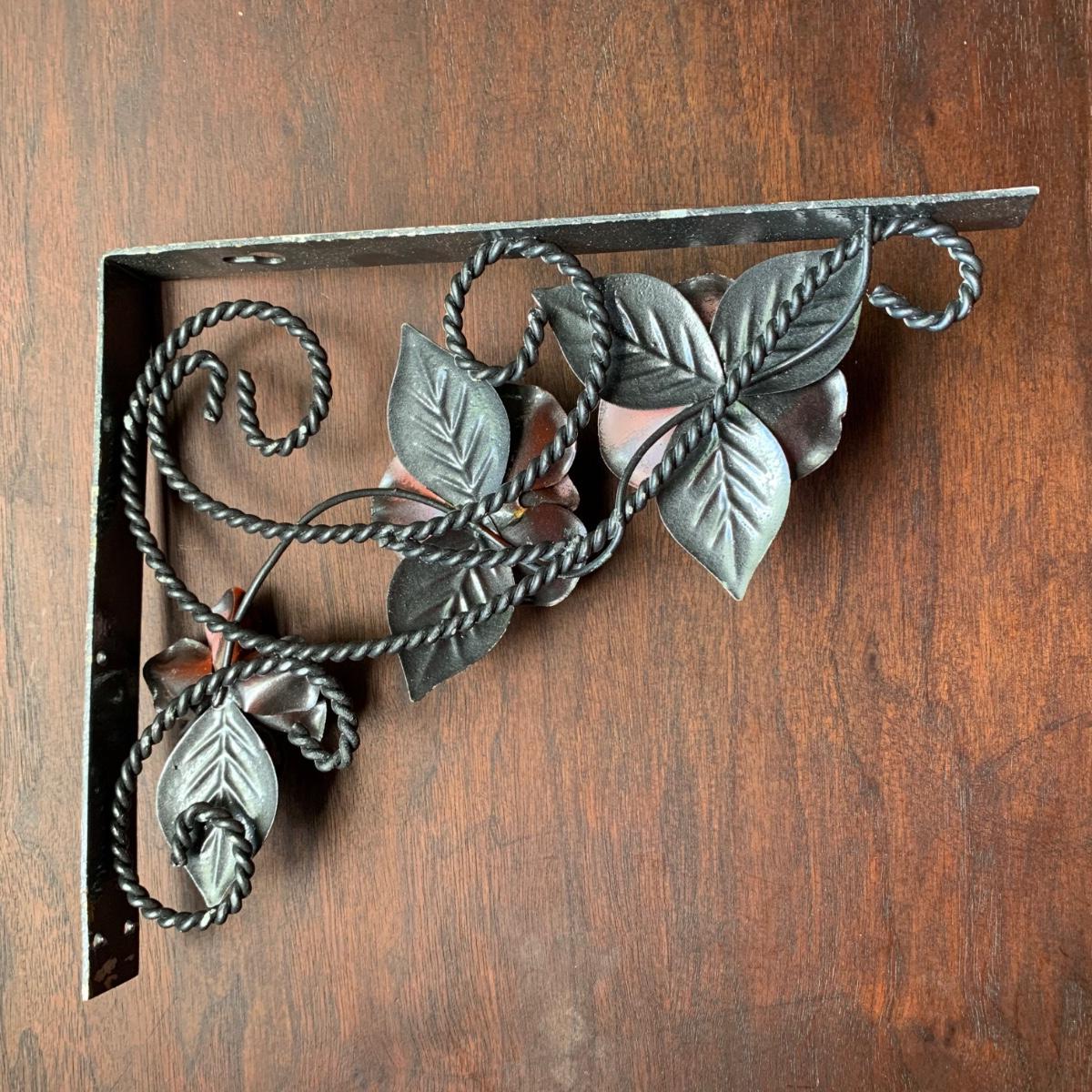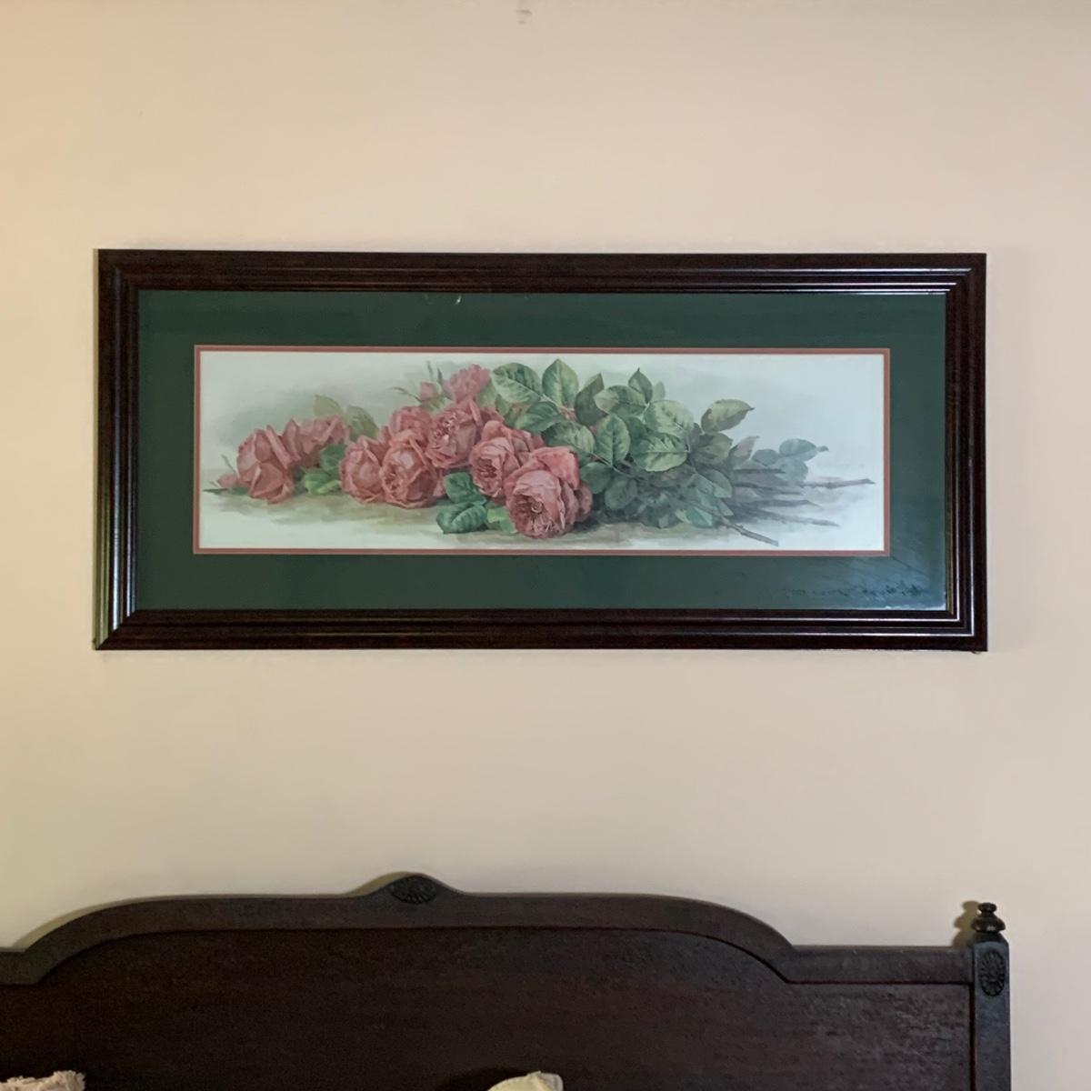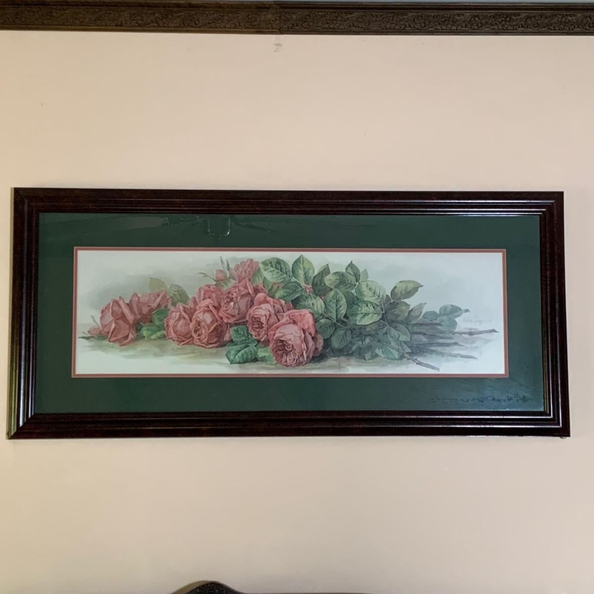 LOT 157: Signed Home Decor Print: Roses & Floral Painted Shelf Brackets & Painted Stained Glass Rose
