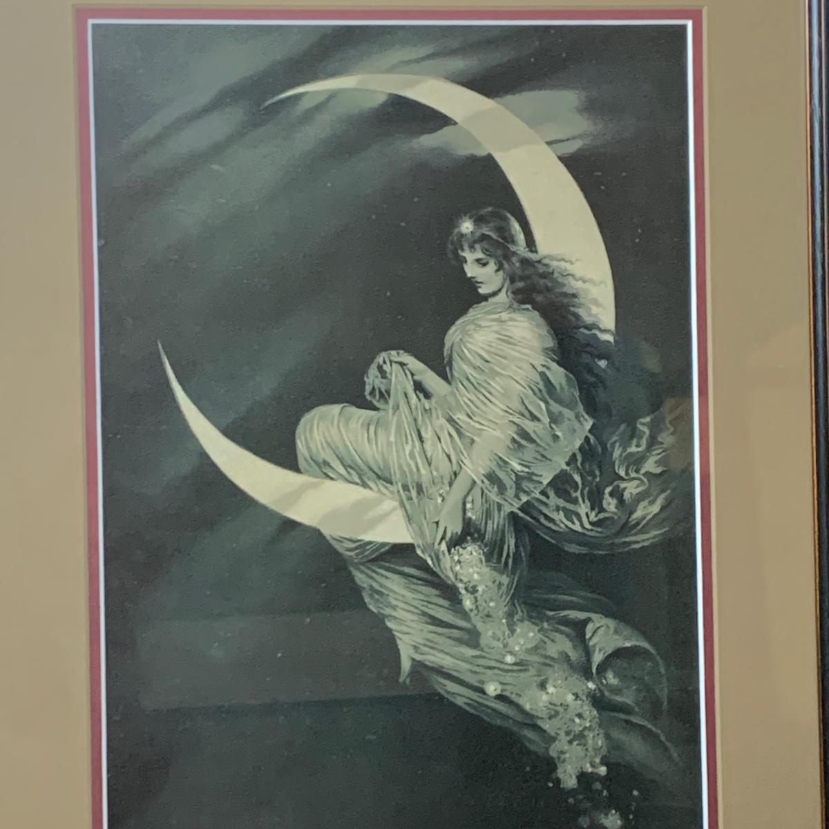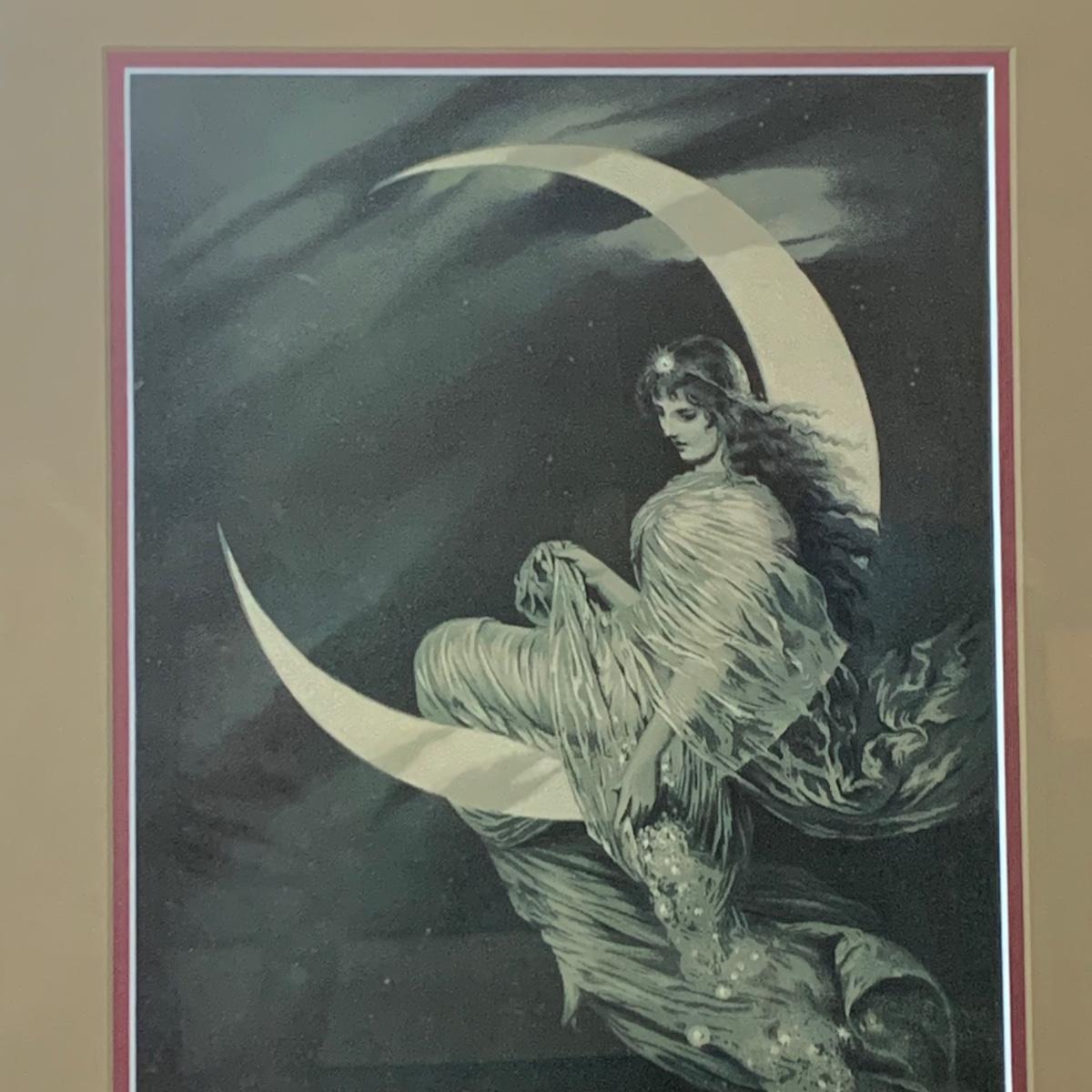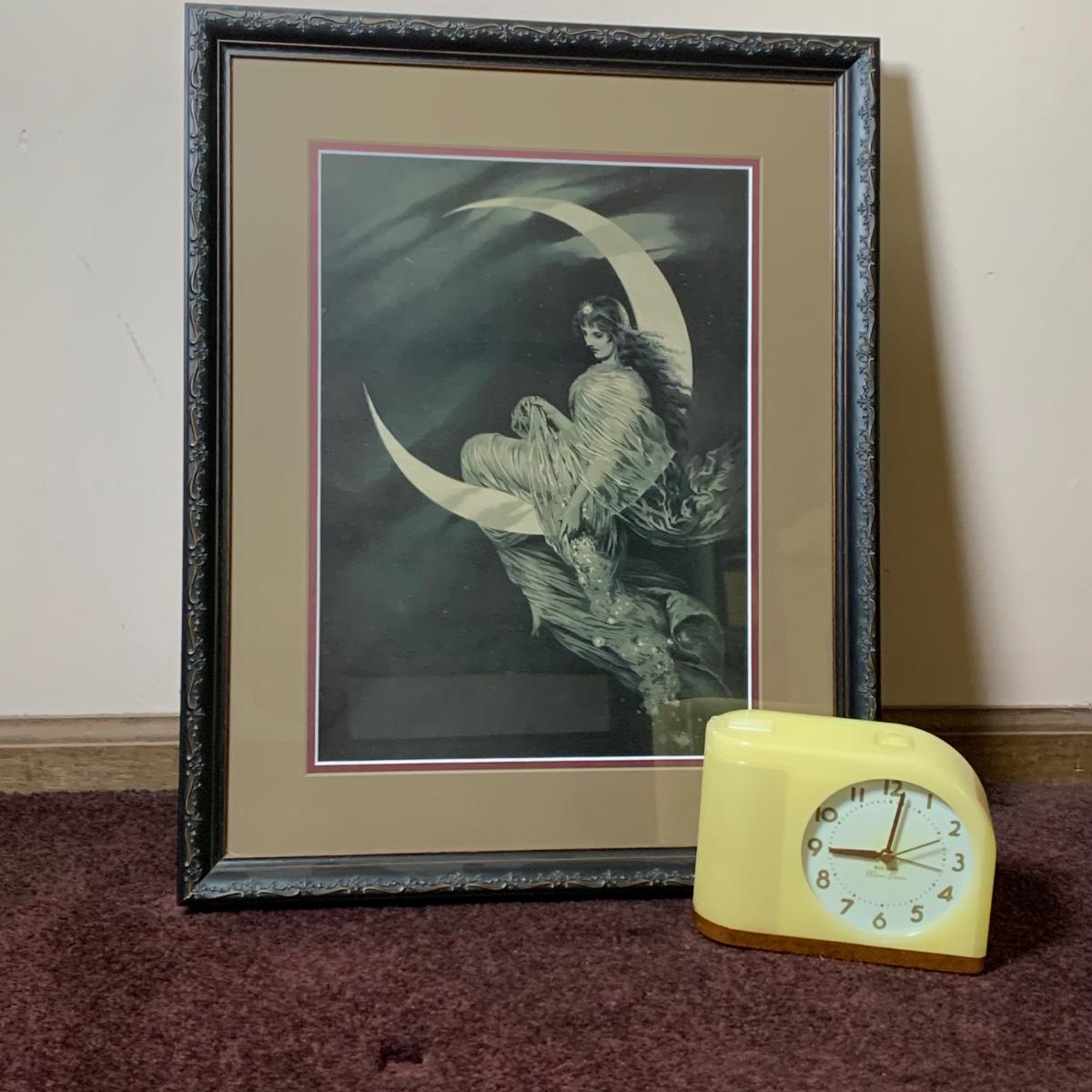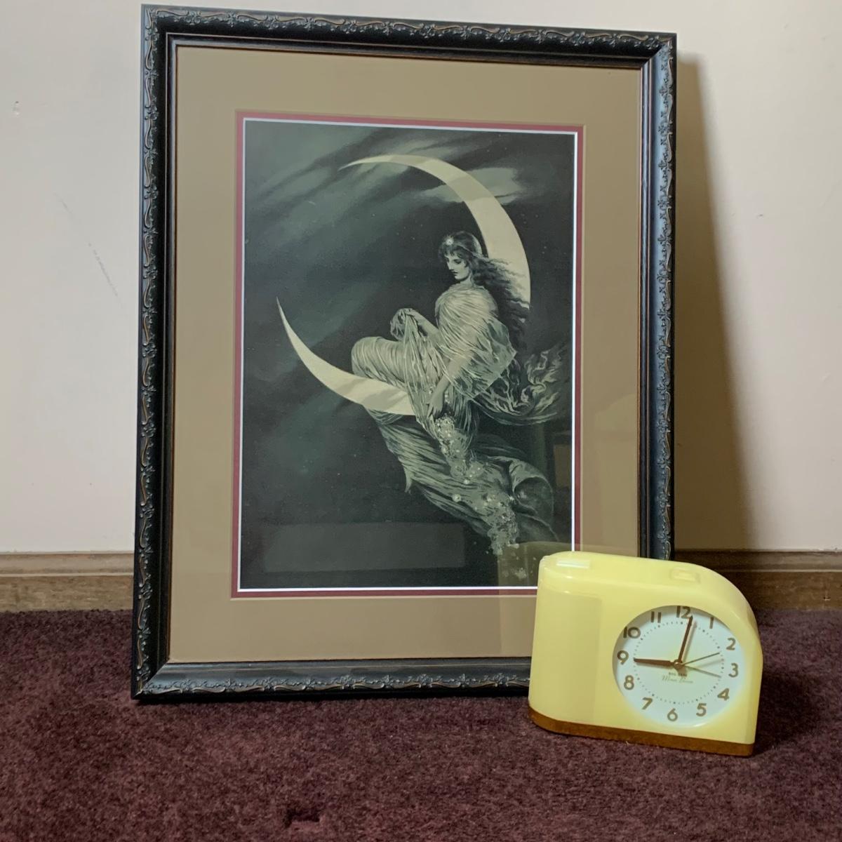 LOT 158: Westeclox Moon Beam Alarm Clock #43000 & Fairy of the Moon Framed Print