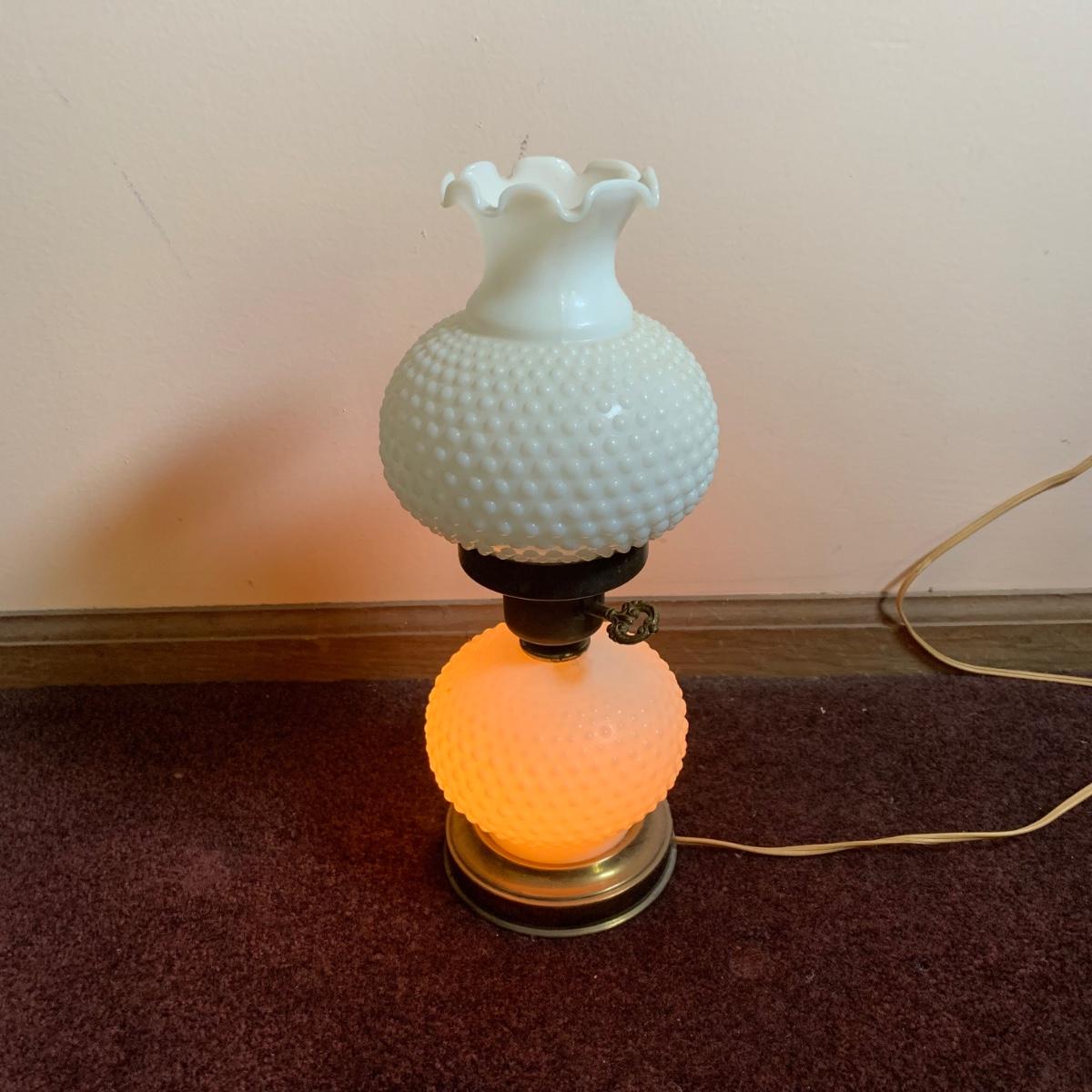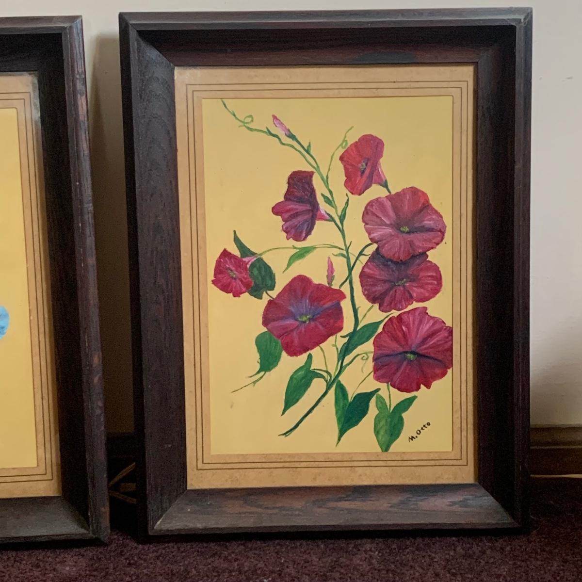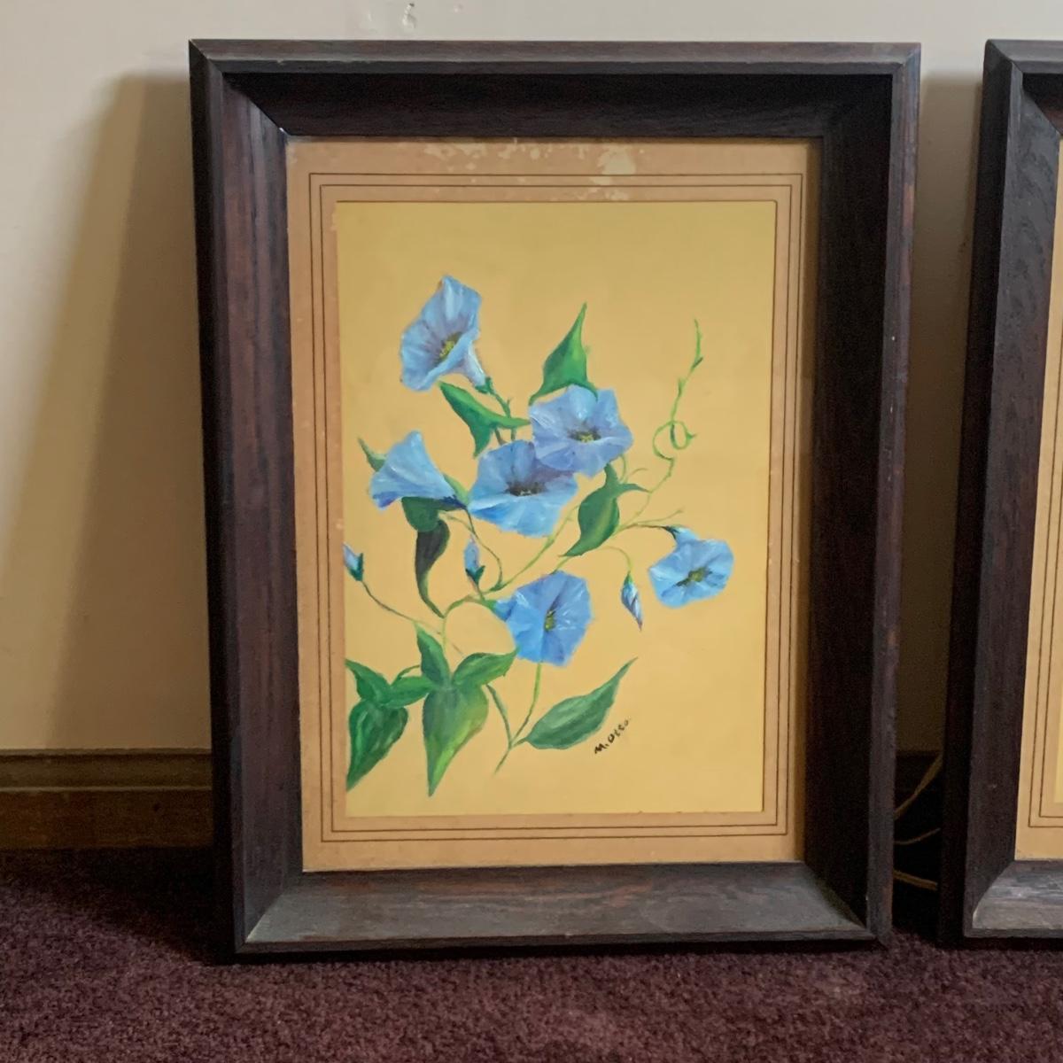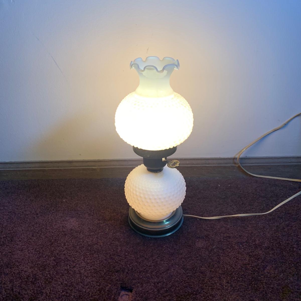 LOT 159: Hobnail Milk Glass Lamps, Portrait of Women Historical Art Print & Signed "Morning Glory" Painting, M. Otto