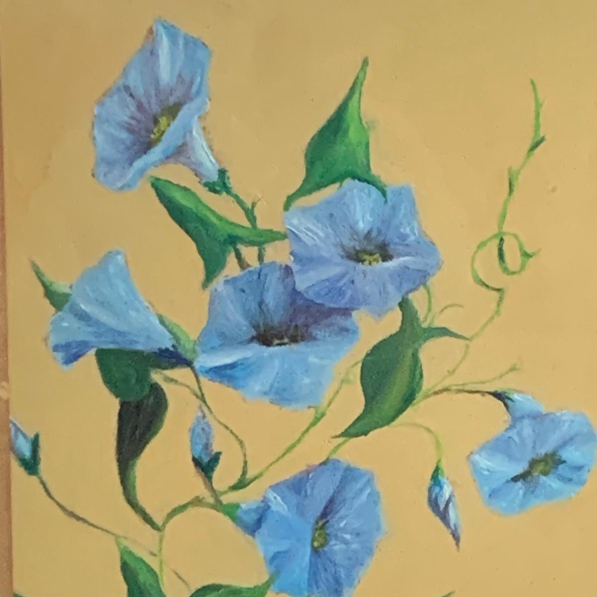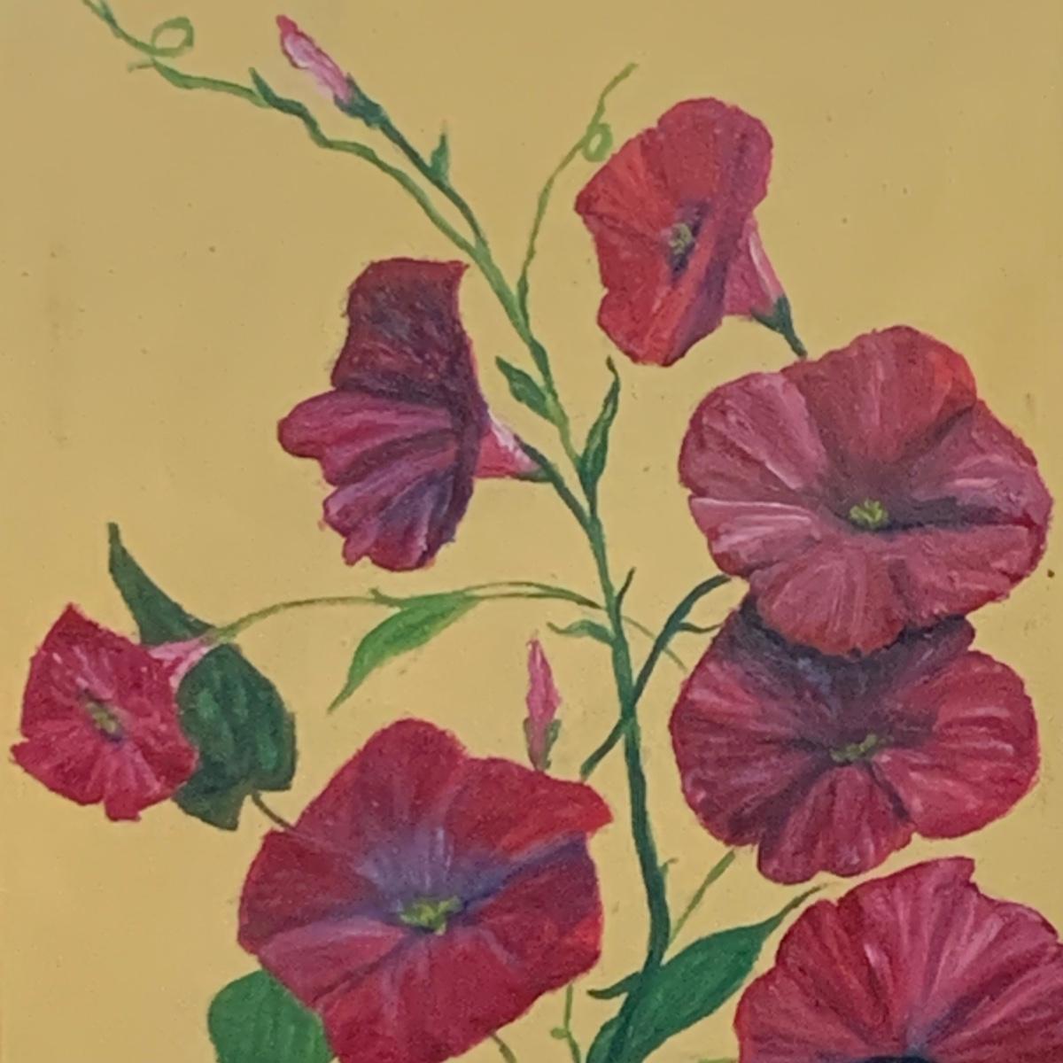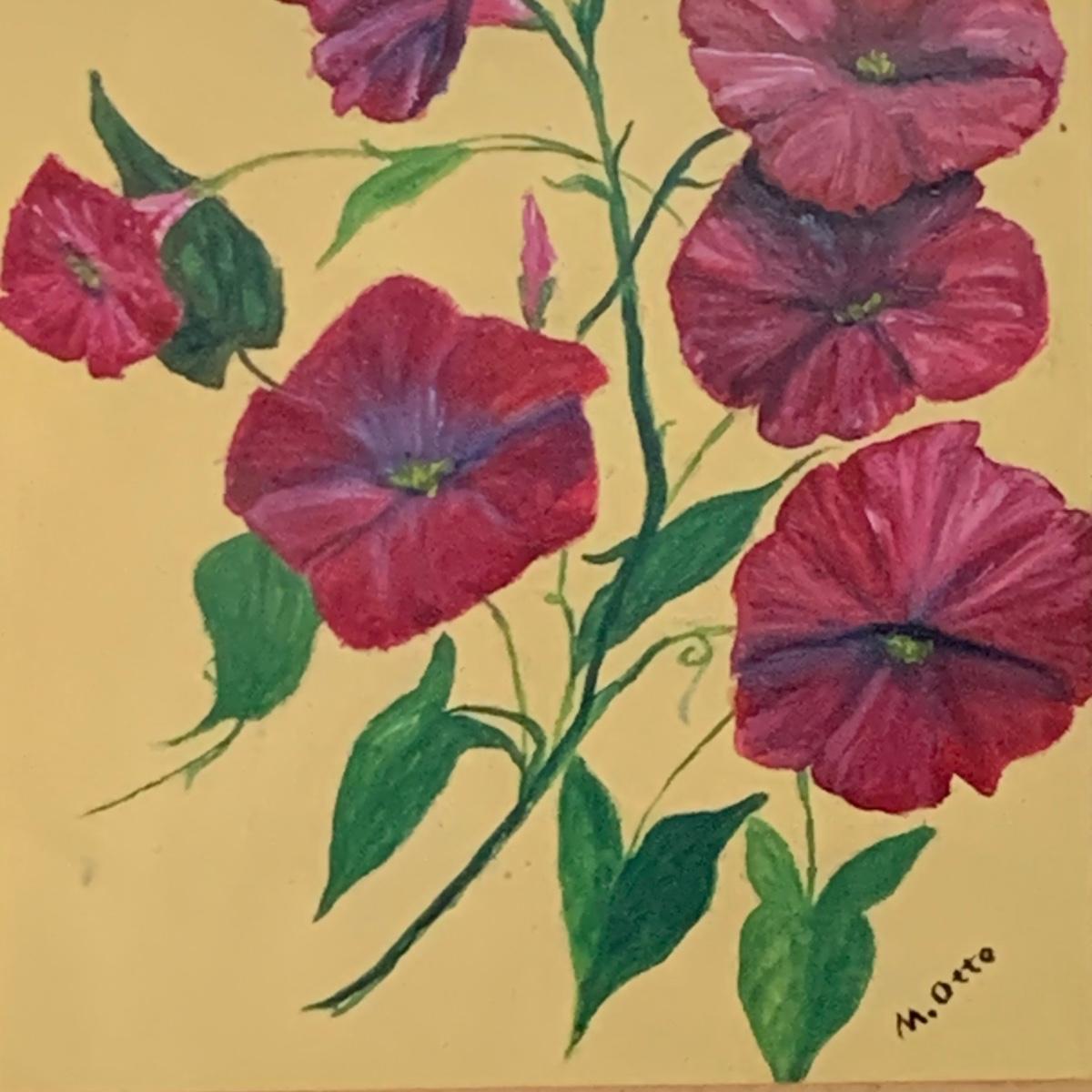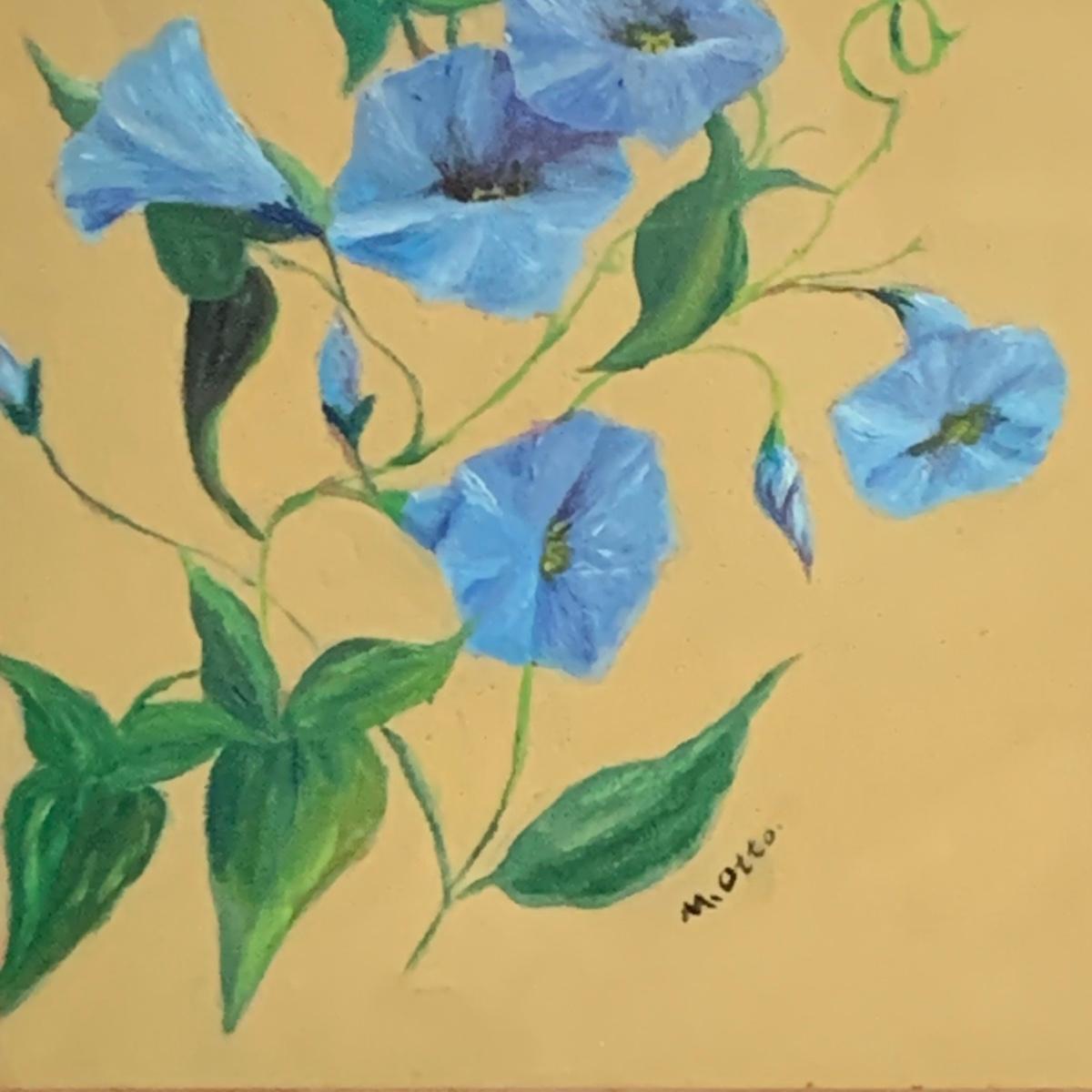LOT 159: Hobnail Milk Glass Lamps, Portrait of Women Historical Art Print & Signed "Morning Glory" Painting, M. Otto