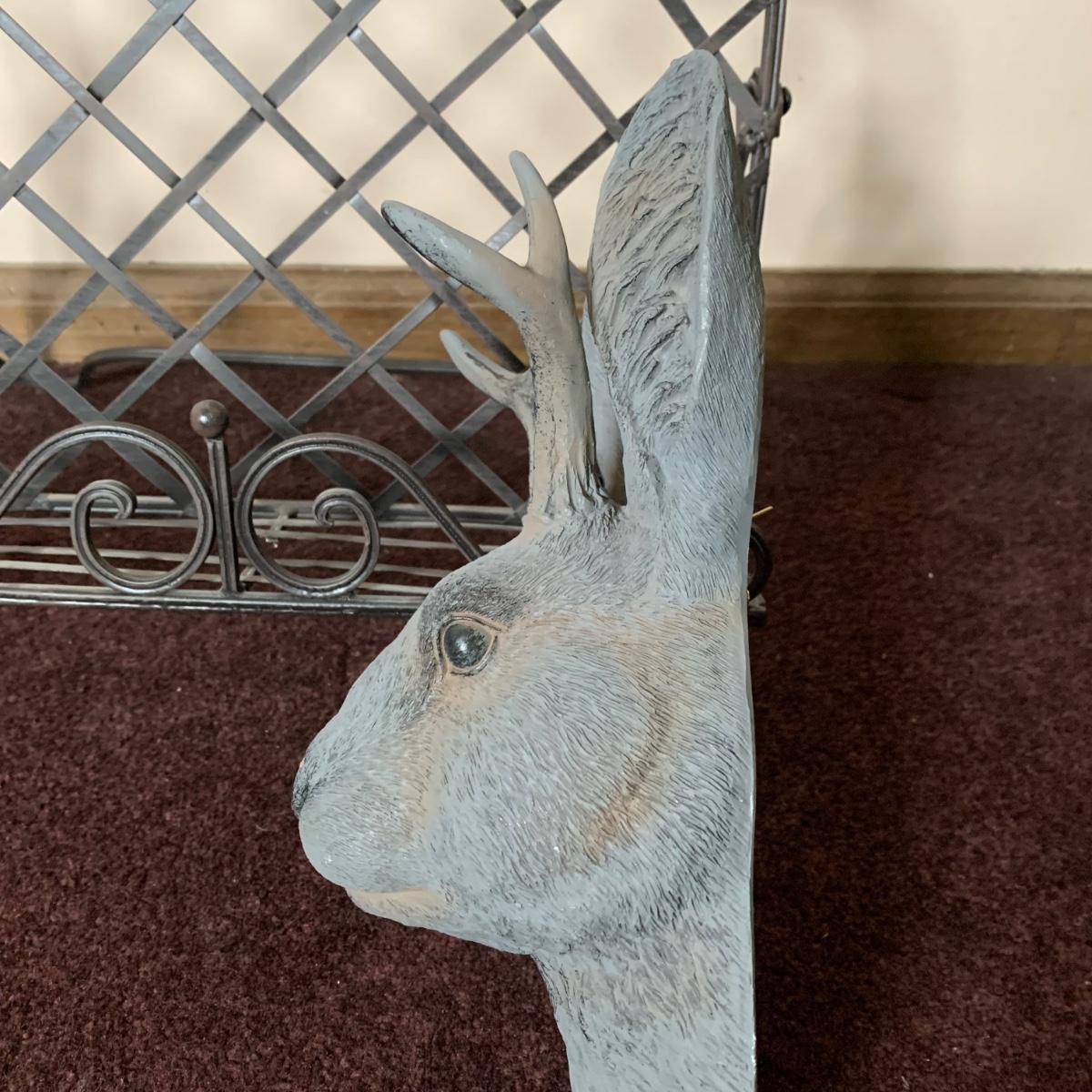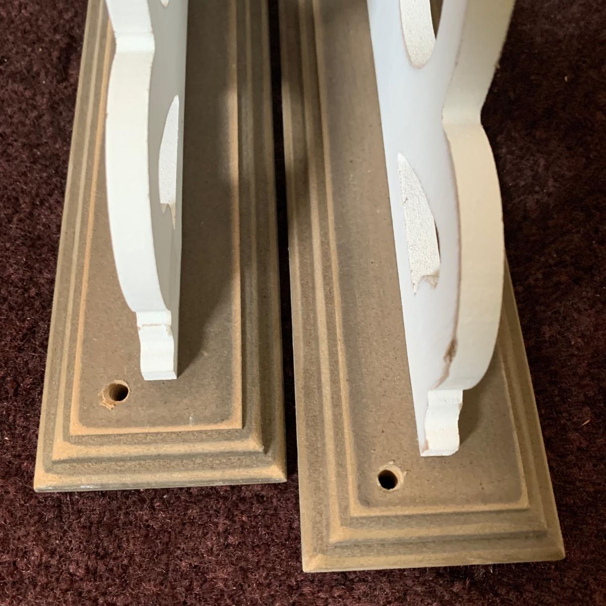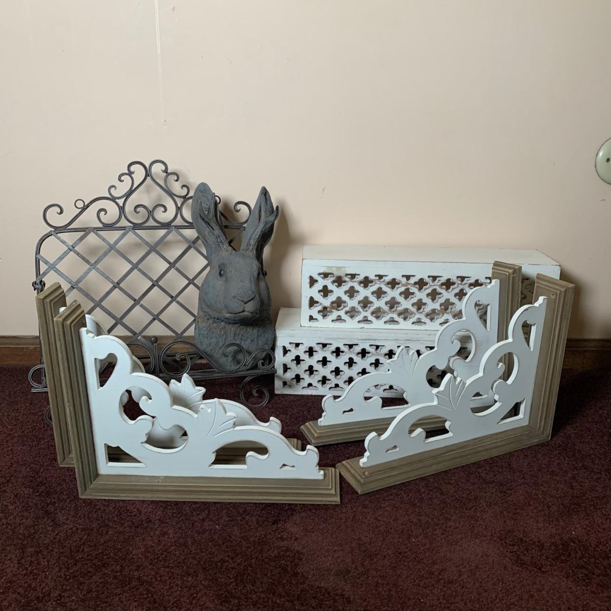 LOT 162: Home Decor: Resin Jackalope, Farmhouse Corbels, White Farmhouse Shelves, Metal Book Stand