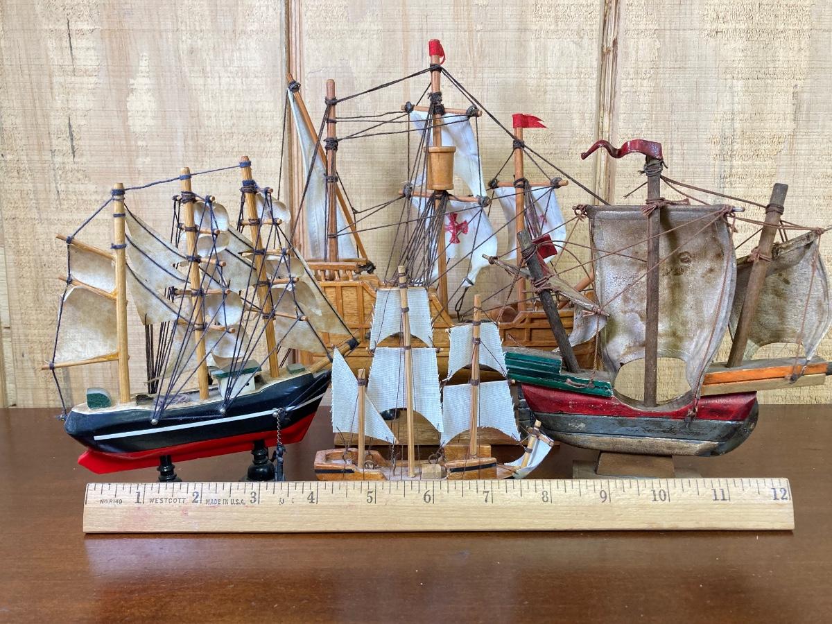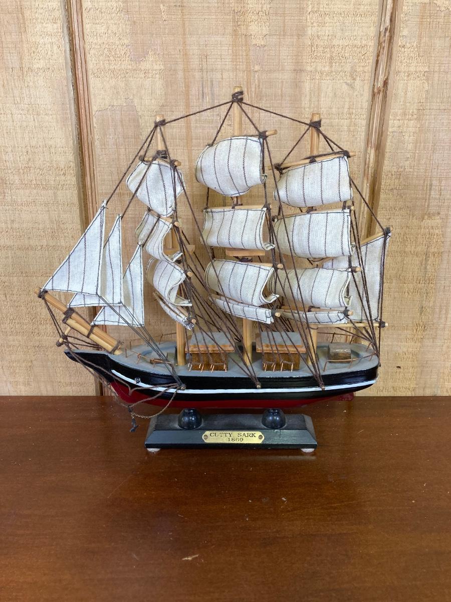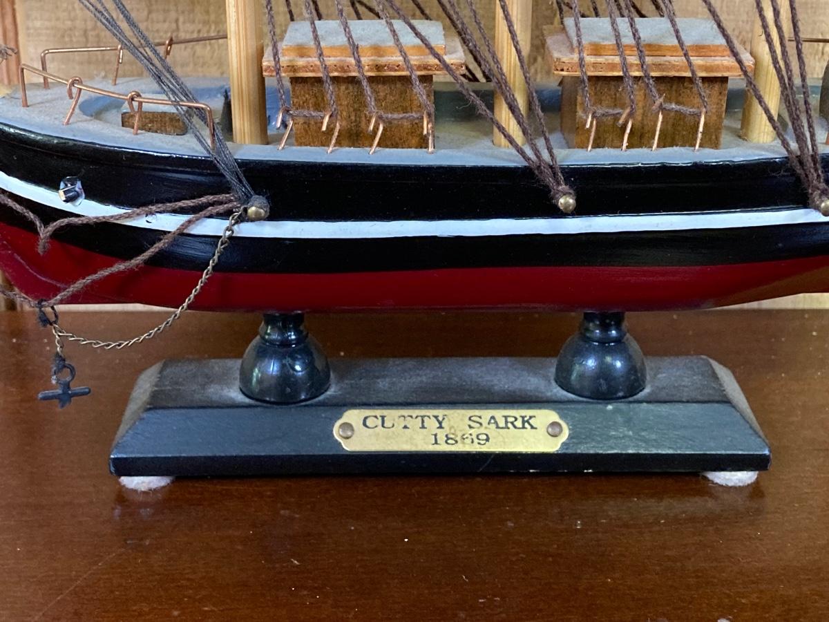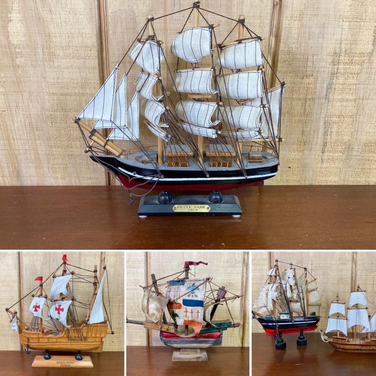 LOT 166: Five Vintage Wooden Model Sailboats / Ships - Cutty Sark 1869, Drake and More