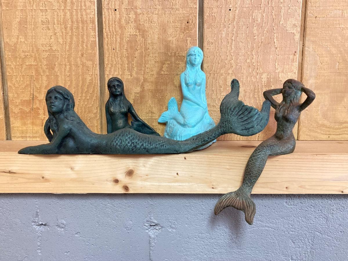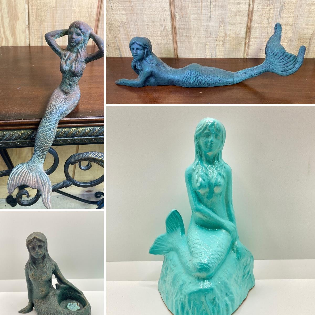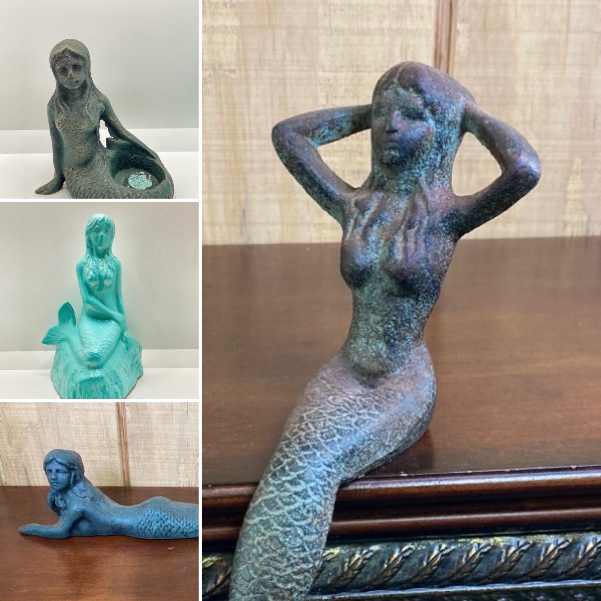 LOT 172: Decorative Mermaid Figurine Collection - Cast Iron, Painted, Shelf Sitter, Ring Holder and More