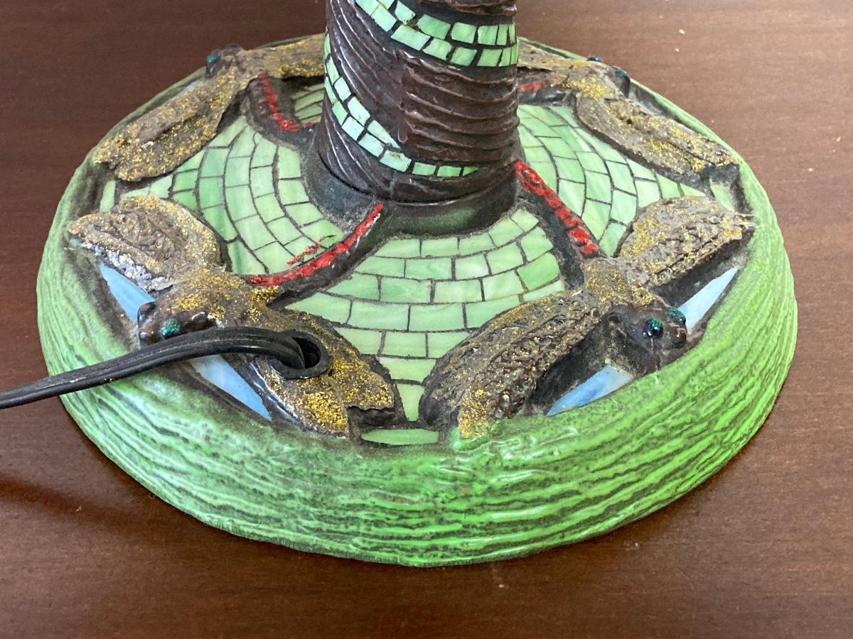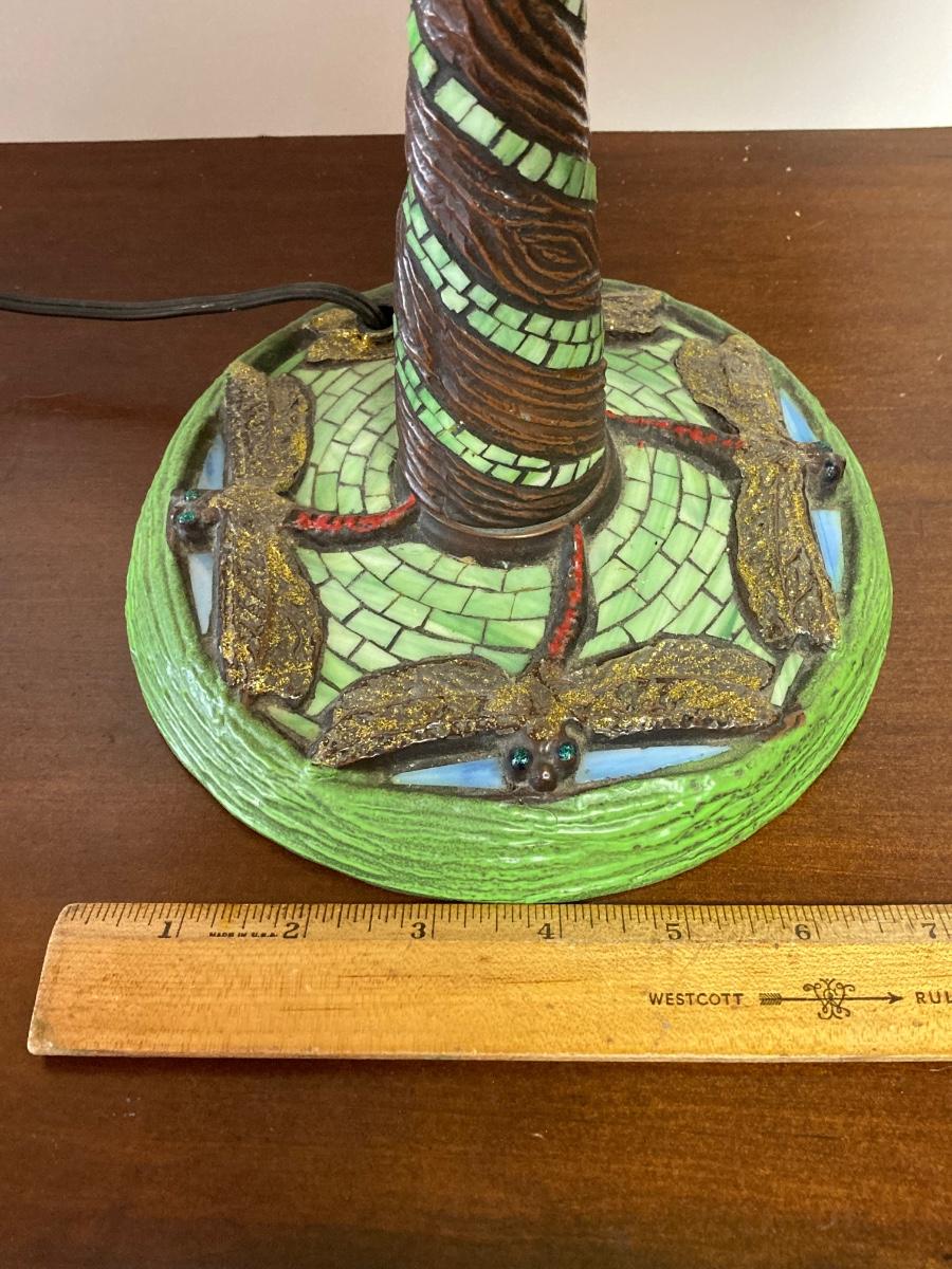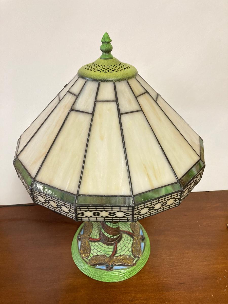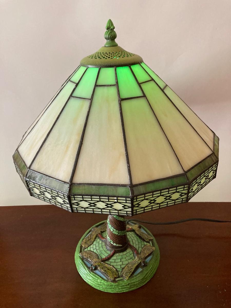 LOT 174: Dragonfly Stained Glass Painted Spectrum Lamp with Green Bulb