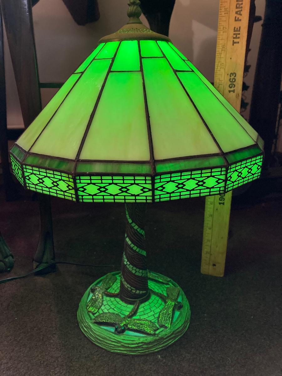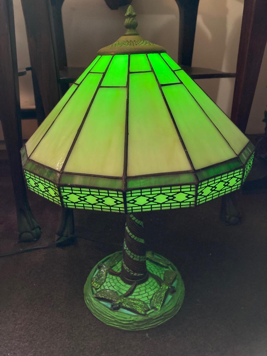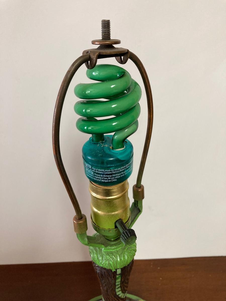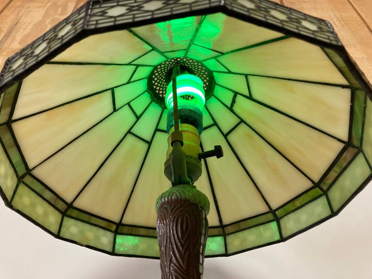LOT 174: Dragonfly Stained Glass Painted Spectrum Lamp with Green Bulb
