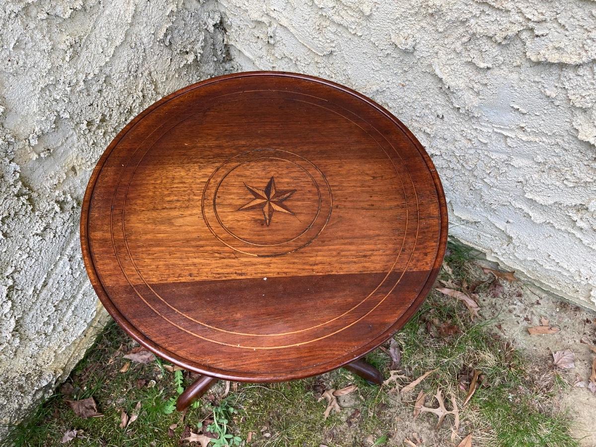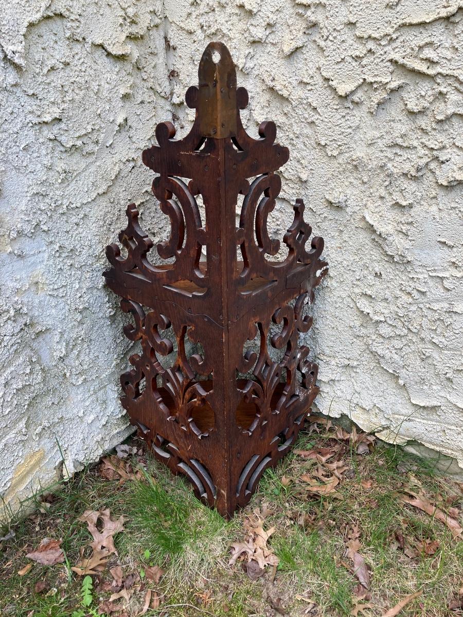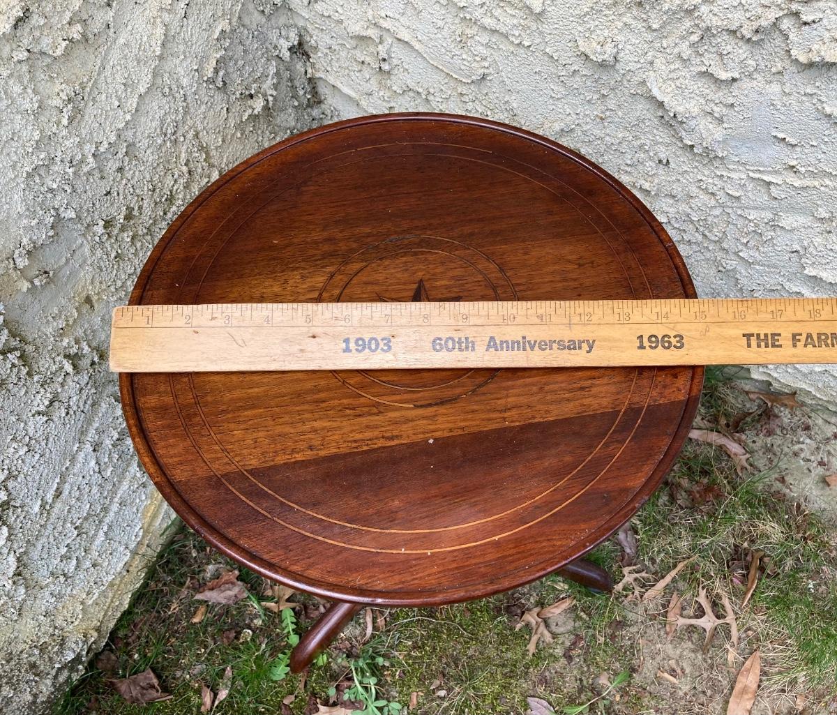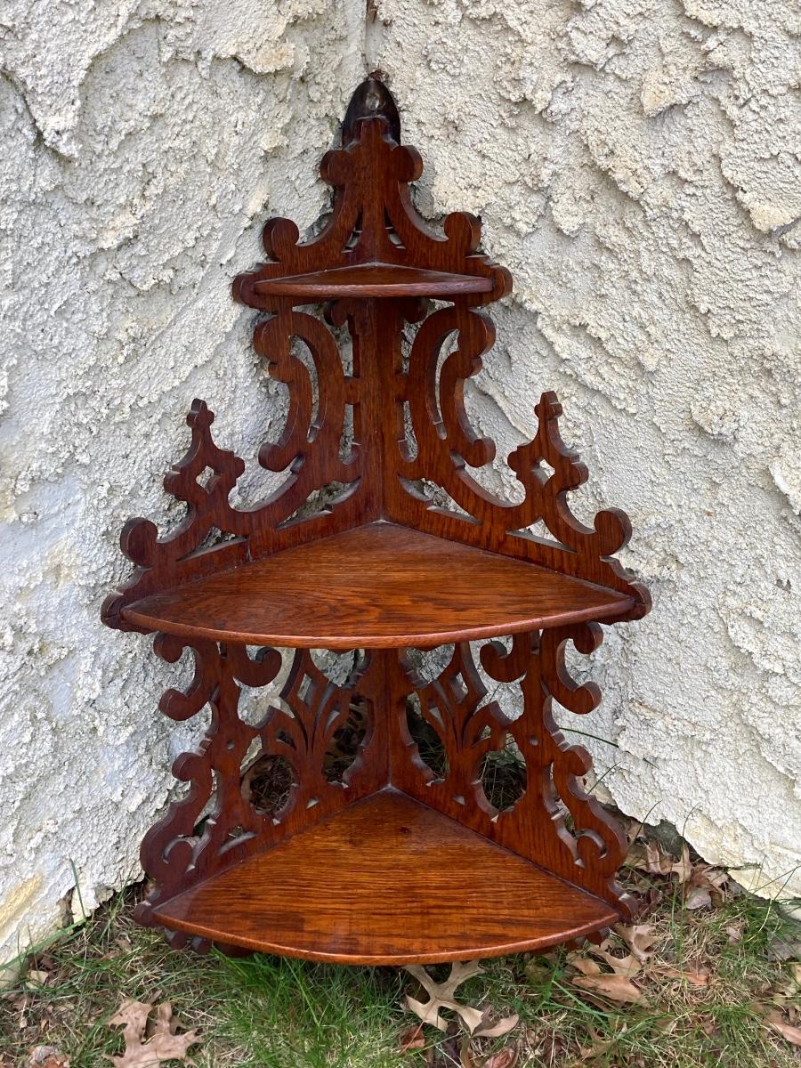 LOT 177: Vintage Floral Hand Painted Wastebasket, Wood Round Table and Wood Corner Shelf