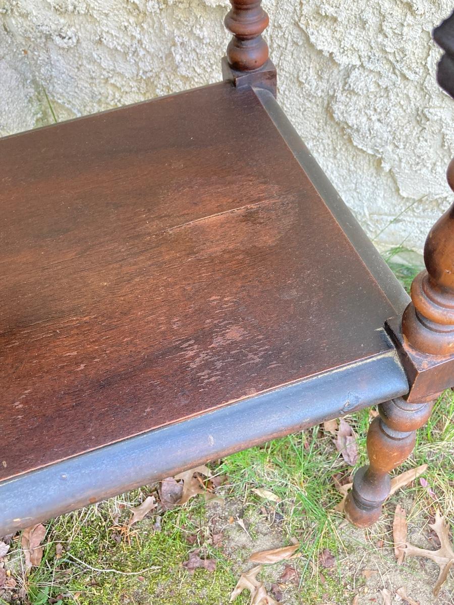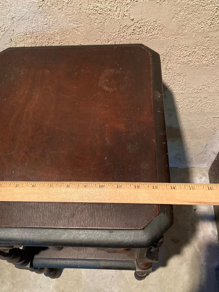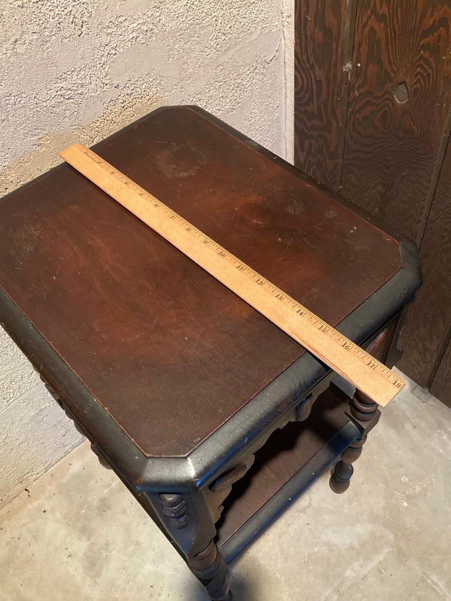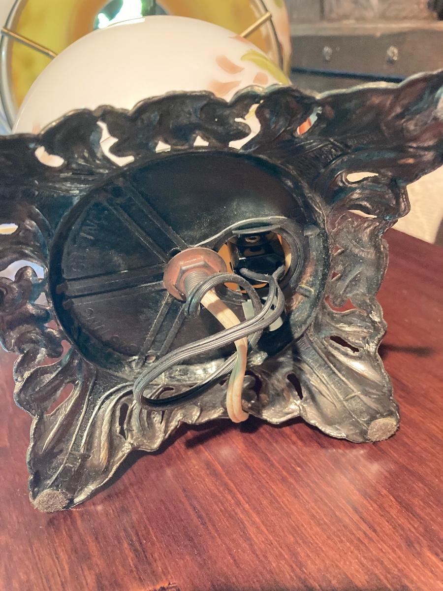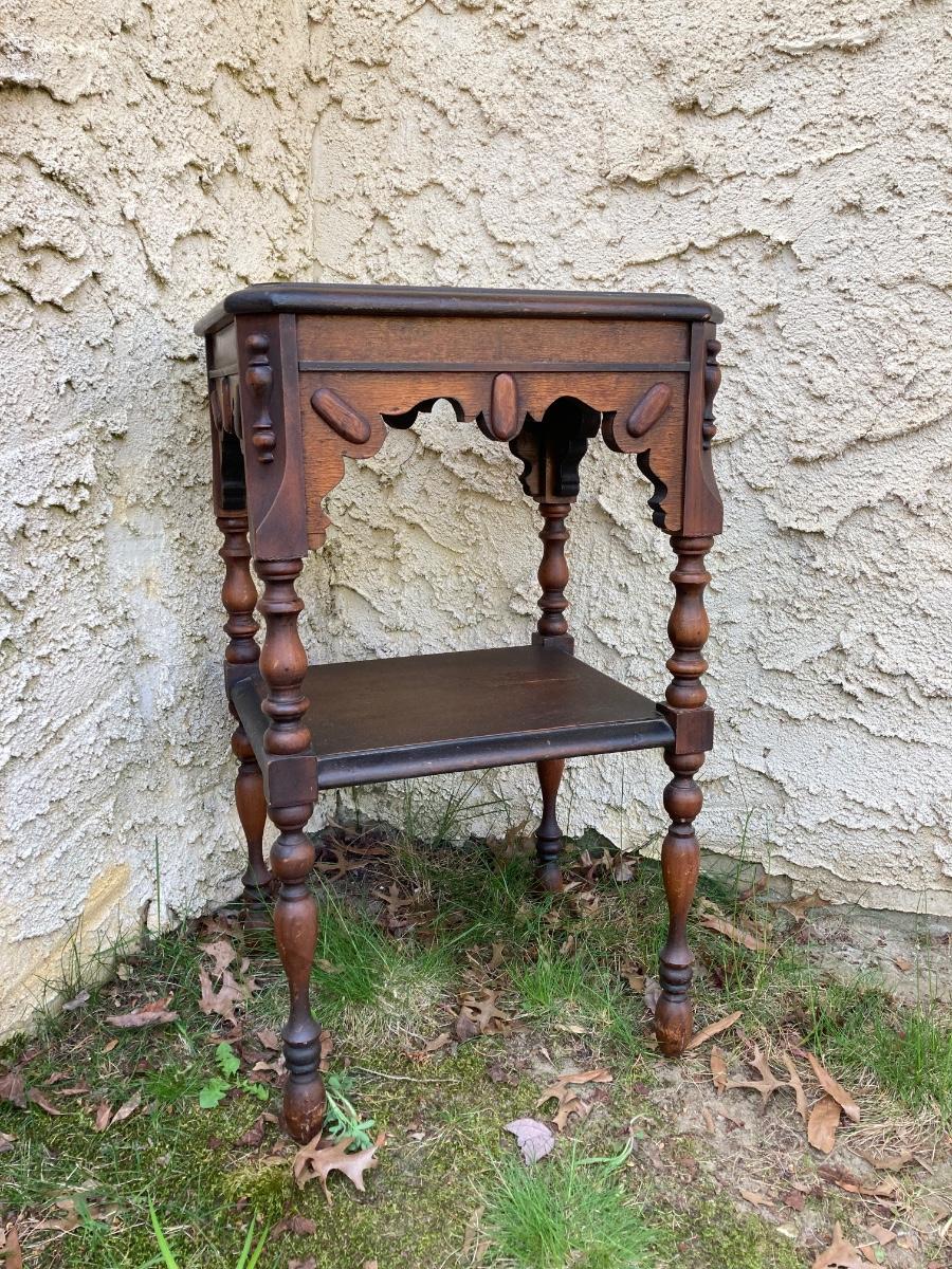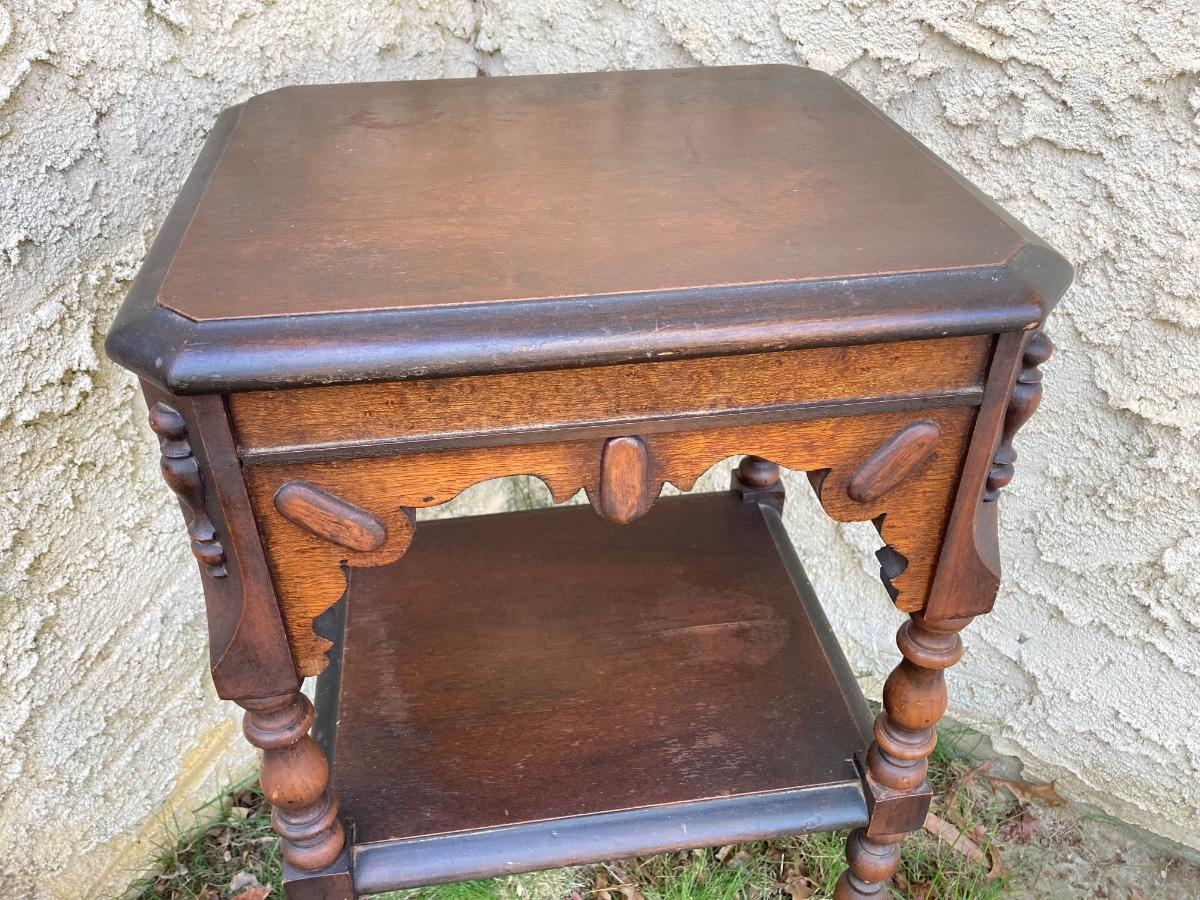 LOT 180: Vintage Hurricane Lamp and Wooden Side Table