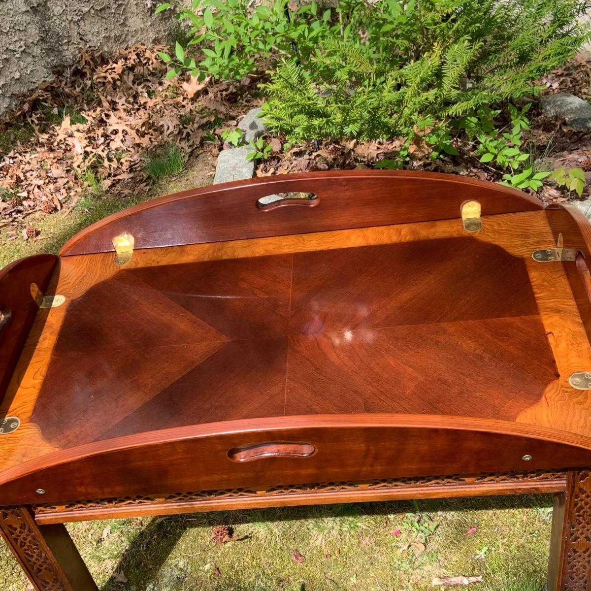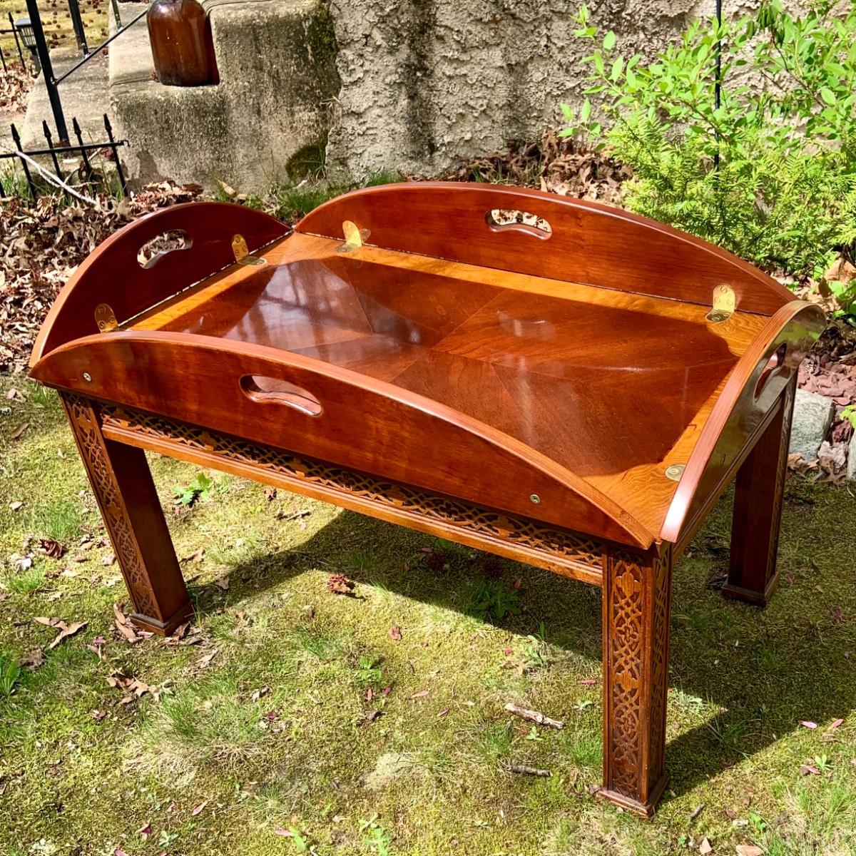 LOT 193: Beautiful Wooden Butlers Table with Carved Legs.