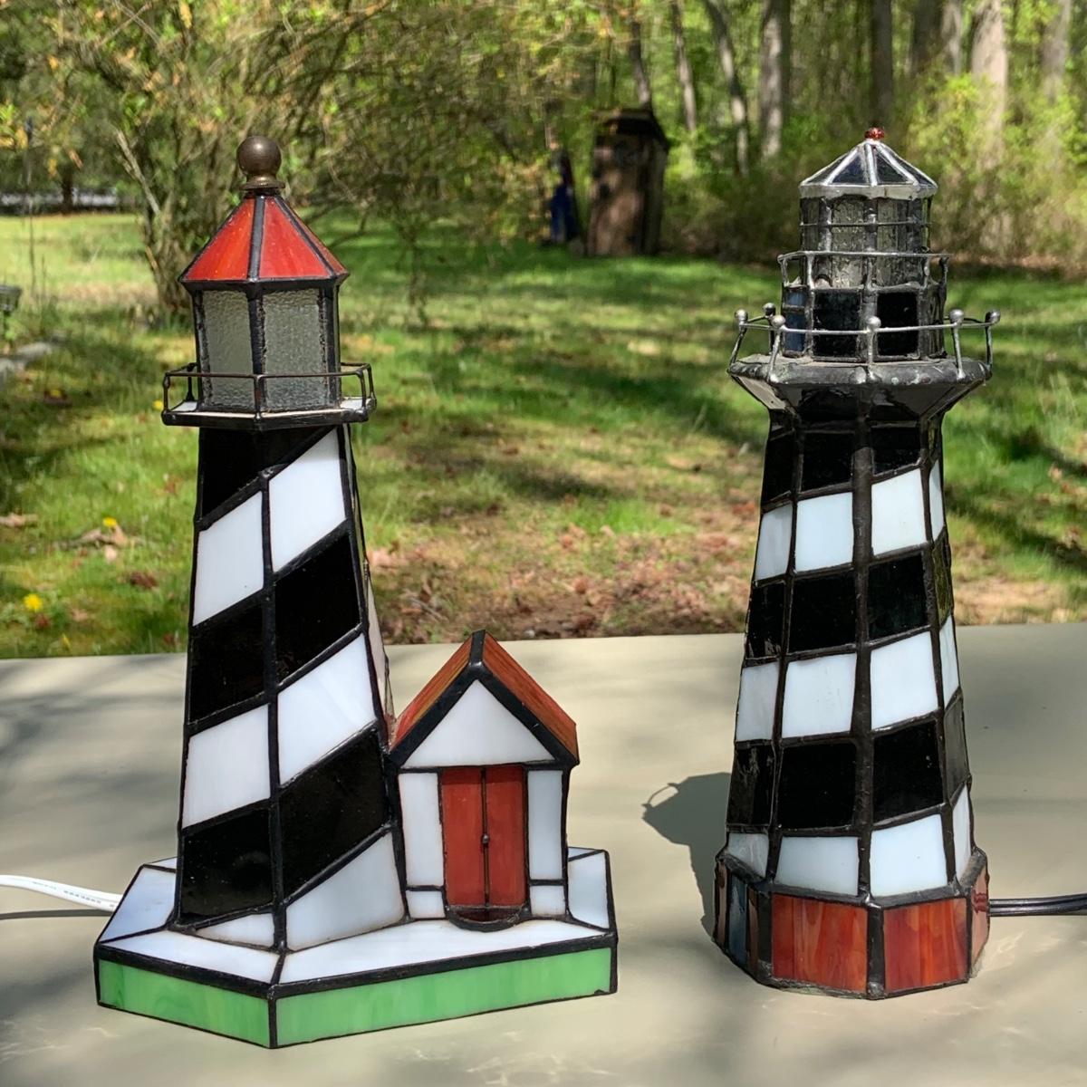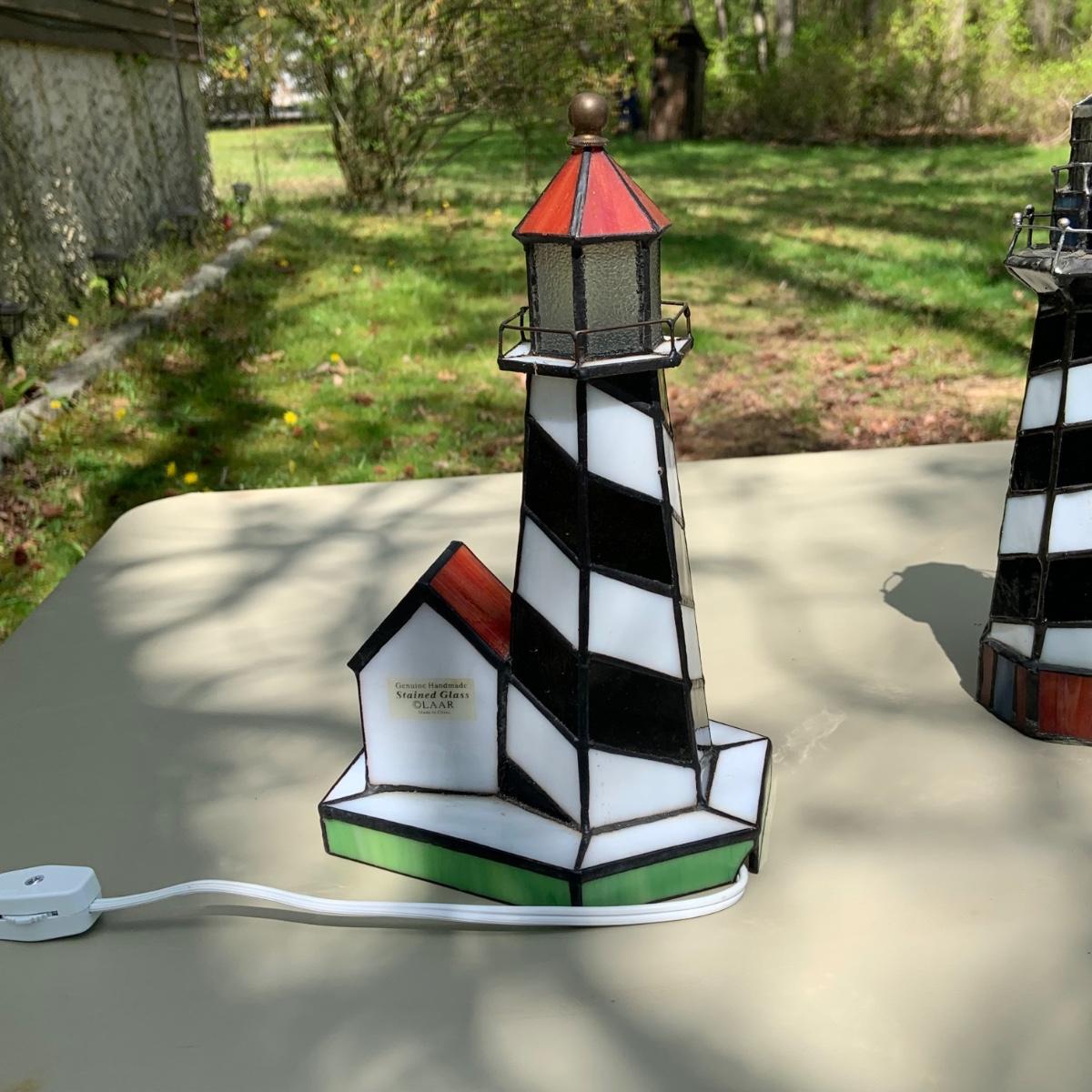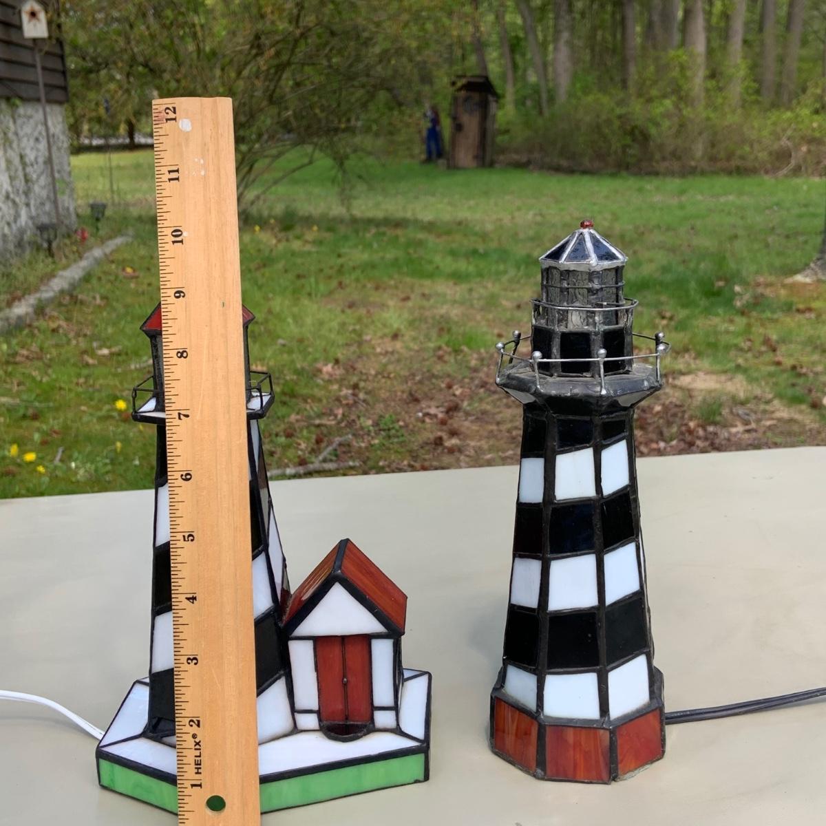 LOT 194: Set of 2 Stained Glass Light House Lamps