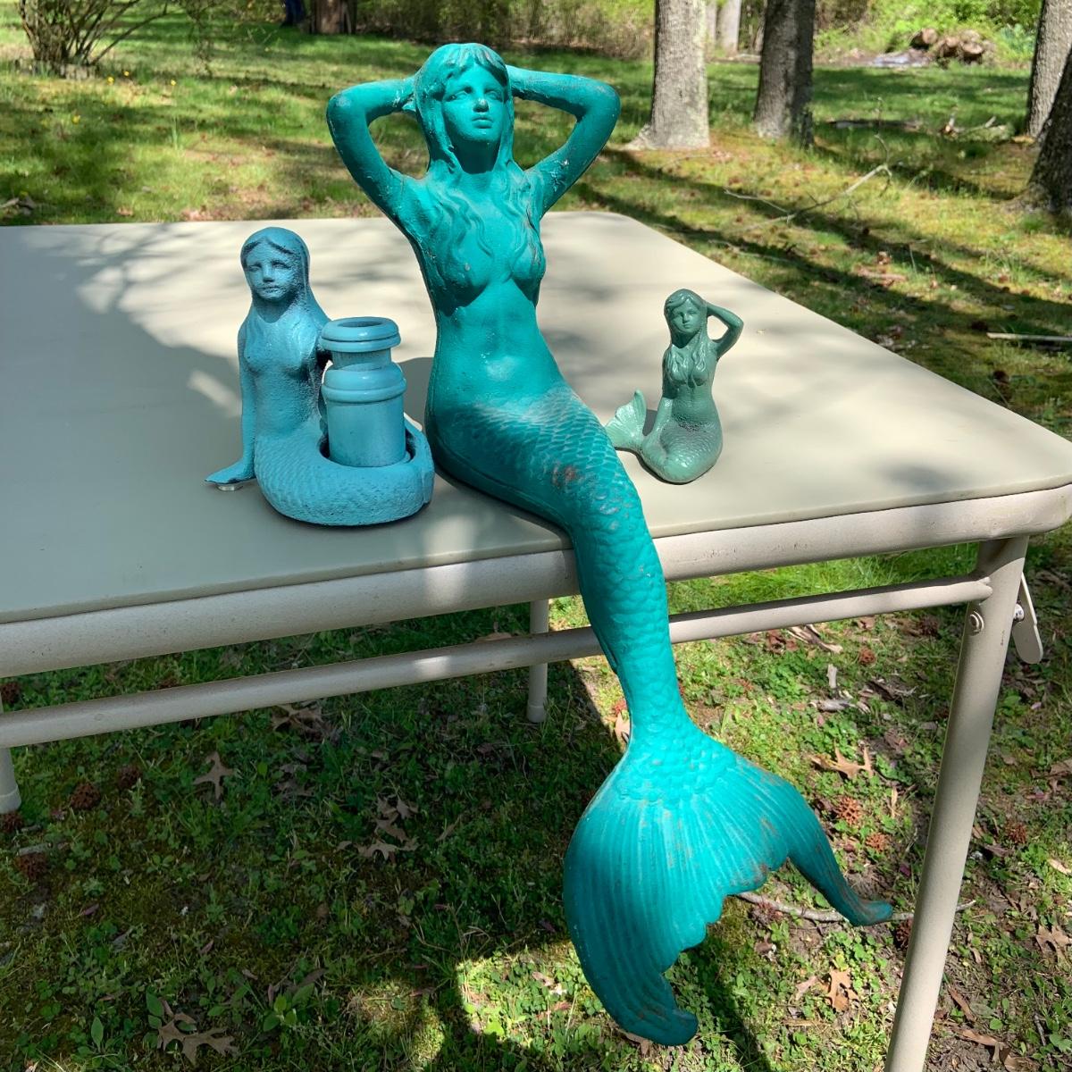 LOT 195: Vintage Painted Cast Iron Mermaids
