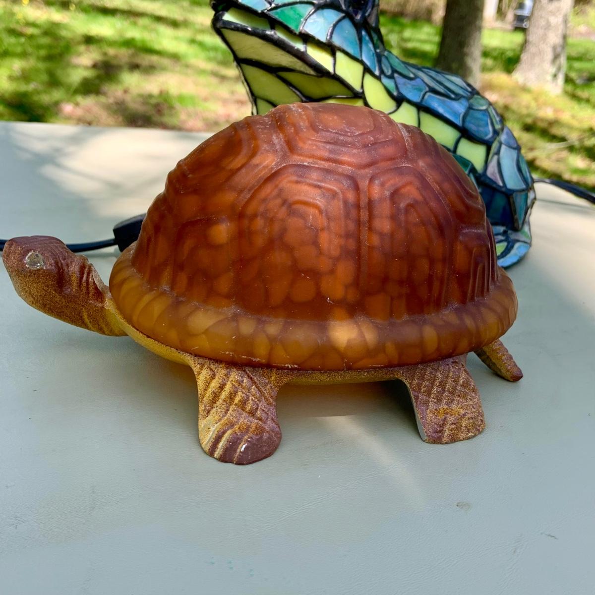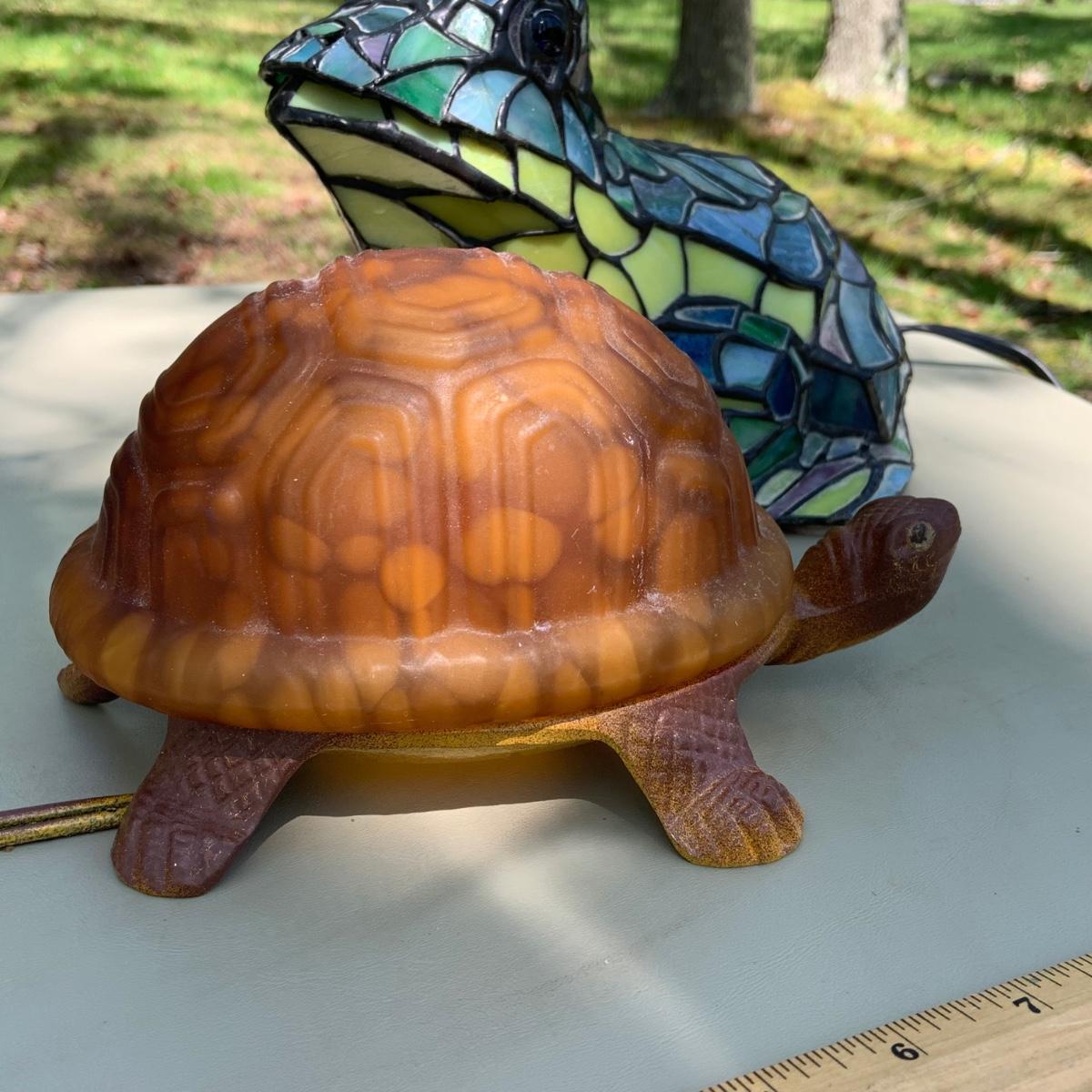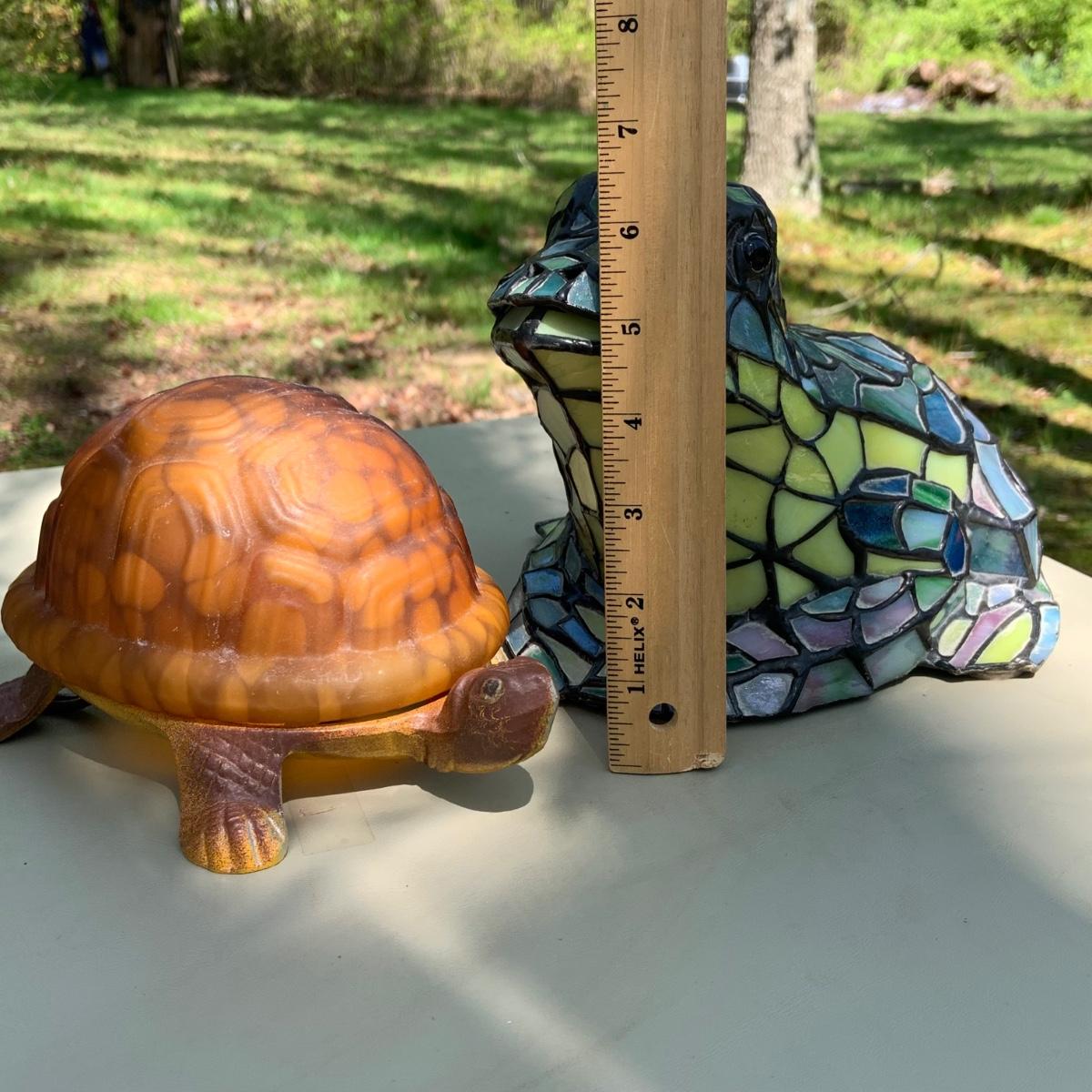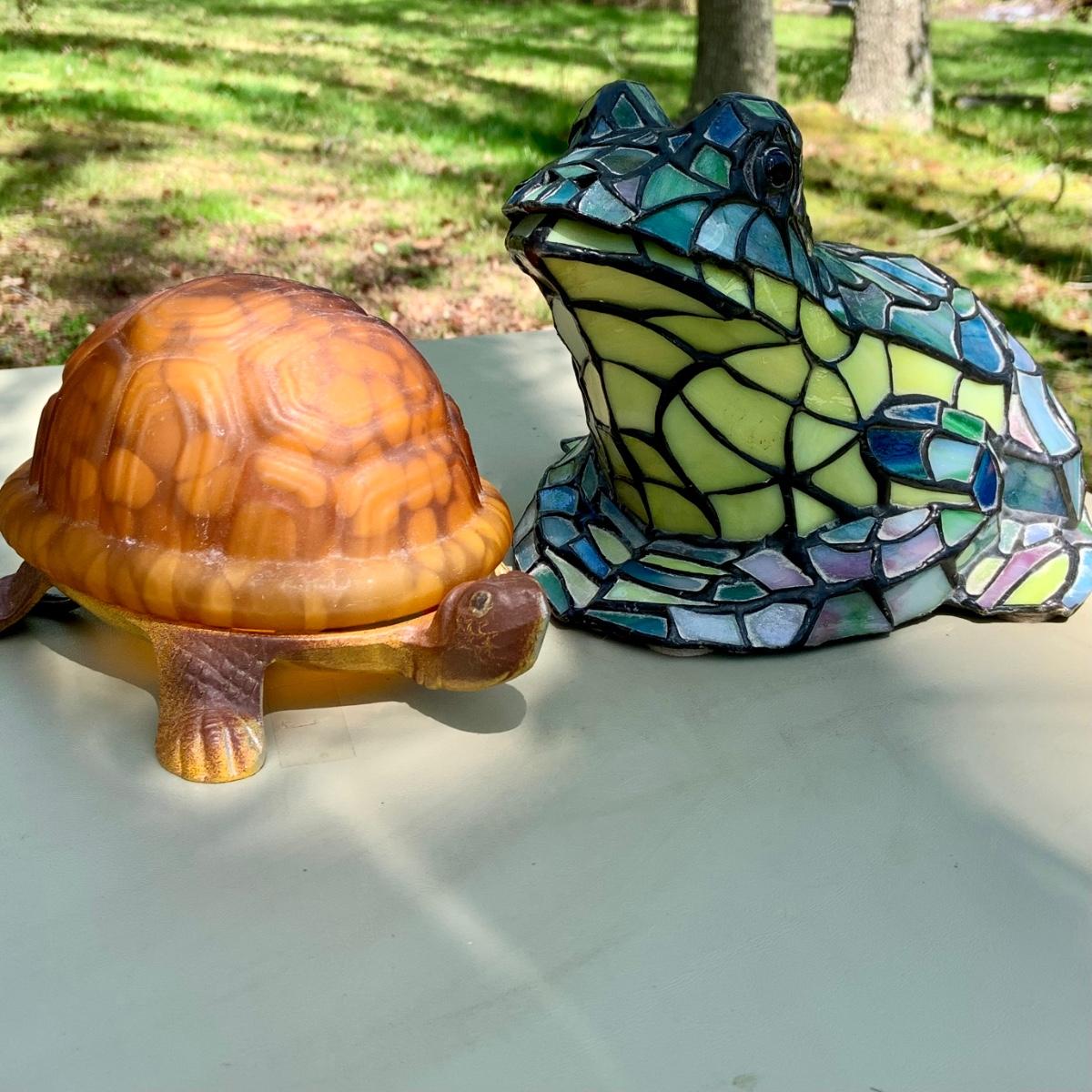 LOT 196: Stained Glass Frog and Glass Turtle Lamps