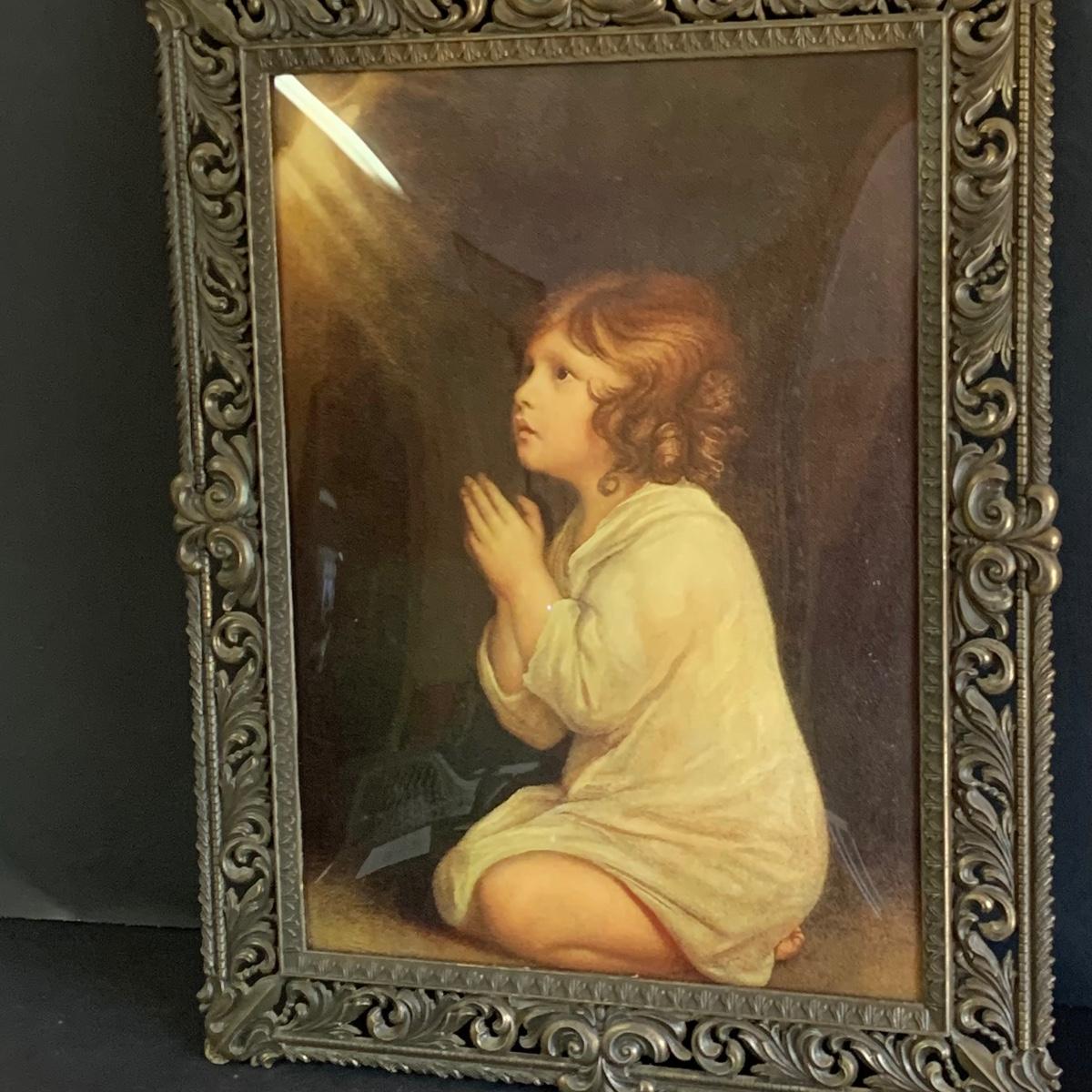 LOT 204: Beautiful Antique Wall Art Ornately Framed with Convex Glass