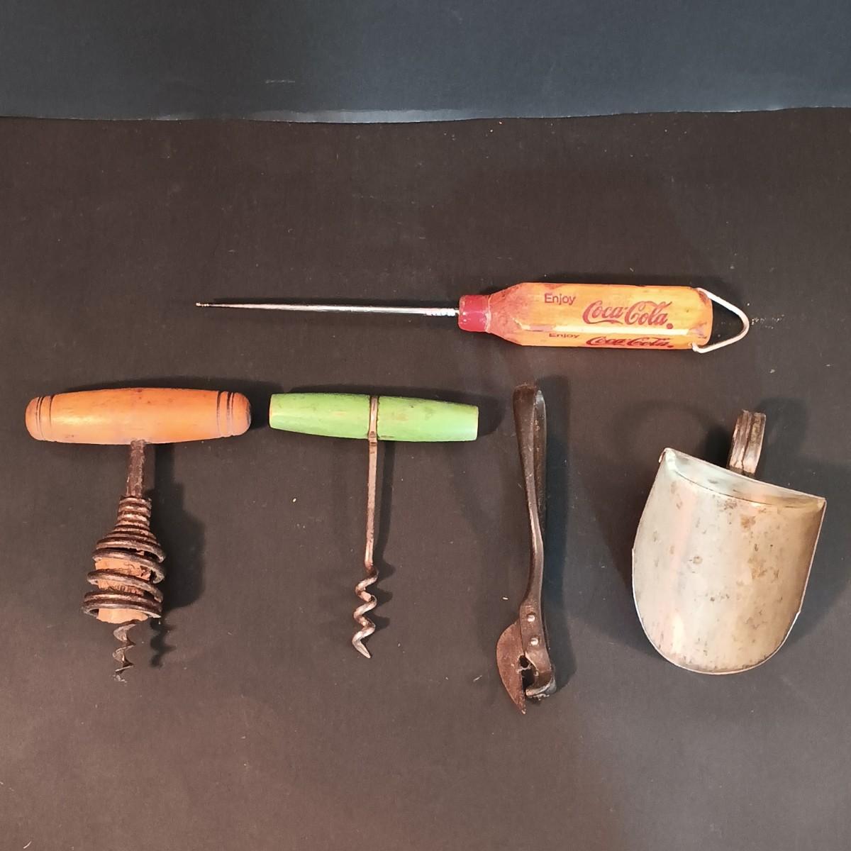 LOT 217: Vintage Country Collection: Cheese Boxes, Cutlery, Cork Screws, Coco-Cola Ice Pick, Ironstone, Bottle Openers & More