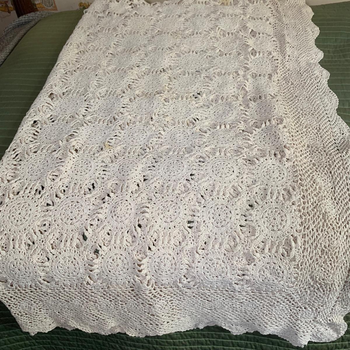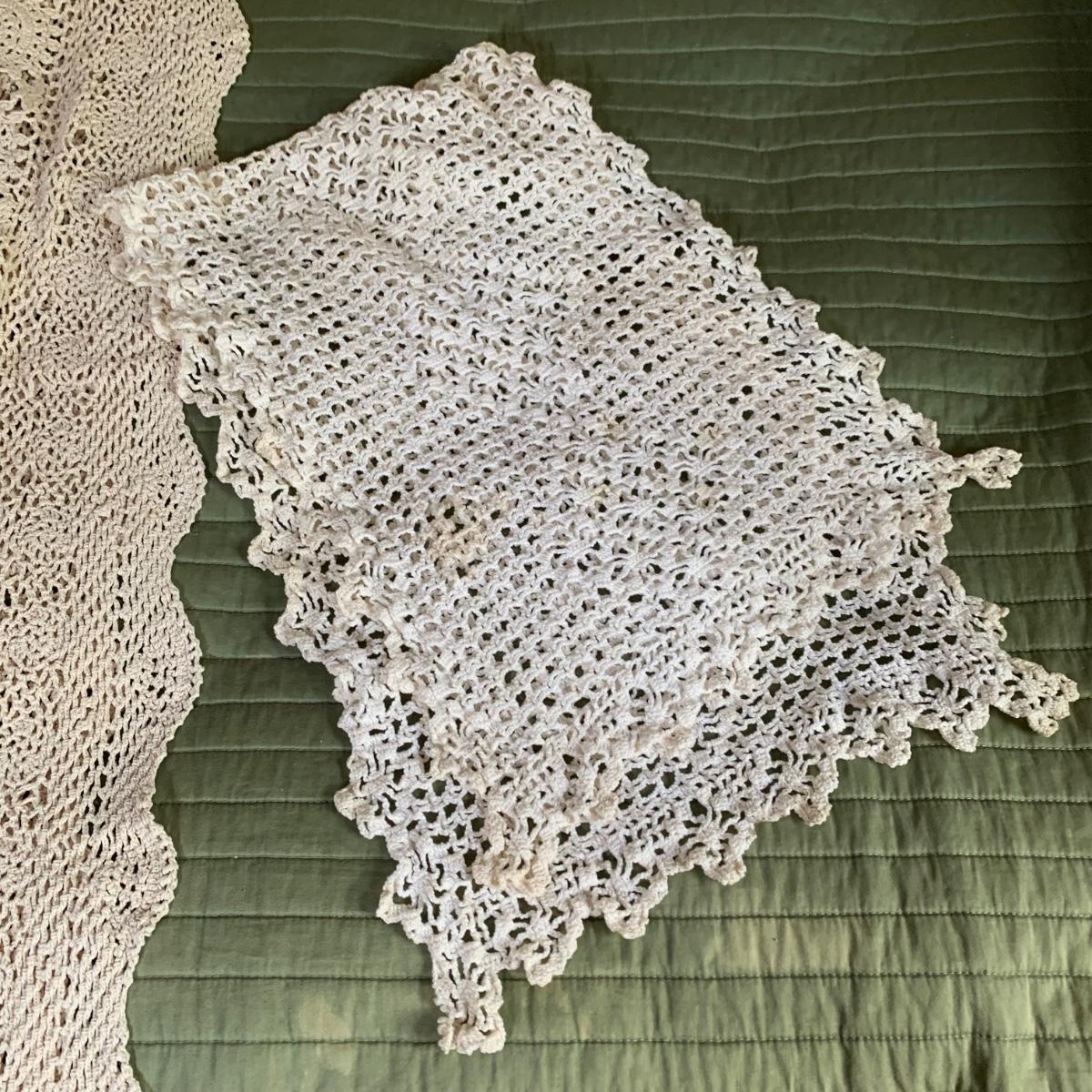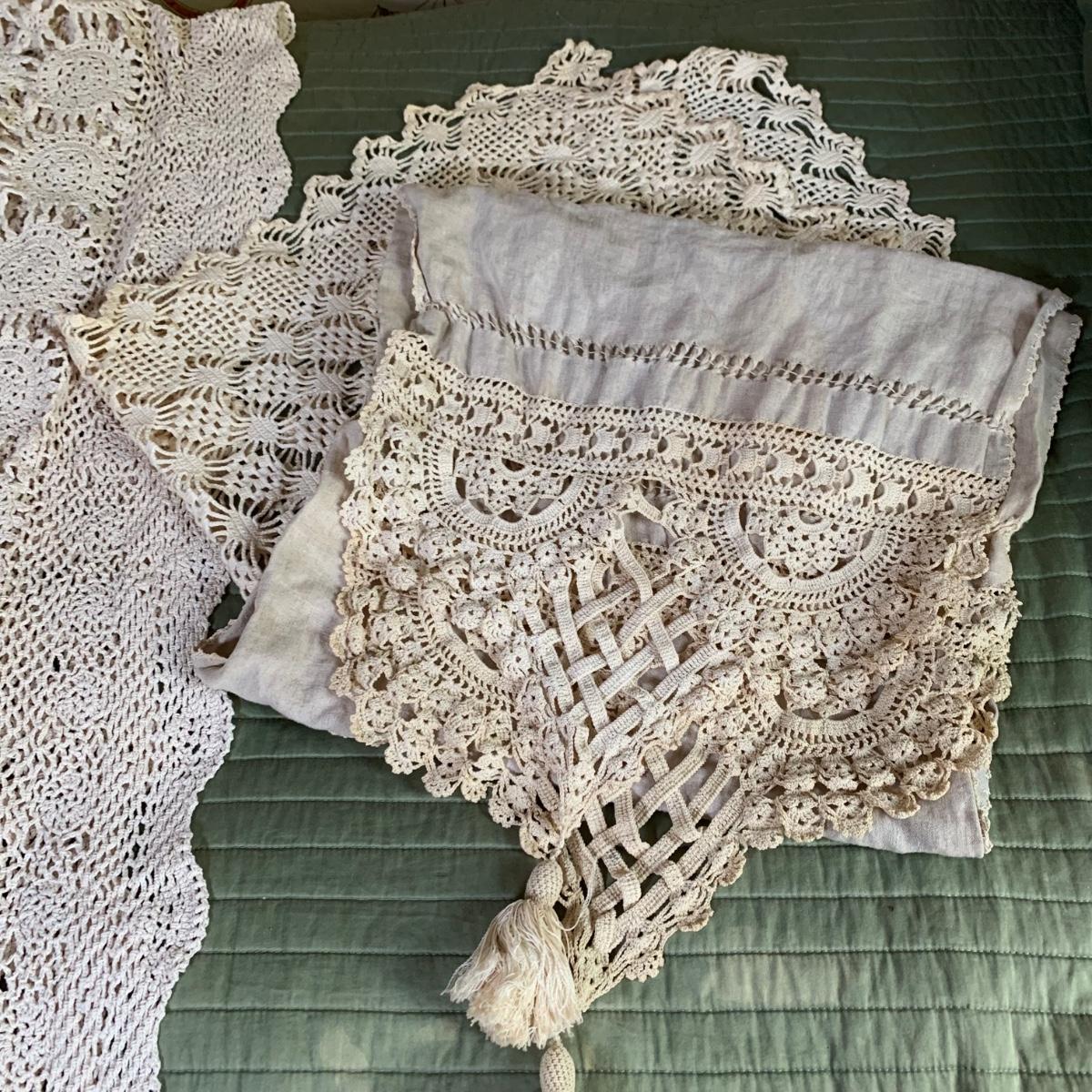 LOT 249: Crocheted Collection: Doilies & Tablecloth
