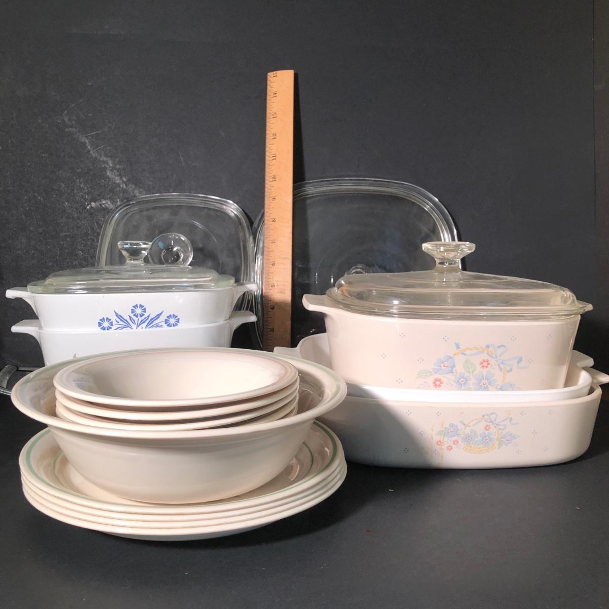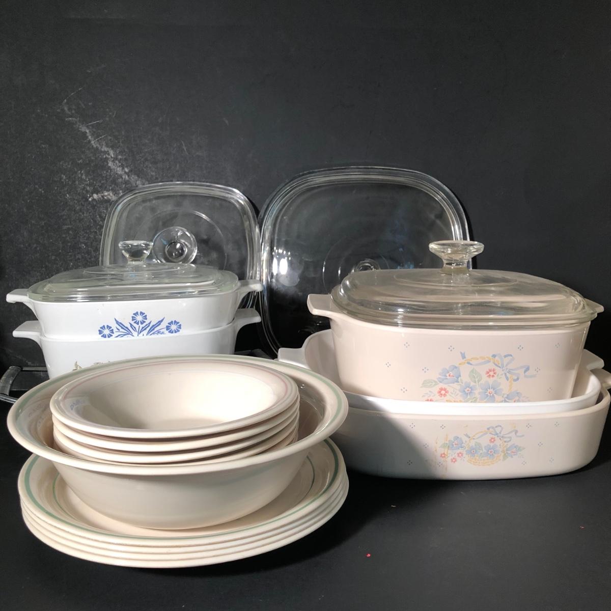 LOT 5K: Vintage Corning Ware Baking Dishes & Corelle Cornerstone Plates / Bowls