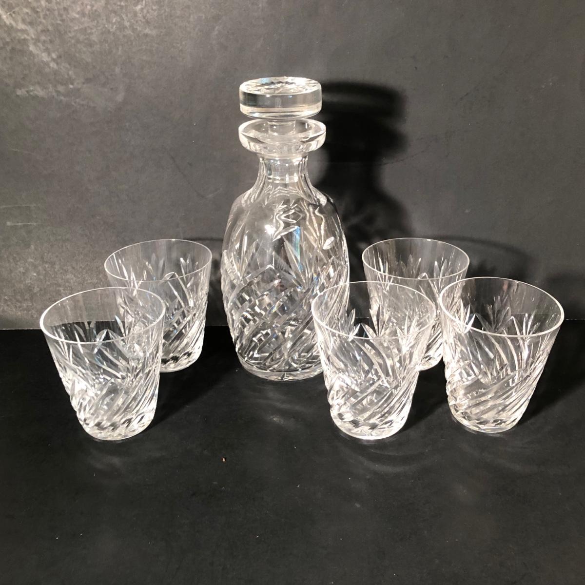 LOT 6K: Waterford Crystal Whiskey Decanter w/ 5 Crystal Cups