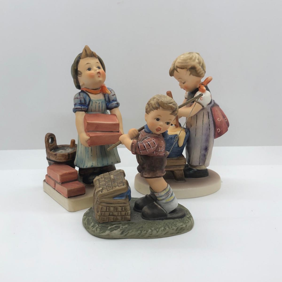 LOT 19K: Vintage Goebel Hummel Figurines - The Builder, Baking Day & Fishing for Trouble