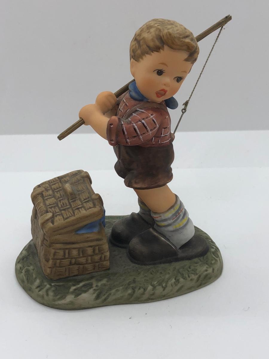 Fishing figurine is Berta Hummel and the other two are MI Hummel.