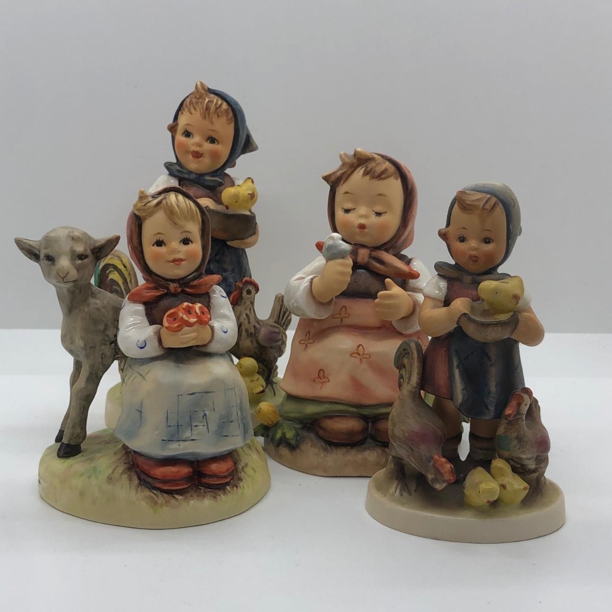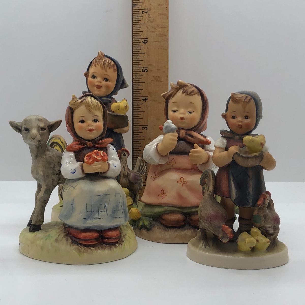 LOT 21K: Vintage Goebel MI Hummel Figurines - Feeding Time, Make A Wish & Good Friends