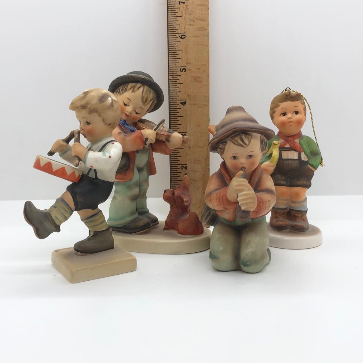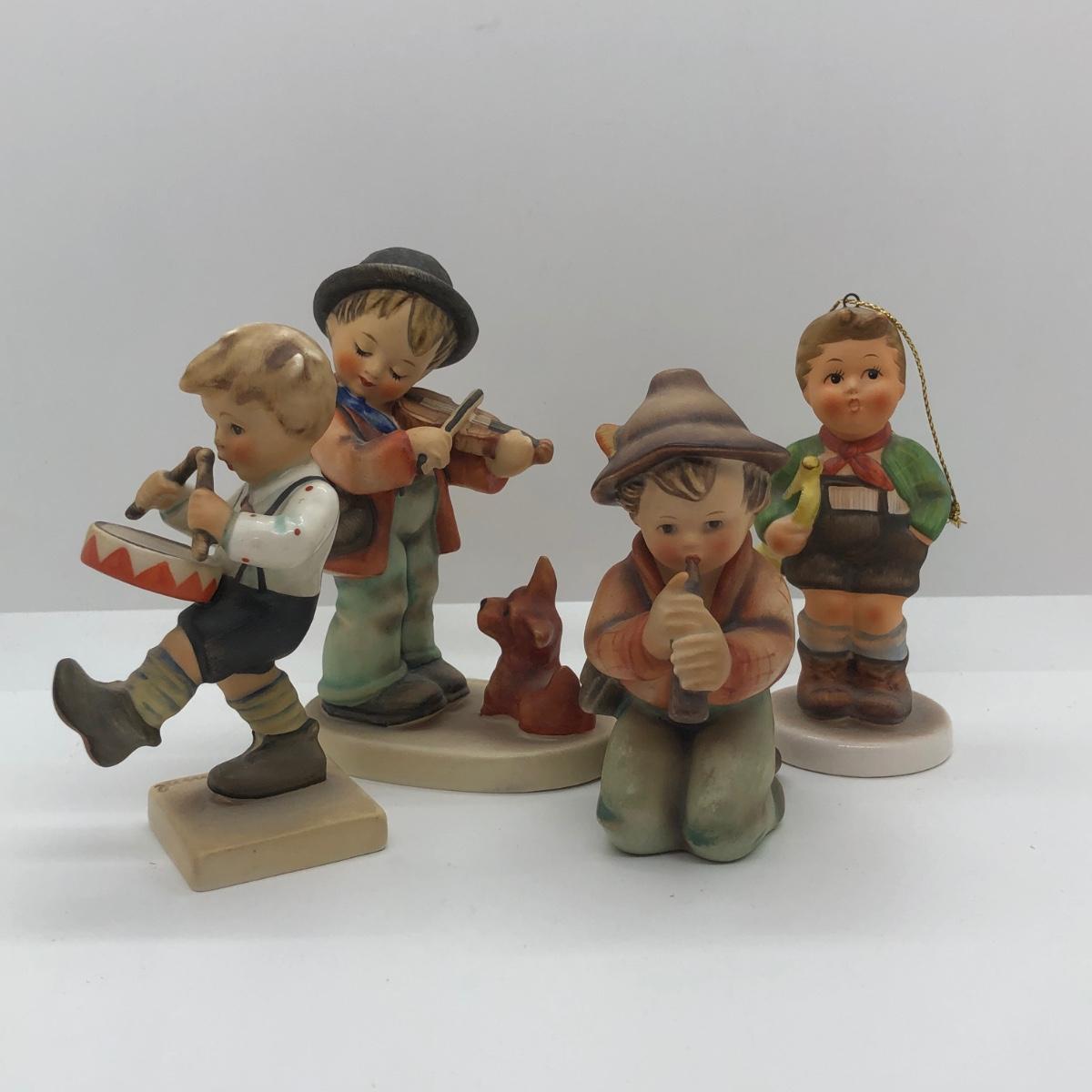 LOT 25K: Vintage Goebel MI Hummel Figurines & Schmid - Puppy Love, Little Tooter, Little Drummer & Schmid Ornament