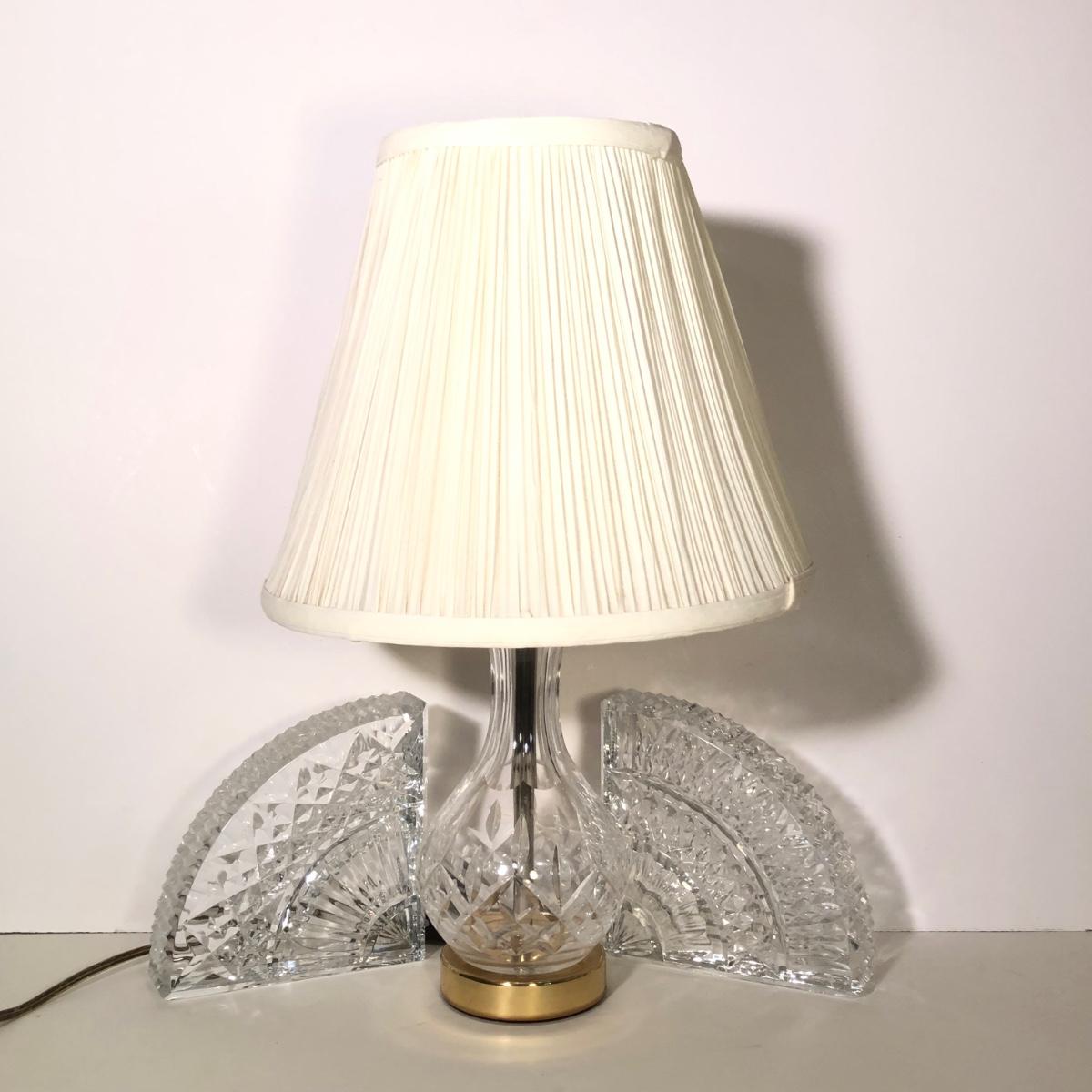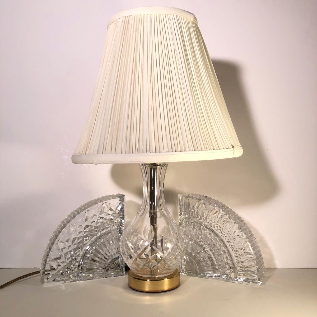 LOT 35G: Vintage Waterford Crystal Table Lamp & Signed 1998 John Connolly Waterford Crystal Bookends