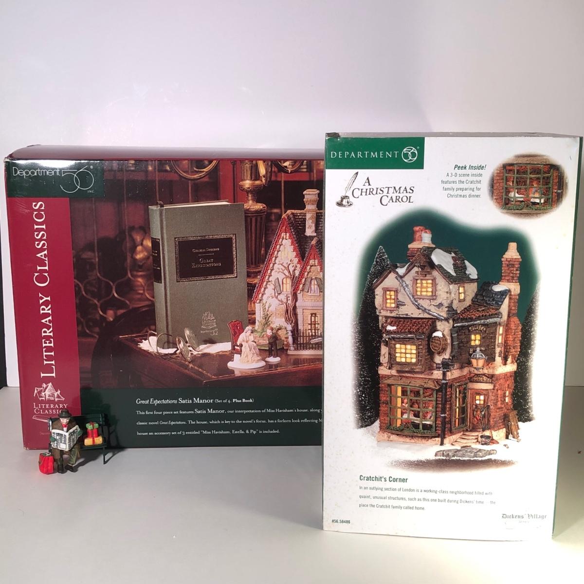 LOT 44G: Department 56 Dickens' Village Series w/ Boxes - 1998 Great Expectations Satis Manor #56.58310 (NO book) & 2001 Cratchit's Corner #56.58486