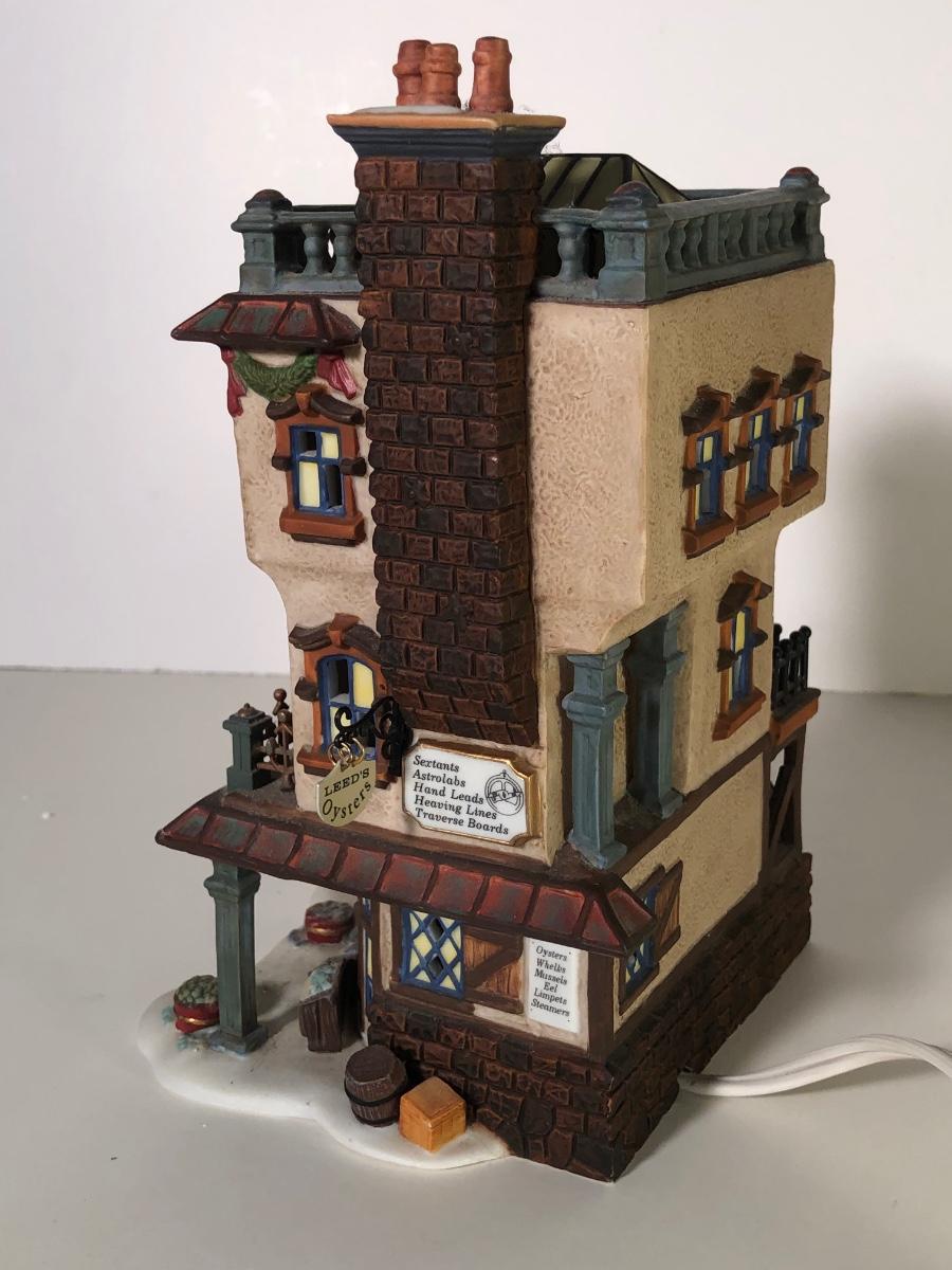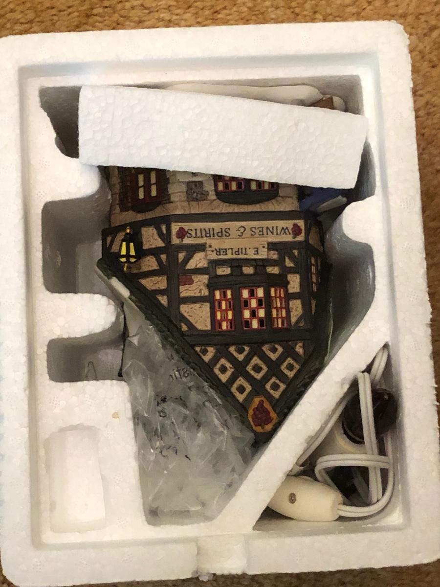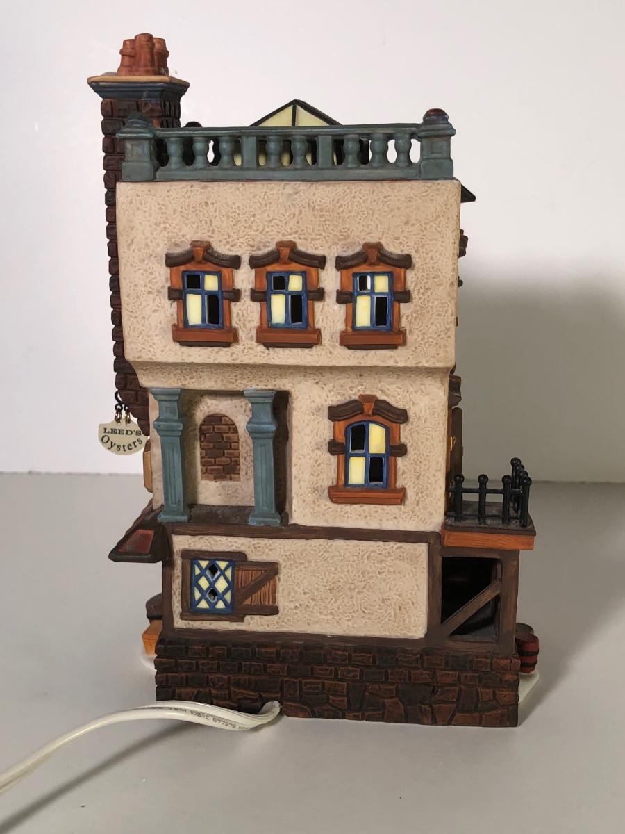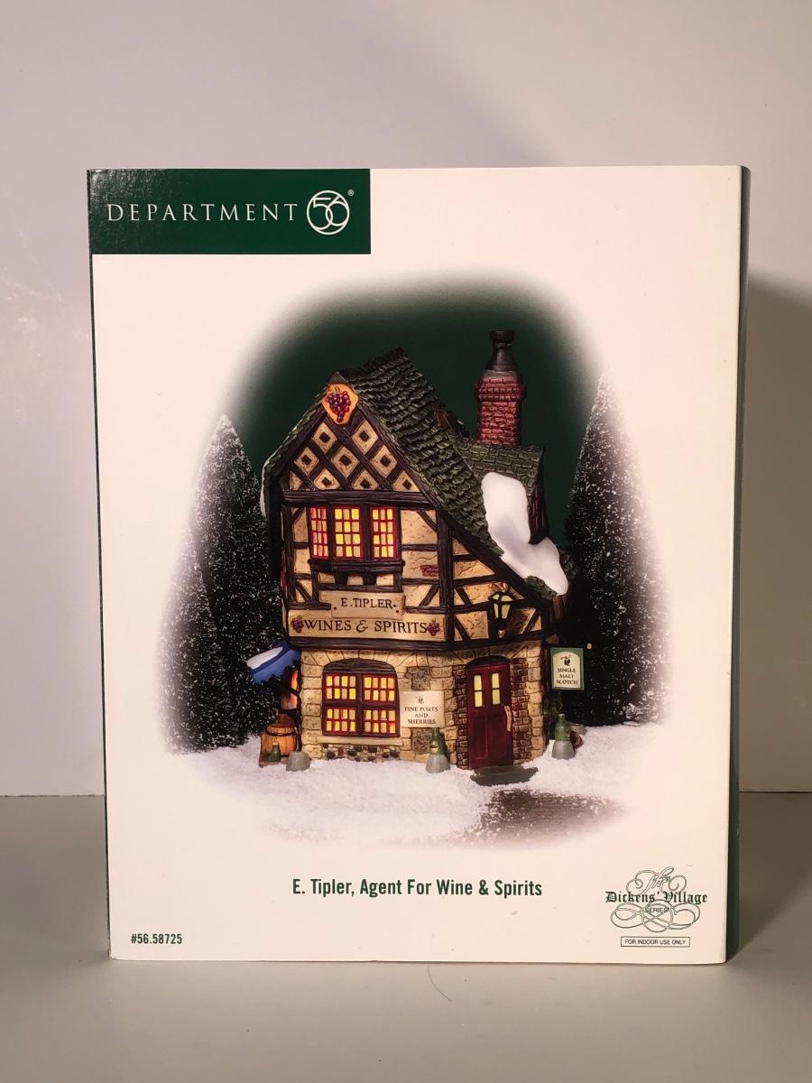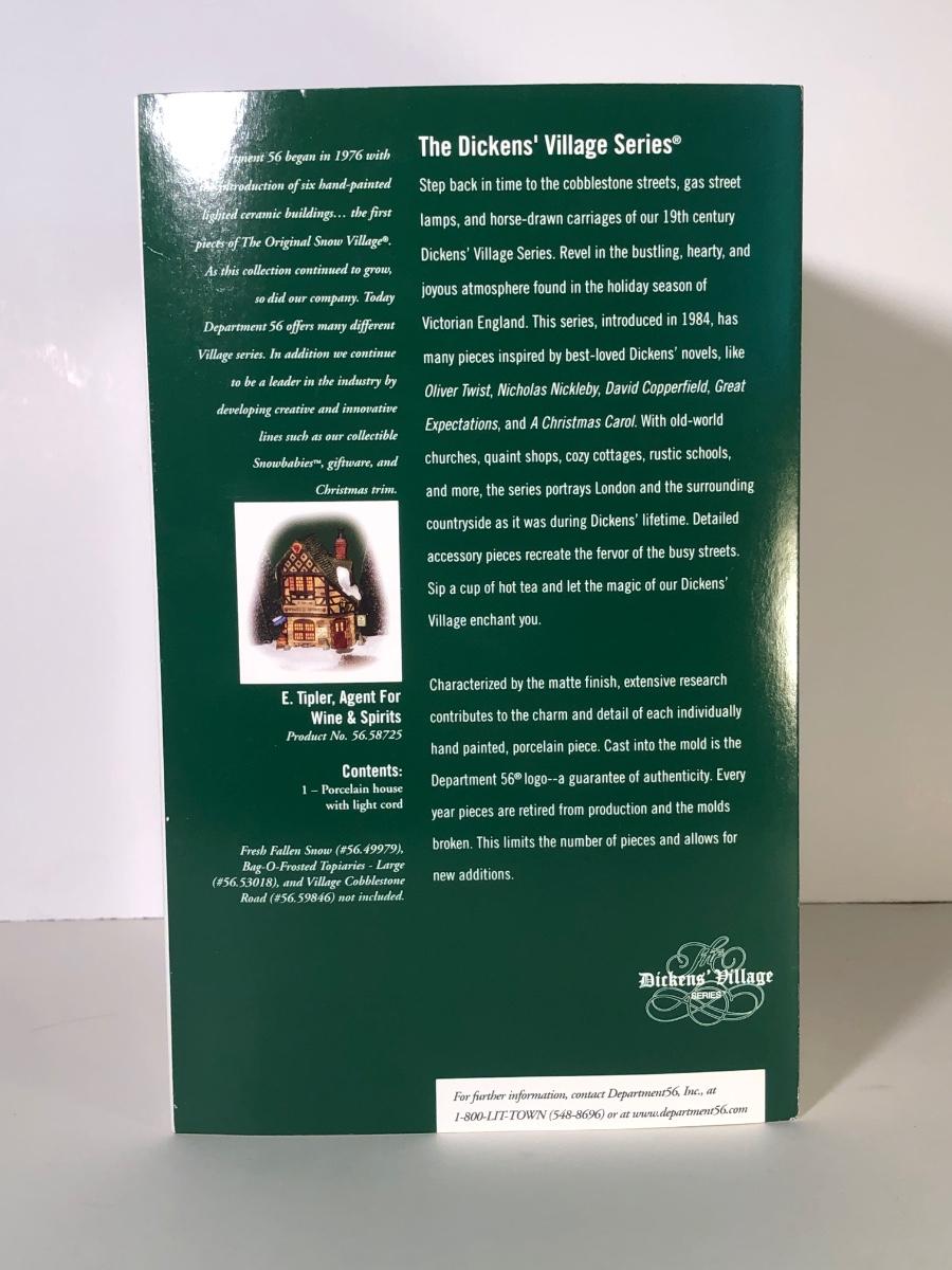 LOT 45G: Department 56 Dickens' Village - 2004 E. Tipler, Agent for Wines & Spirits #56.58725, 1999 Leed's Oyster House #56.58446, 2001 Bayly's Blacksmith #56.58495 & Frosted Trees