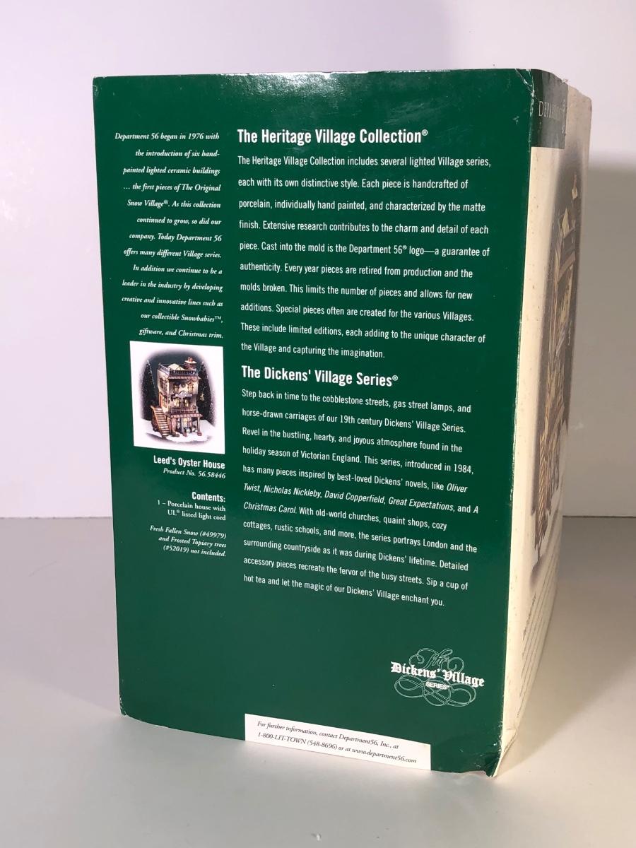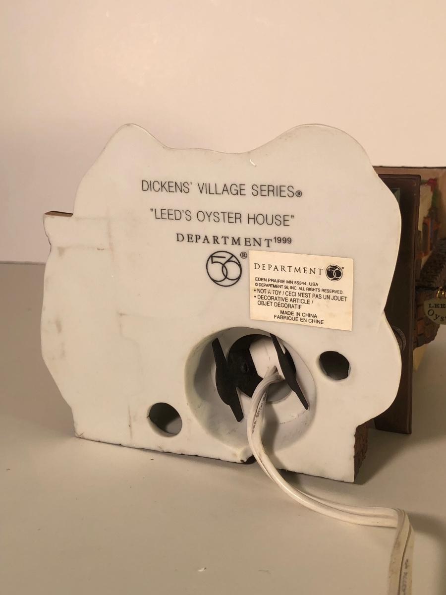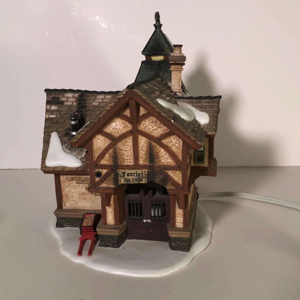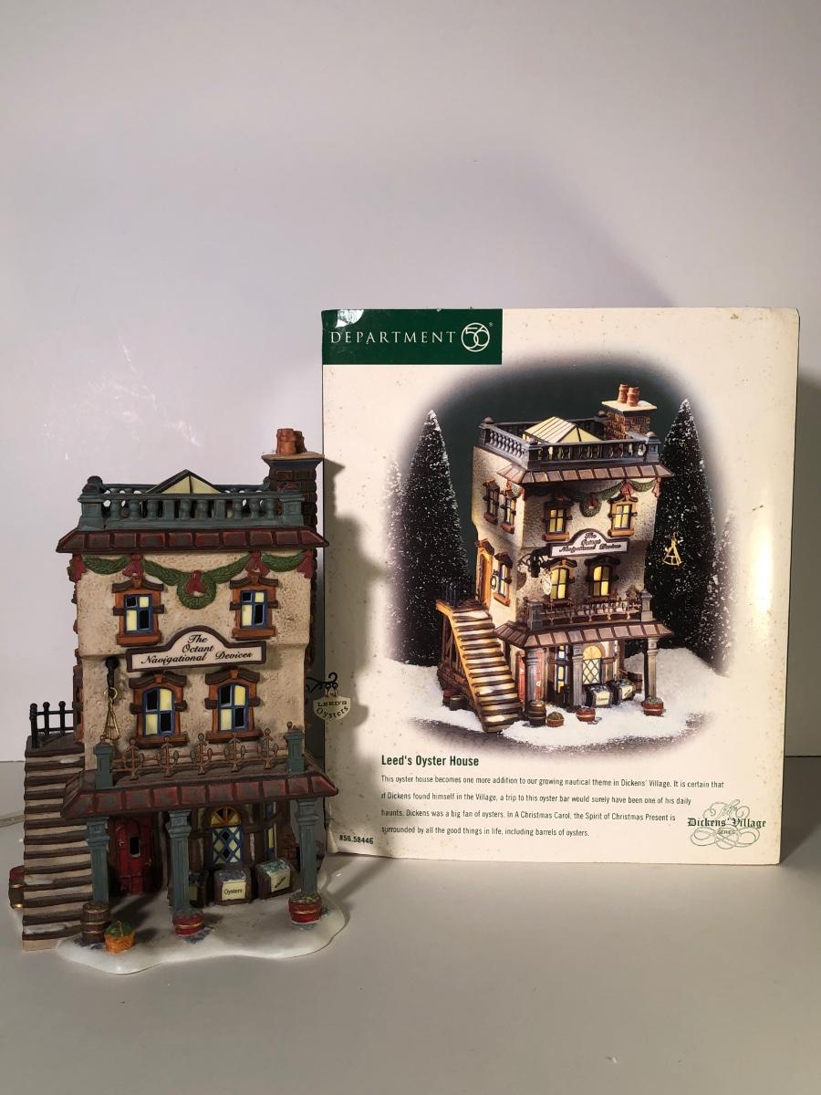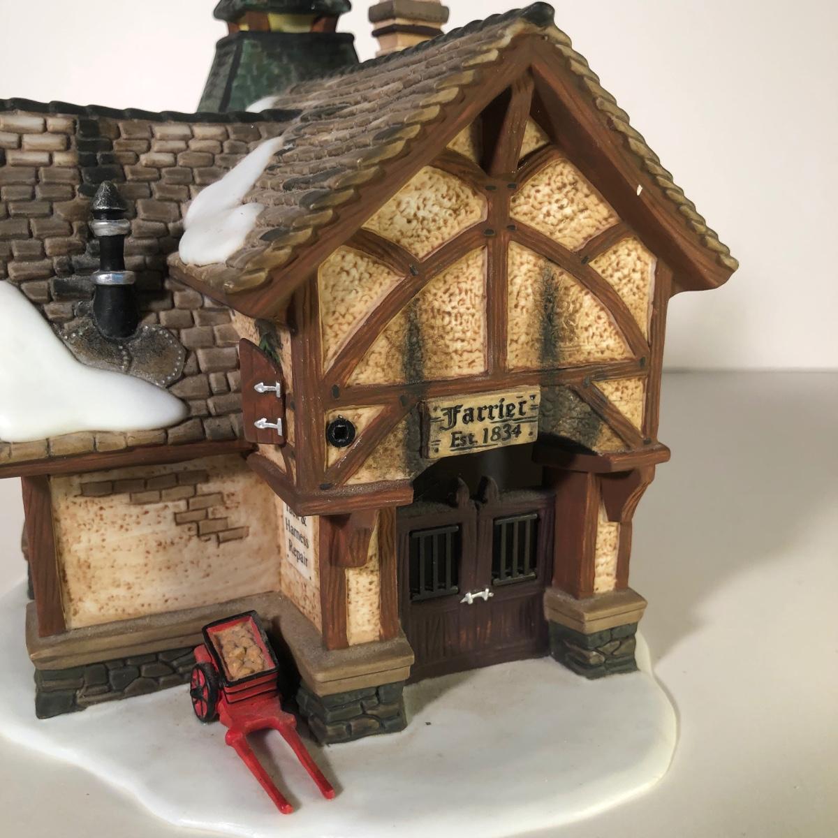 LOT 45G: Department 56 Dickens' Village - 2004 E. Tipler, Agent for Wines & Spirits #56.58725, 1999 Leed's Oyster House #56.58446, 2001 Bayly's Blacksmith #56.58495 & Frosted Trees