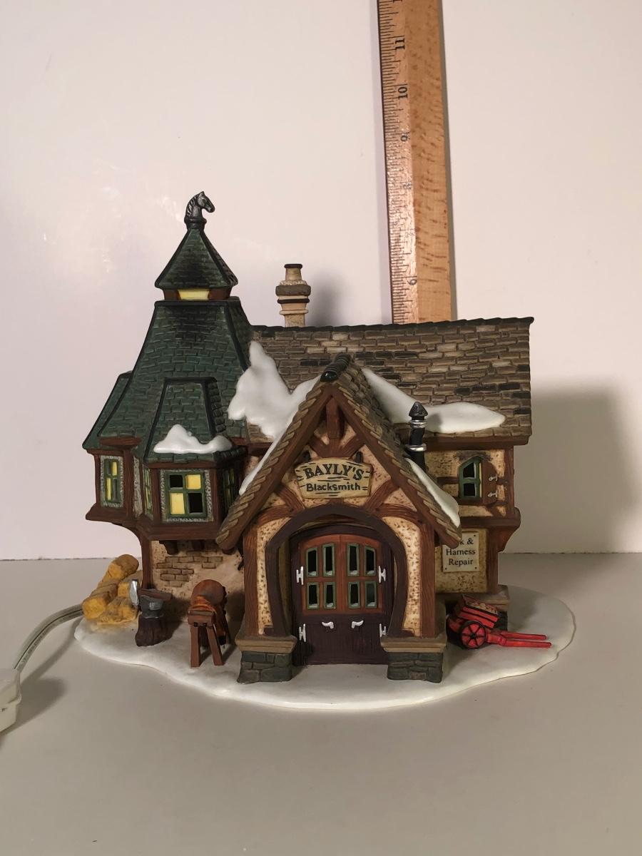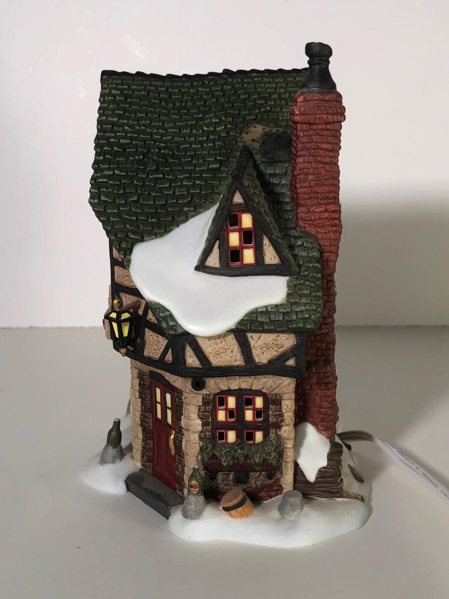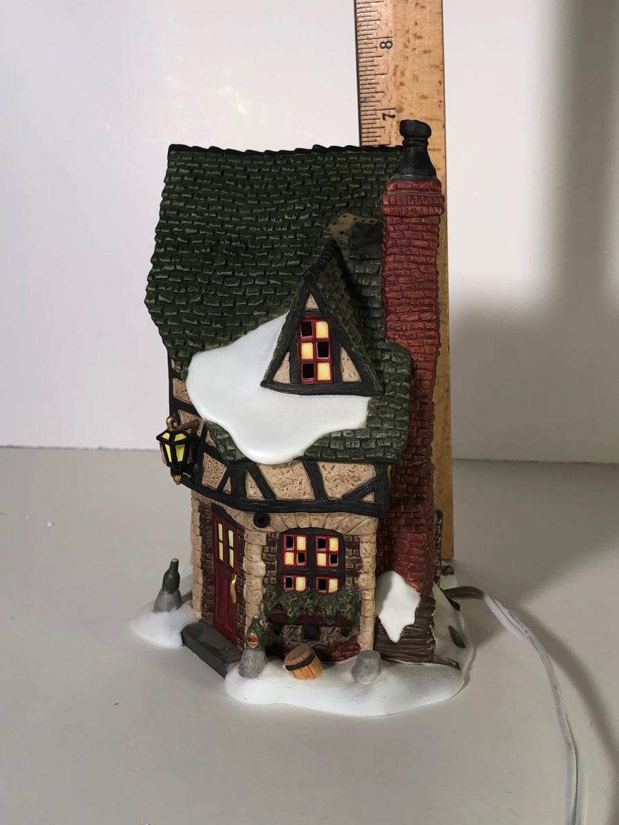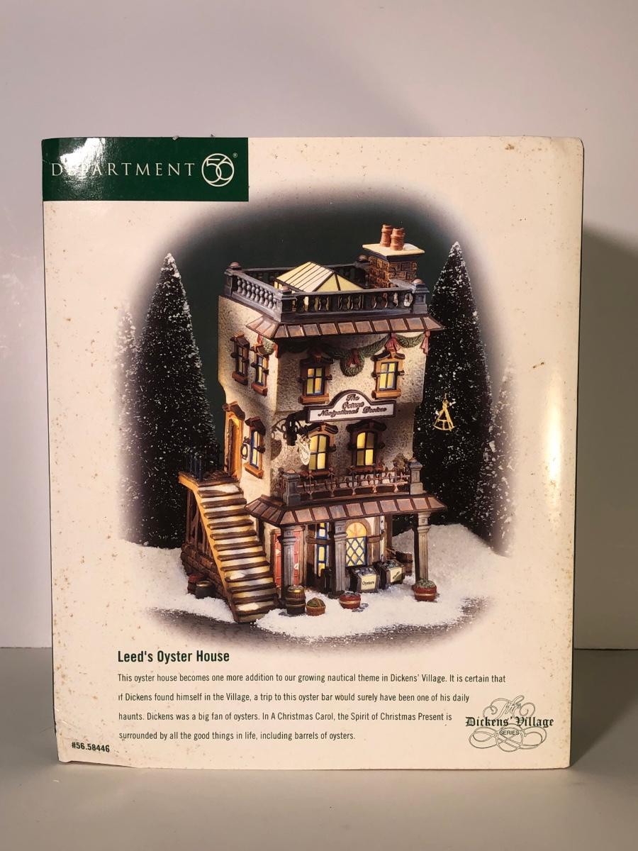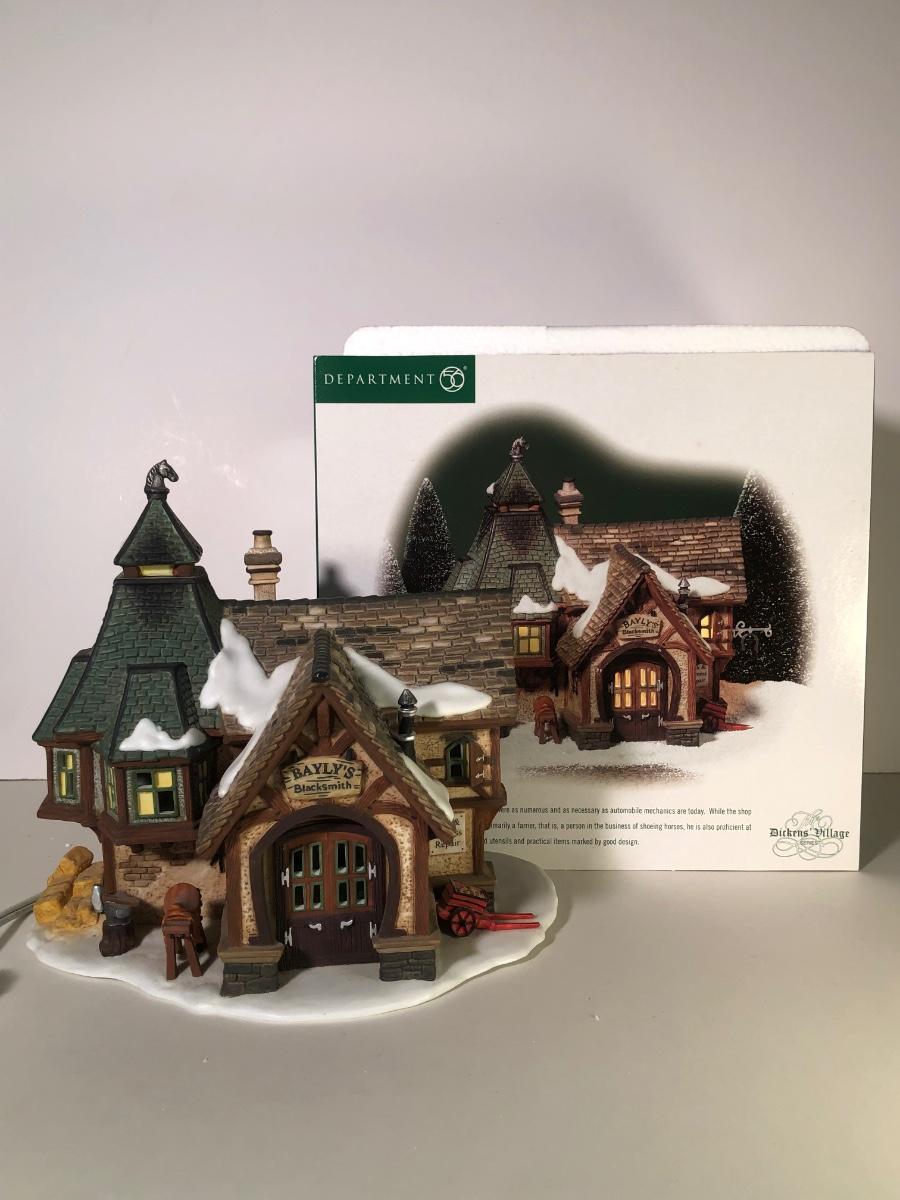 LOT 45G: Department 56 Dickens' Village - 2004 E. Tipler, Agent for Wines & Spirits #56.58725, 1999 Leed's Oyster House #56.58446, 2001 Bayly's Blacksmith #56.58495 & Frosted Trees