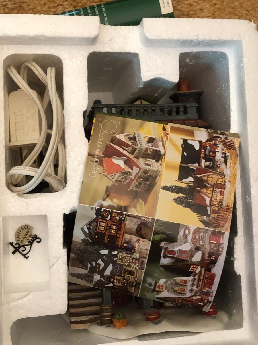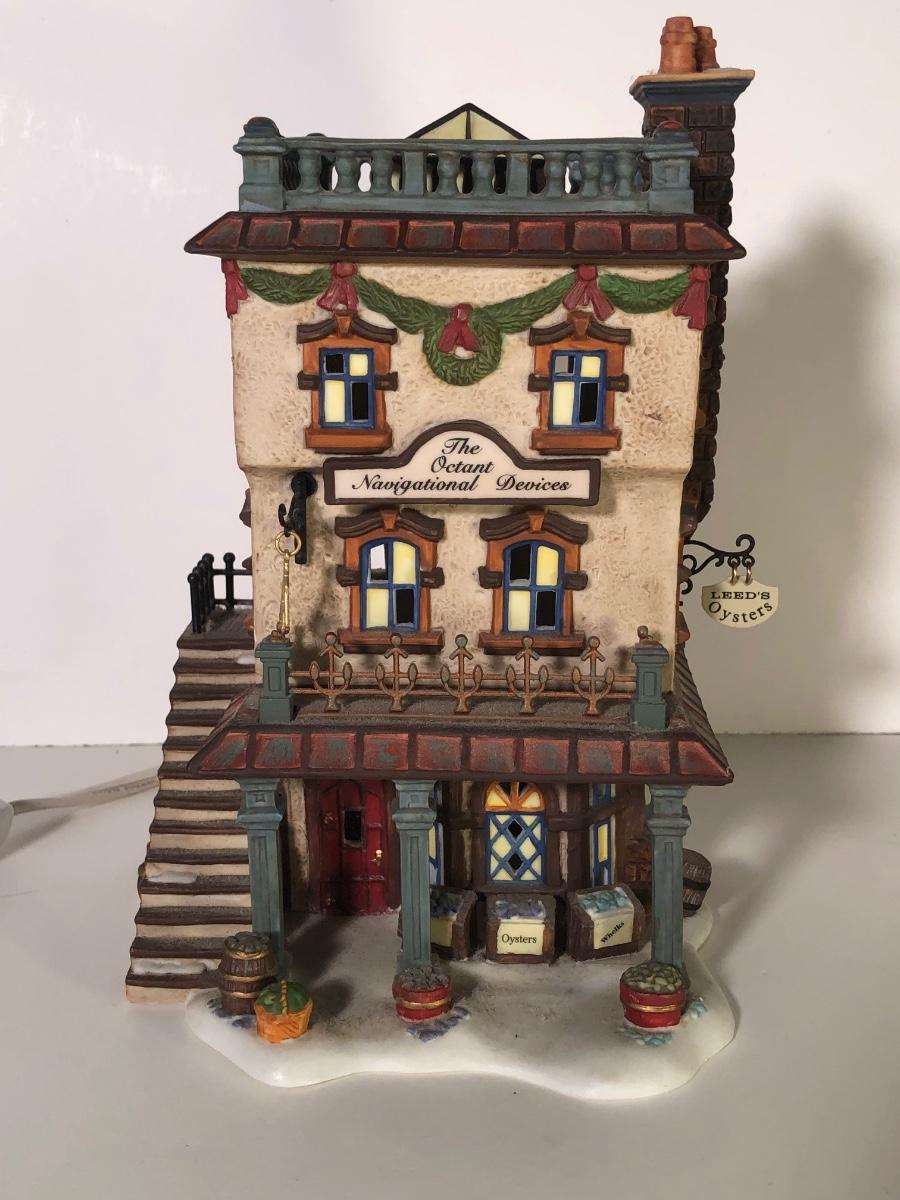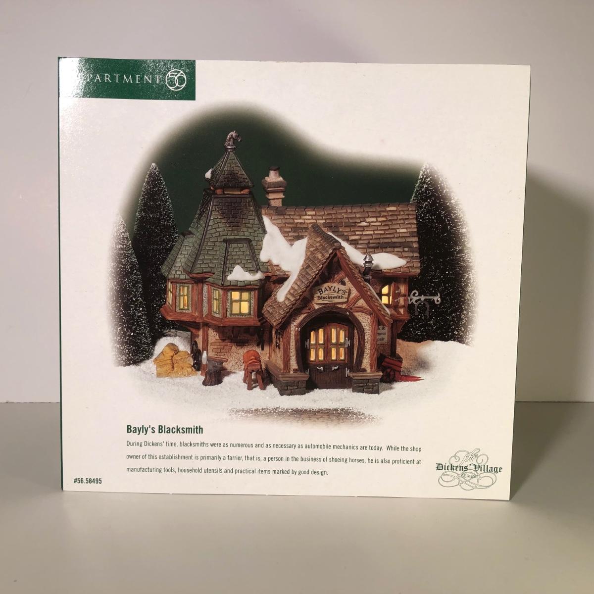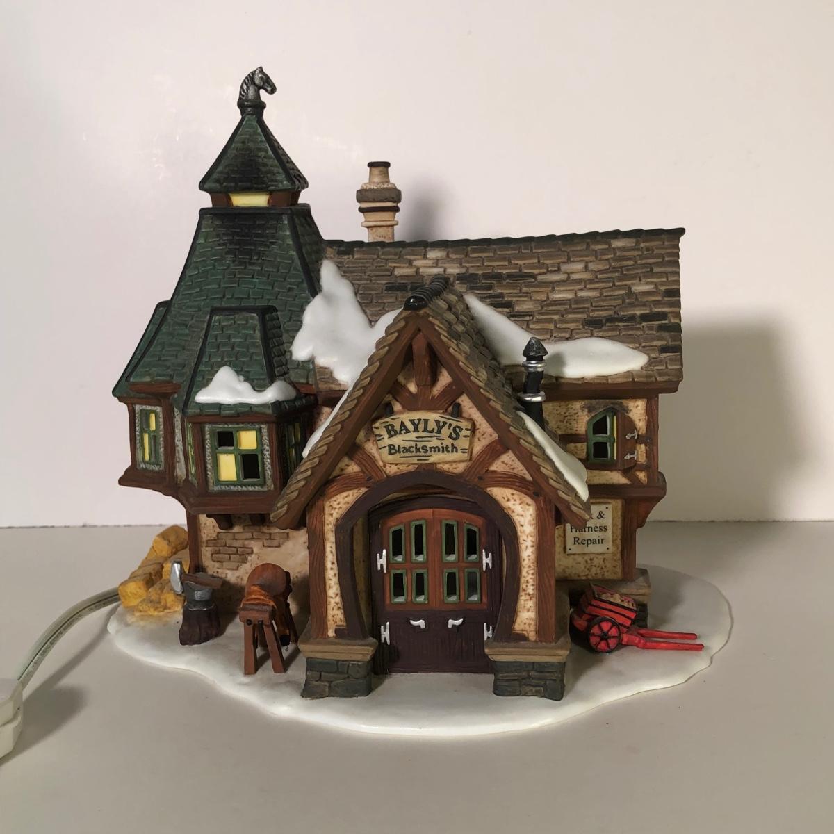 LOT 45G: Department 56 Dickens' Village - 2004 E. Tipler, Agent for Wines & Spirits #56.58725, 1999 Leed's Oyster House #56.58446, 2001 Bayly's Blacksmith #56.58495 & Frosted Trees