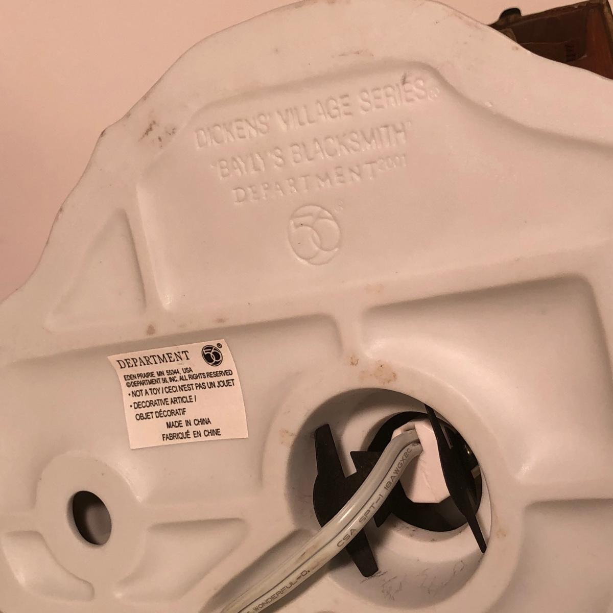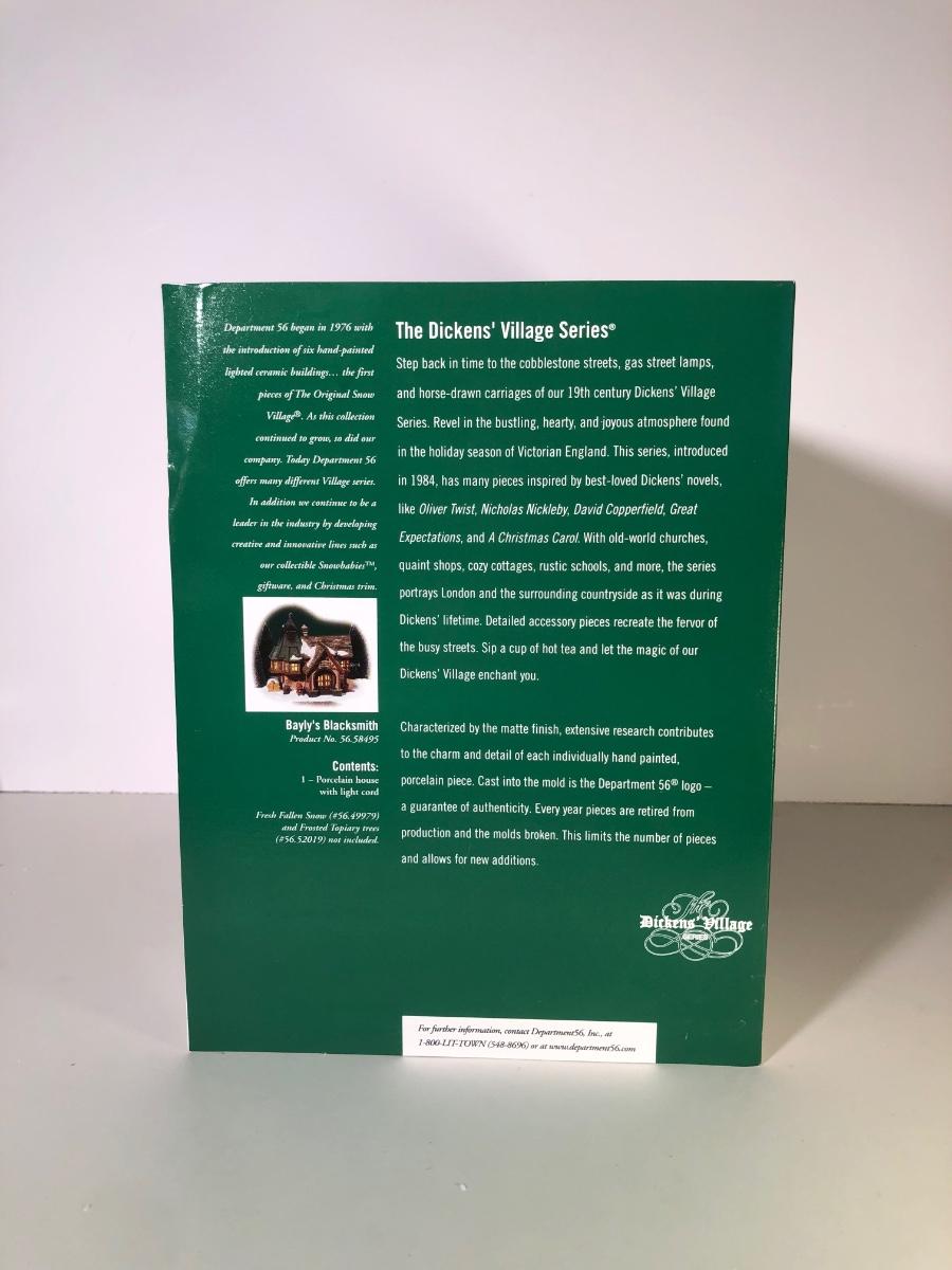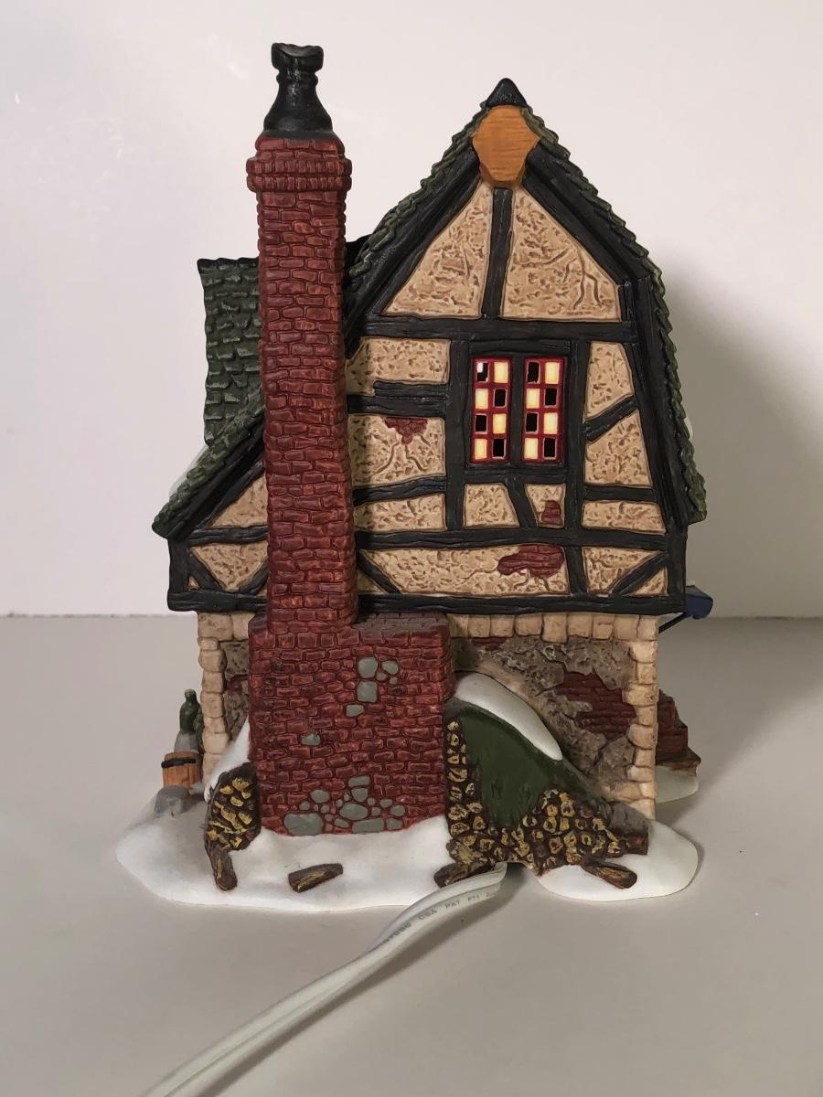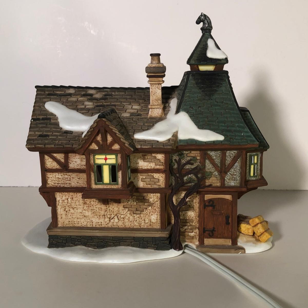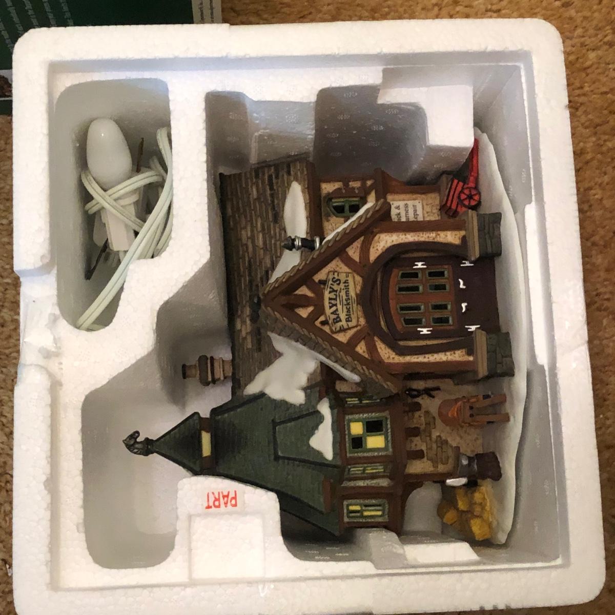 LOT 45G: Department 56 Dickens' Village - 2004 E. Tipler, Agent for Wines & Spirits #56.58725, 1999 Leed's Oyster House #56.58446, 2001 Bayly's Blacksmith #56.58495 & Frosted Trees