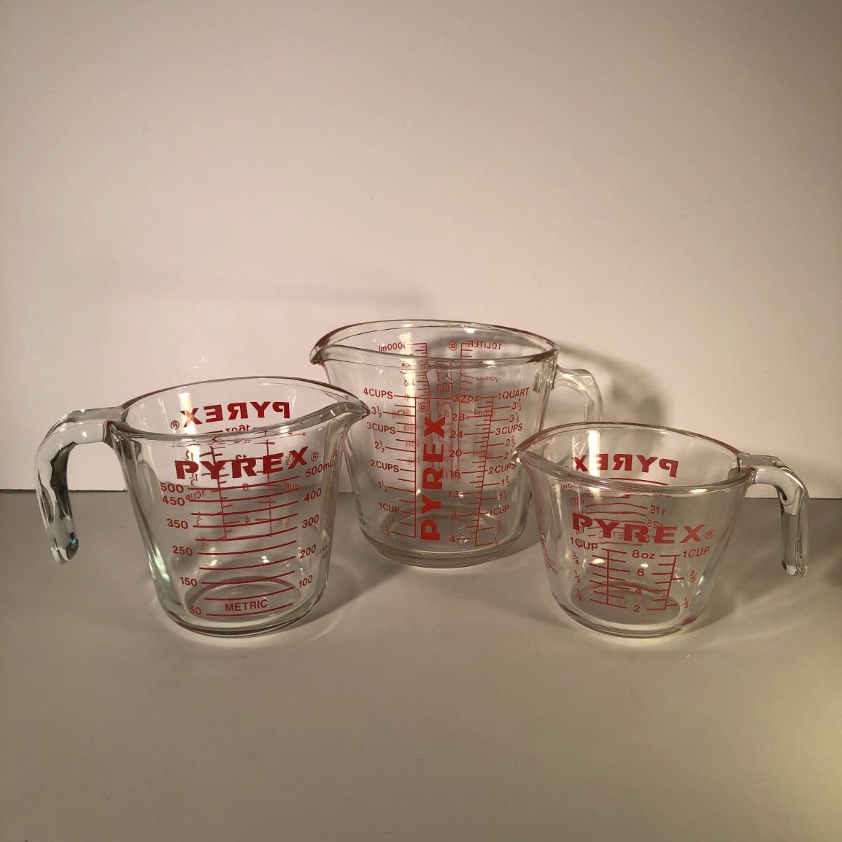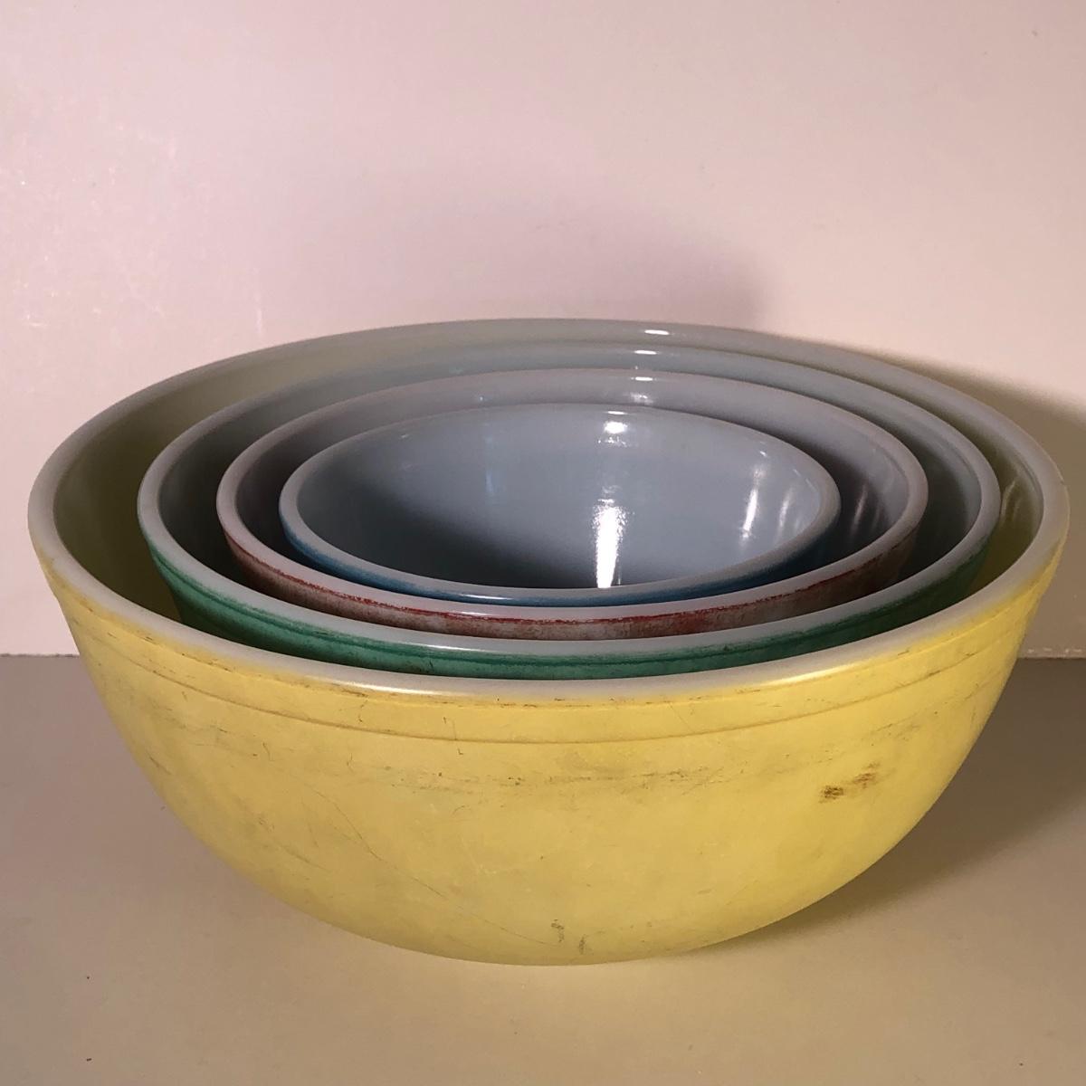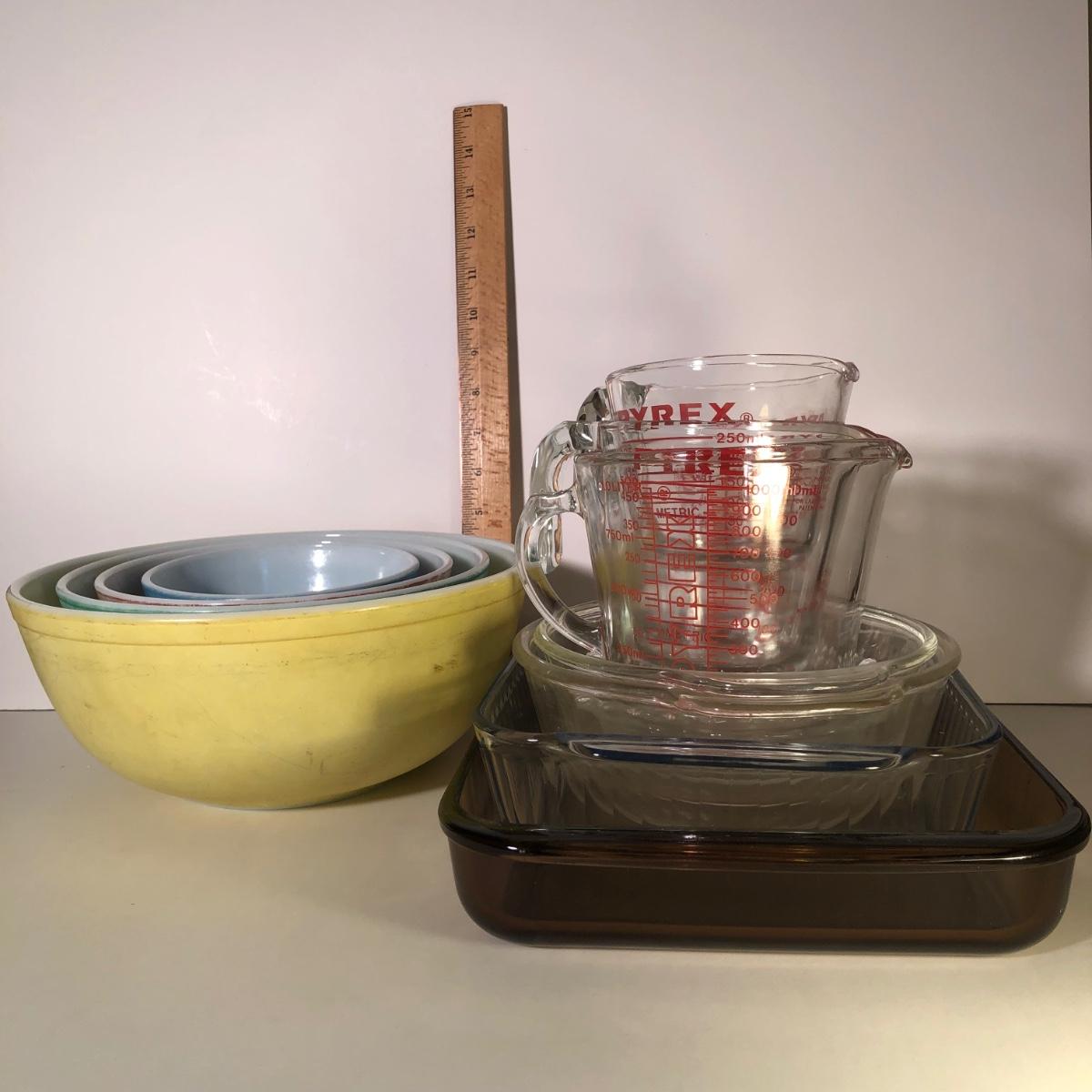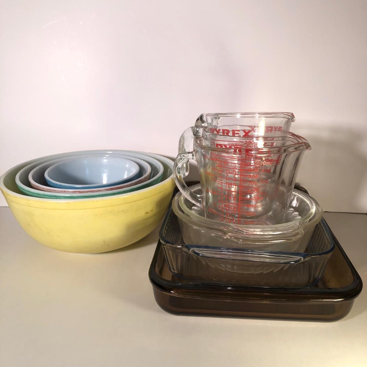 LOT 46G: Pyrex Baking Collection - Vintage Primary Colors Mixing Bowl Set, Three Glass Measuring Cups & Baking Dishes