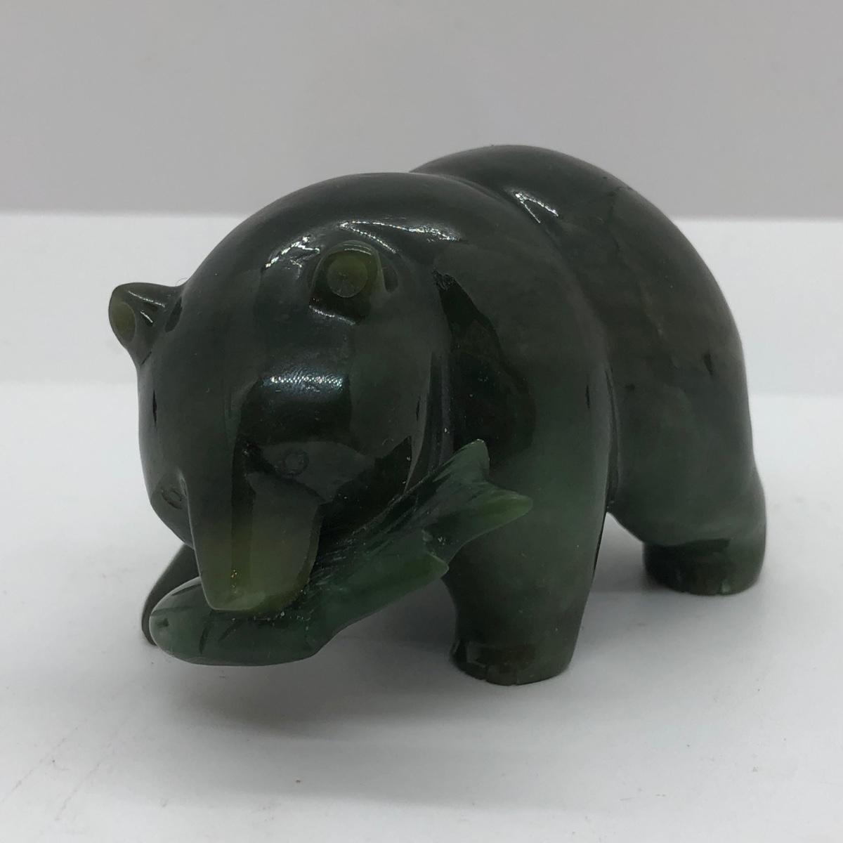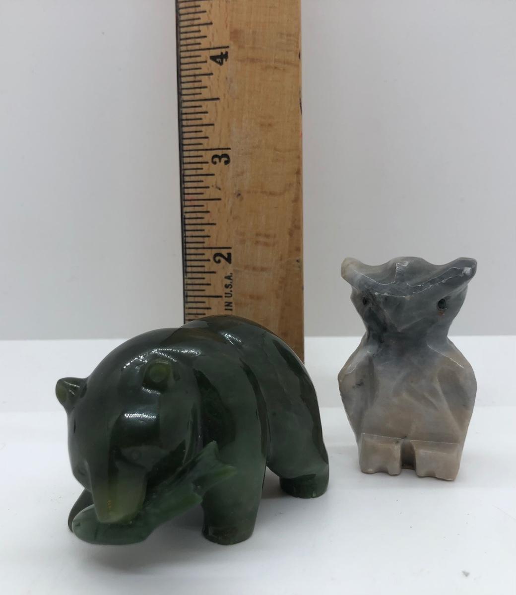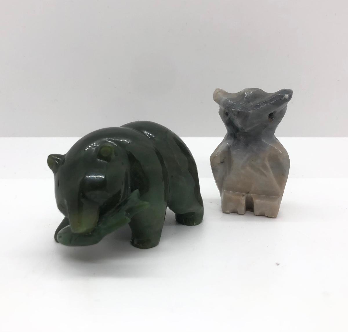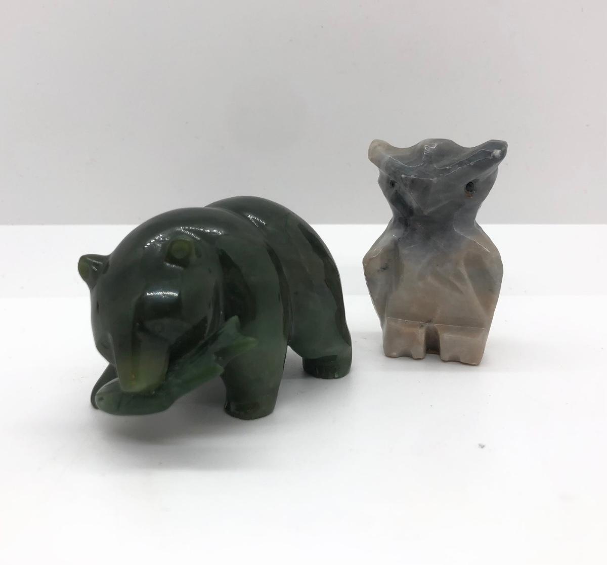 LOT 55D: Miniature Stone Figures - Onix Roblan Mexico & Jade Bear w/ Fish