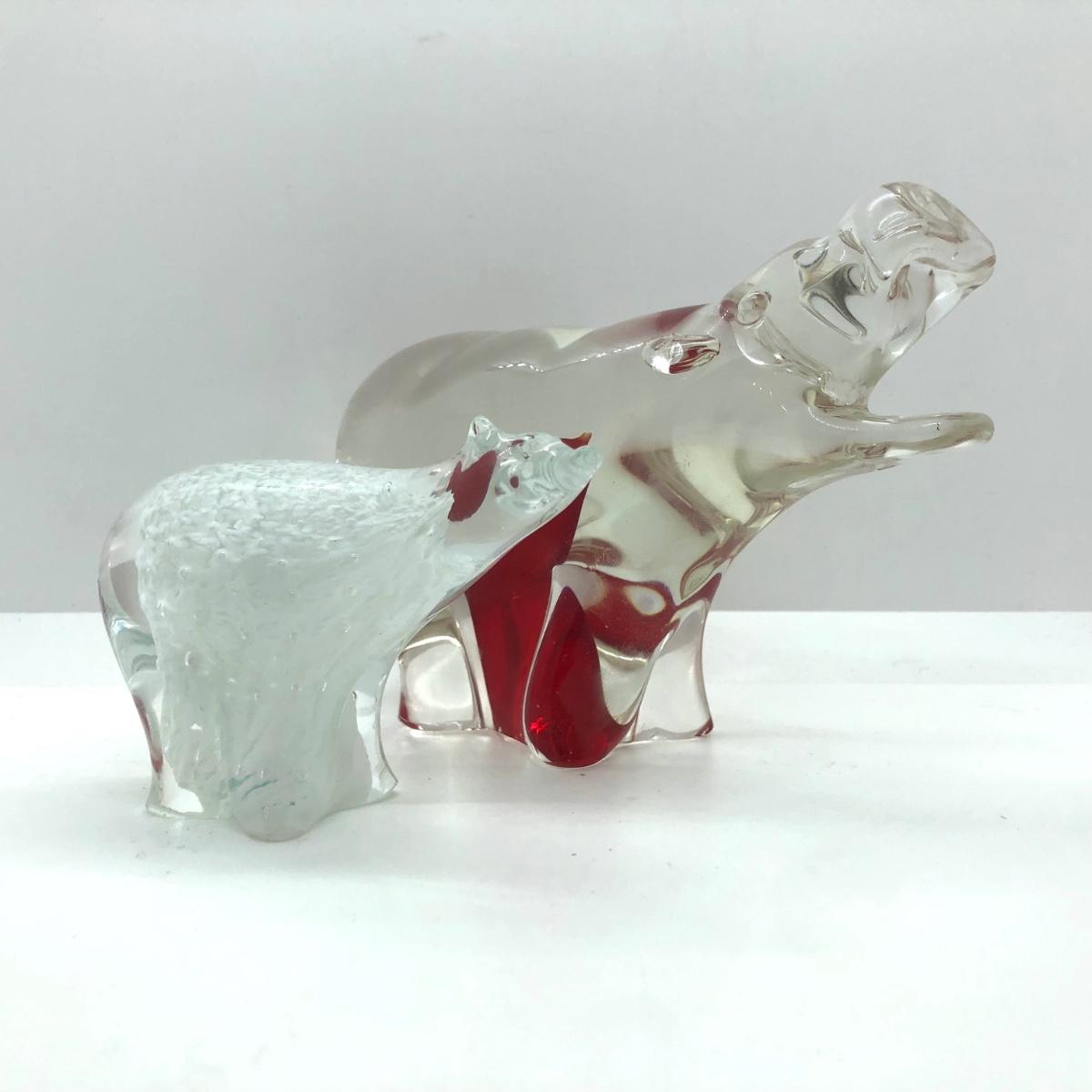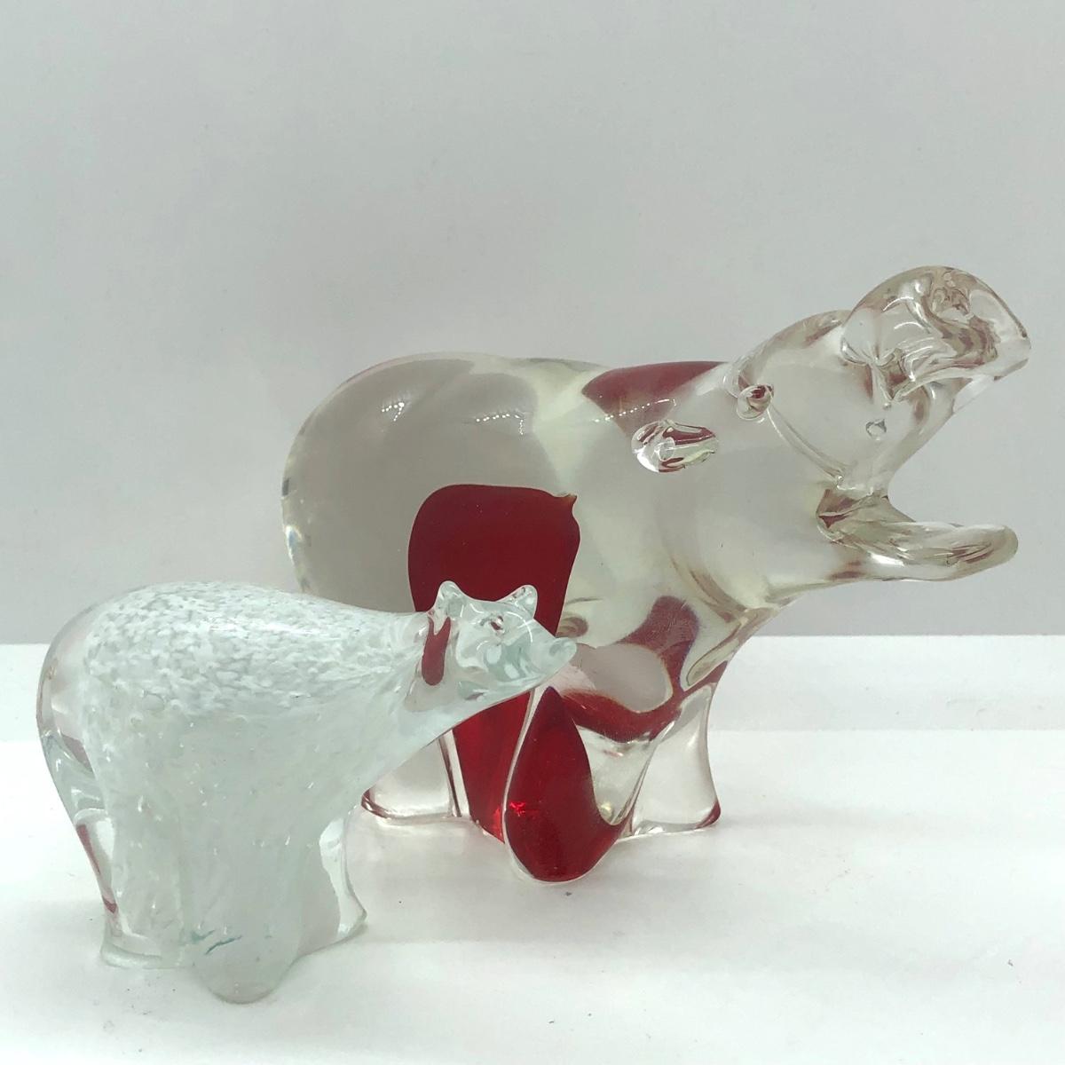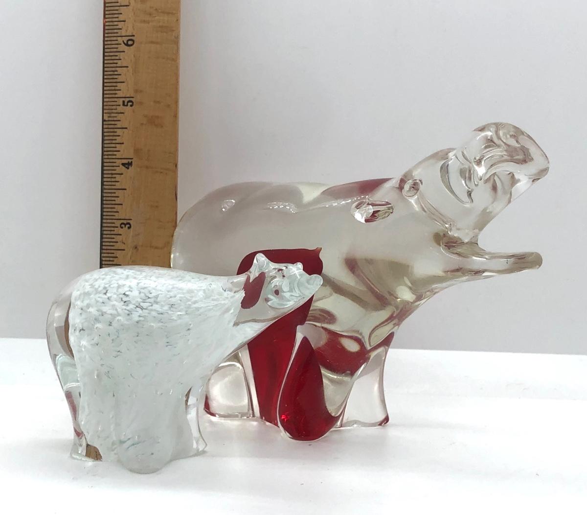 LOT 57D: Murano Style Glass Hippo & Glass Polar Bear Made in Sweden